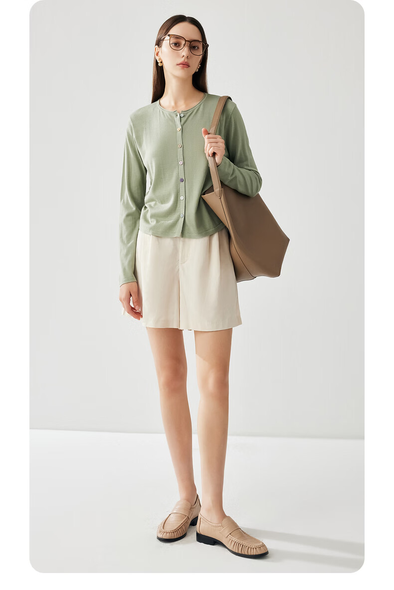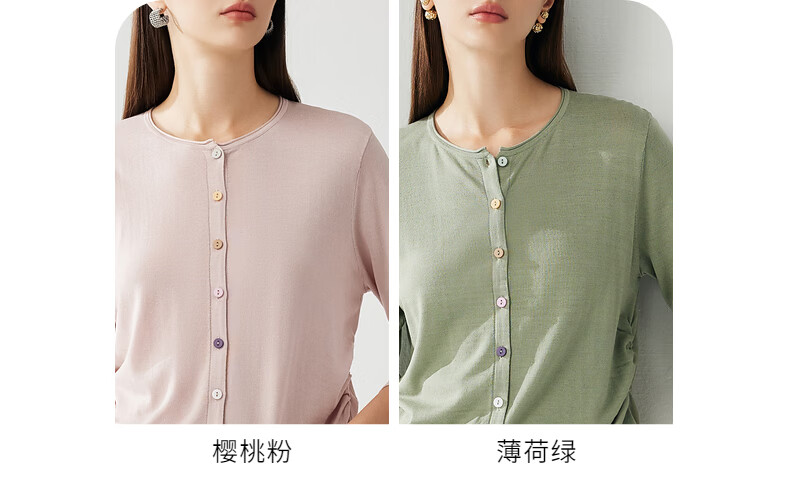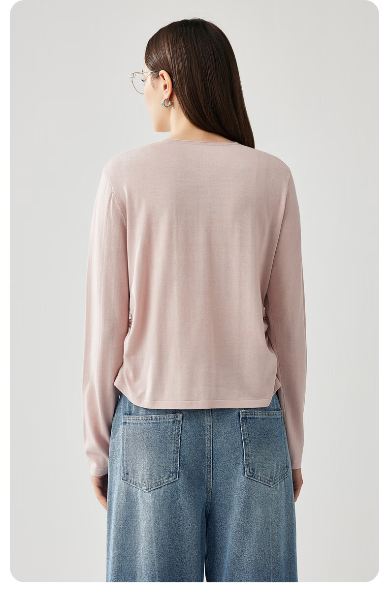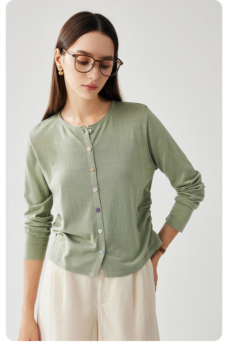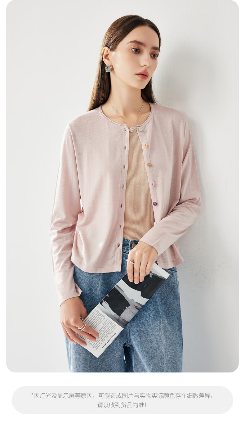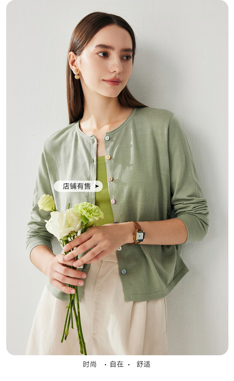 Zhaojun Spring and Summer Lyocell Tencel Sweater Women's Round Neck Long Sleeve Cardigan Solid Color Thin Top Mint Green L