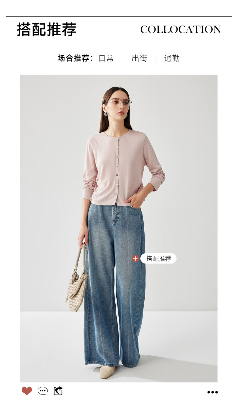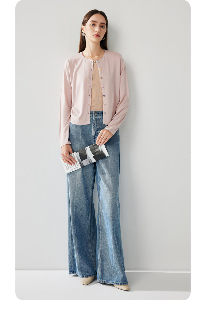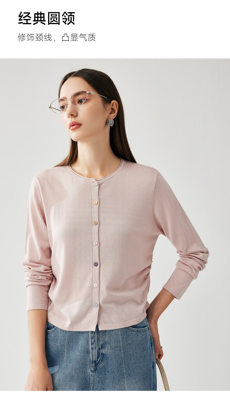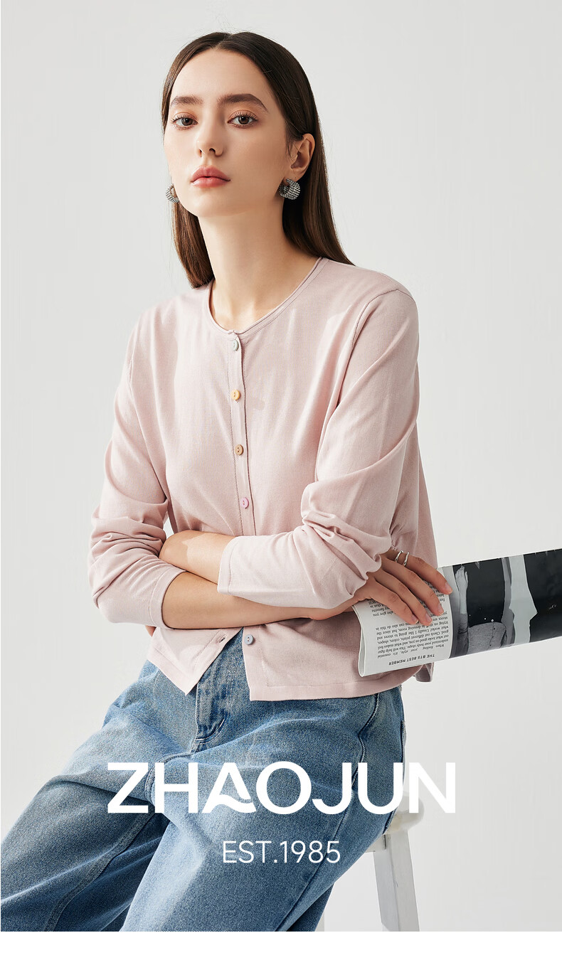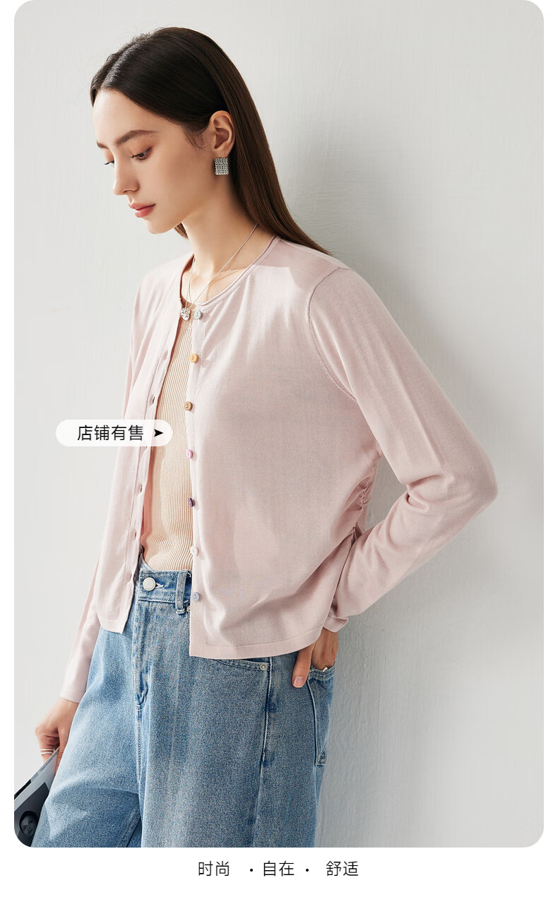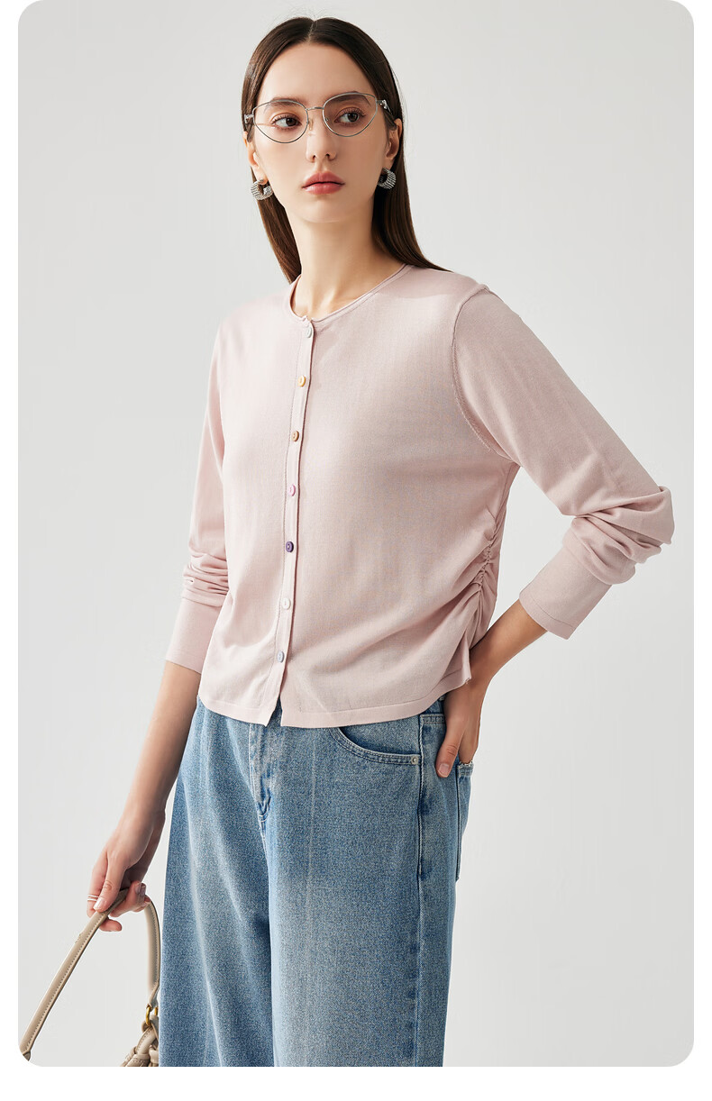 Zhaojun Spring and Summer Lyocell Tencel Sweater Women's Round Neck Long Sleeve Cardigan Solid Color Thin Top Mint Green L