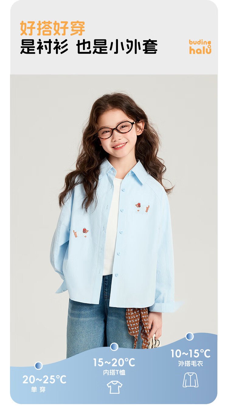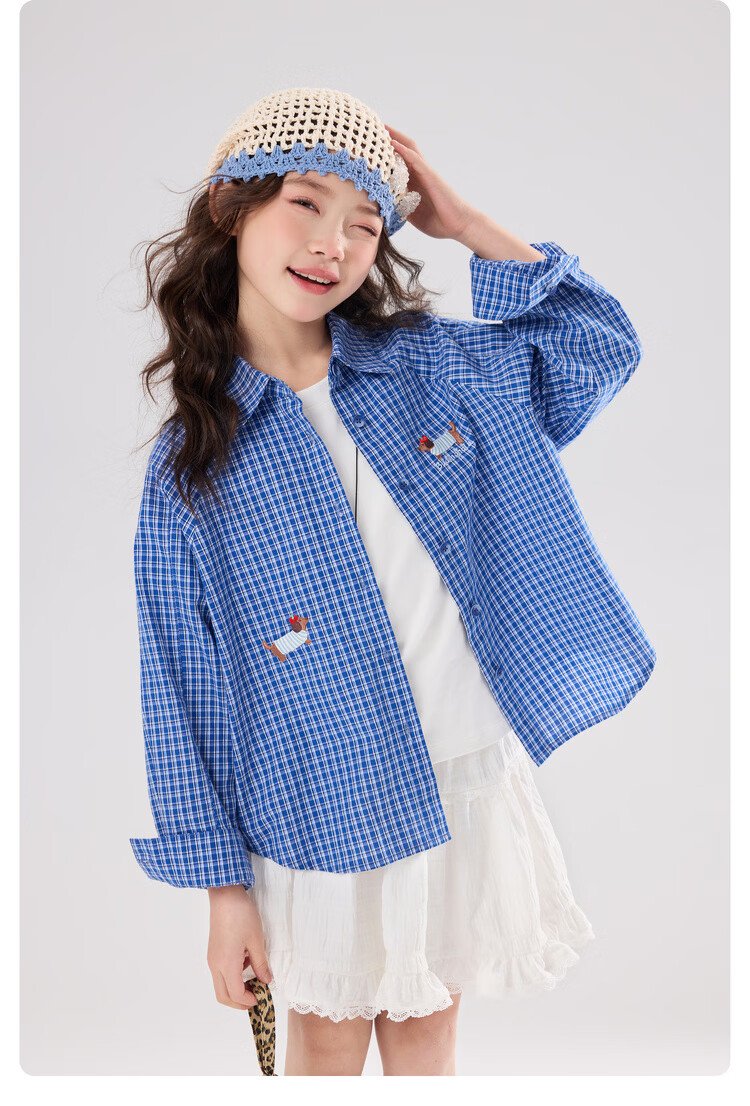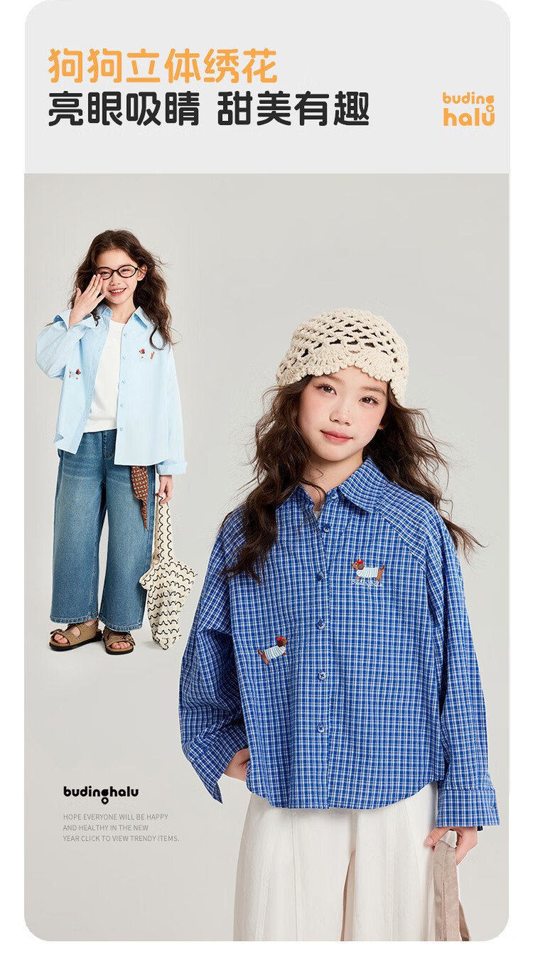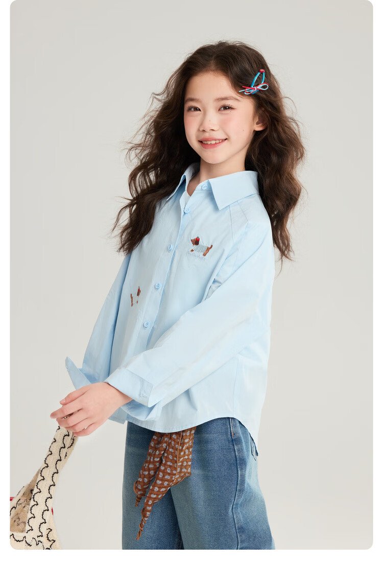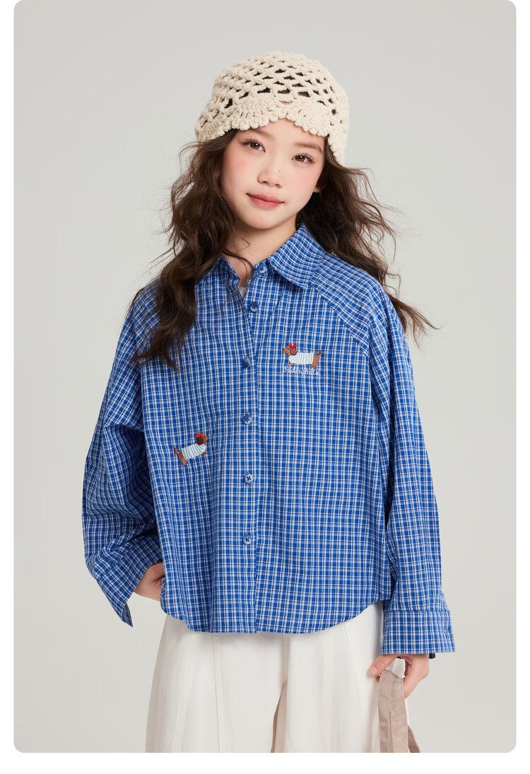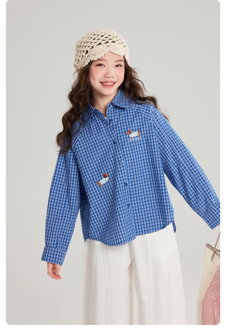 Pudding Haru Collar Spring Shirt Girls Puppy Embroidered Cotton Shirt Spring New Product Cute Loose and Versatile Top for Middle and Large Children