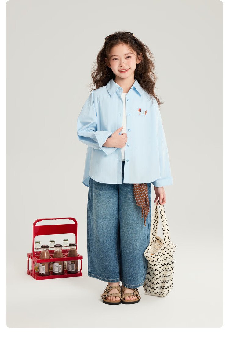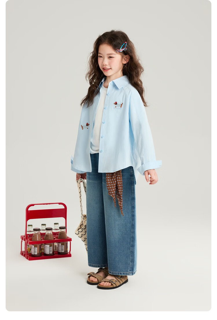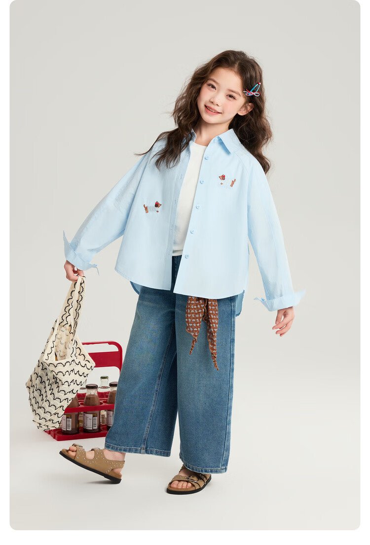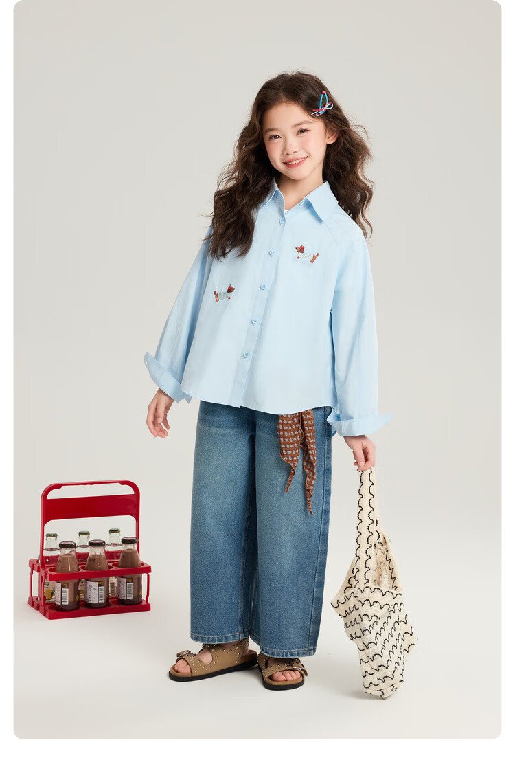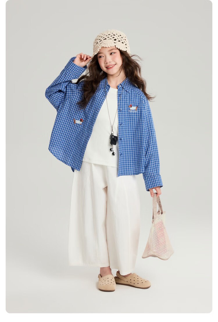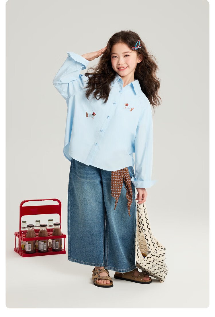 Pudding Haru Collar Spring Shirt Girls Puppy Embroidered Cotton Shirt Spring New Product Cute Loose and Versatile Top for Middle and Large Children