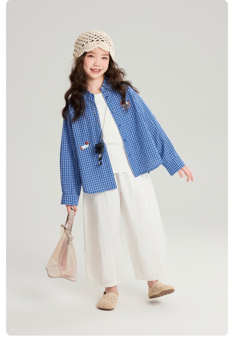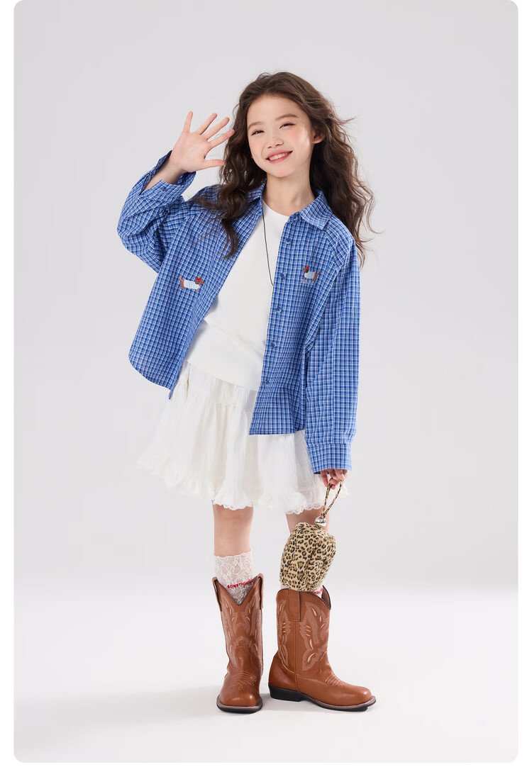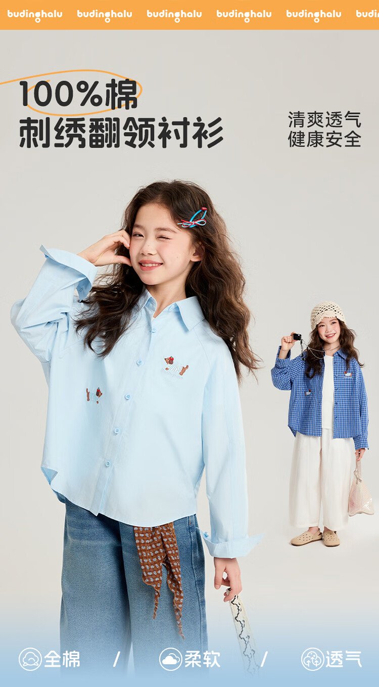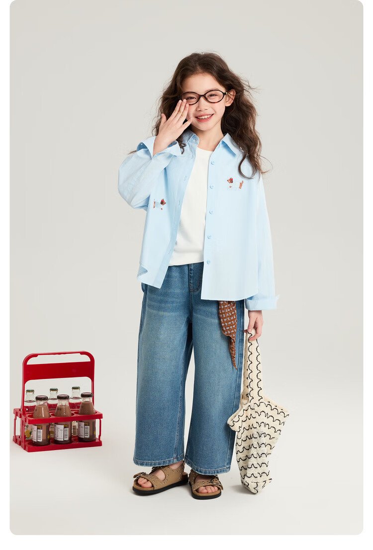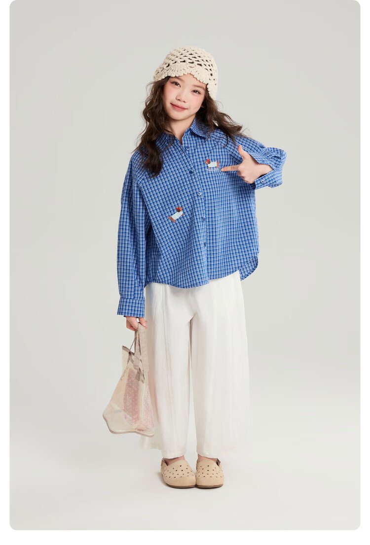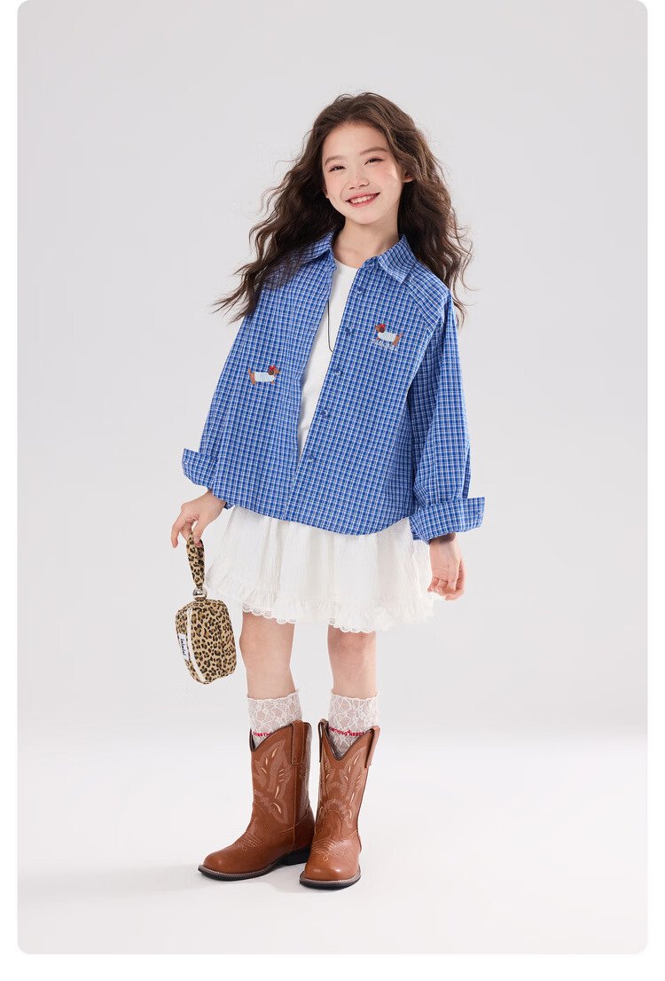 Pudding Haru Collar Spring Shirt Girls Puppy Embroidered Cotton Shirt Spring New Product Cute Loose and Versatile Top for Middle and Large Children
