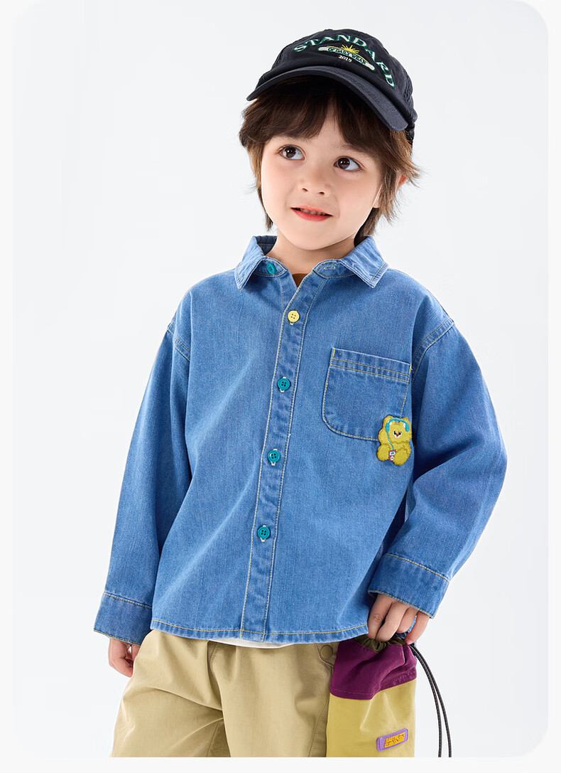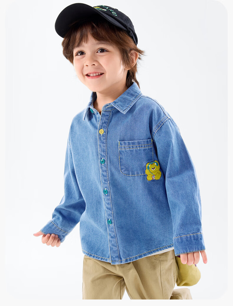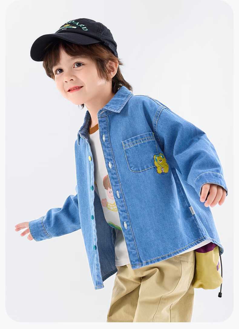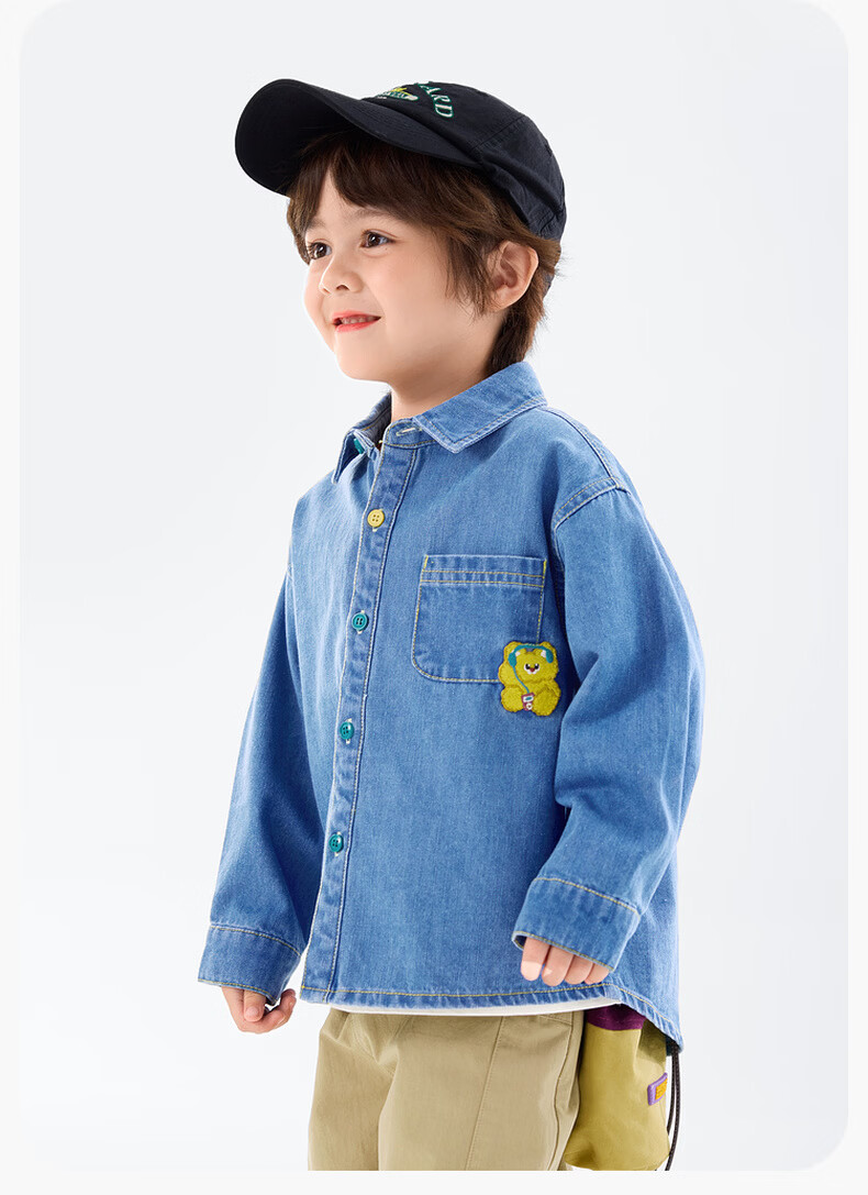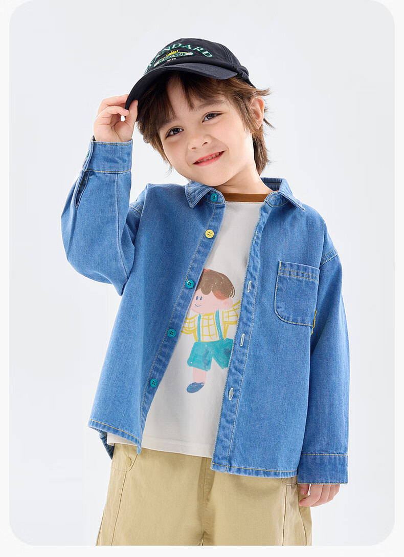 Dudu baby denim jacket spring children's loose top girls fashionable clothes boys shirt spring denim blue 120