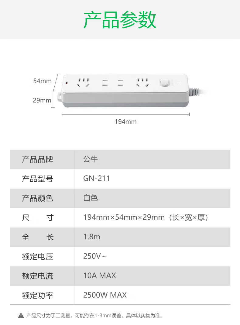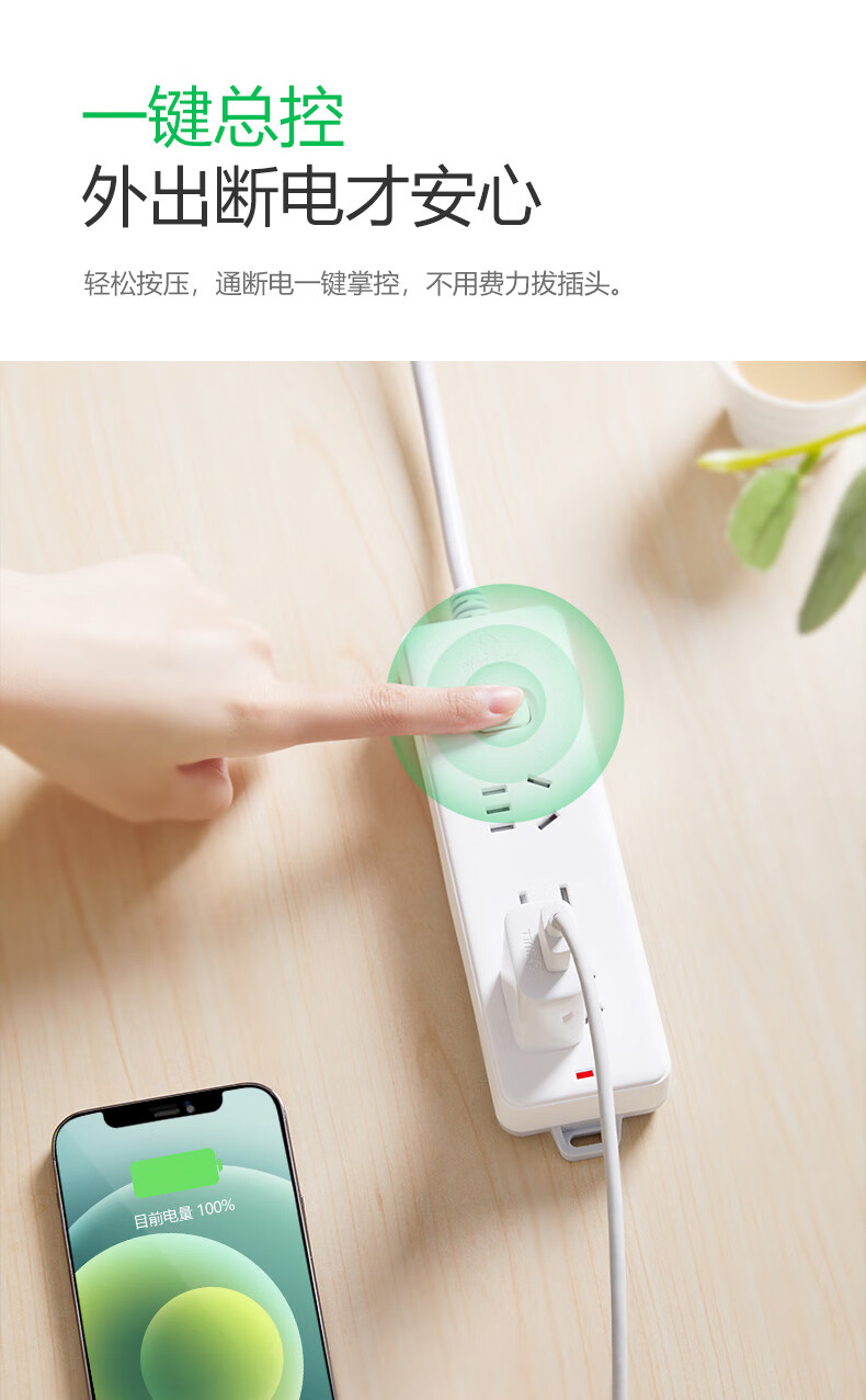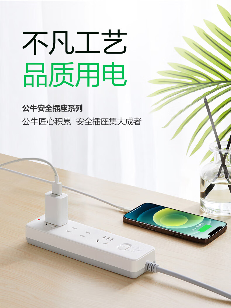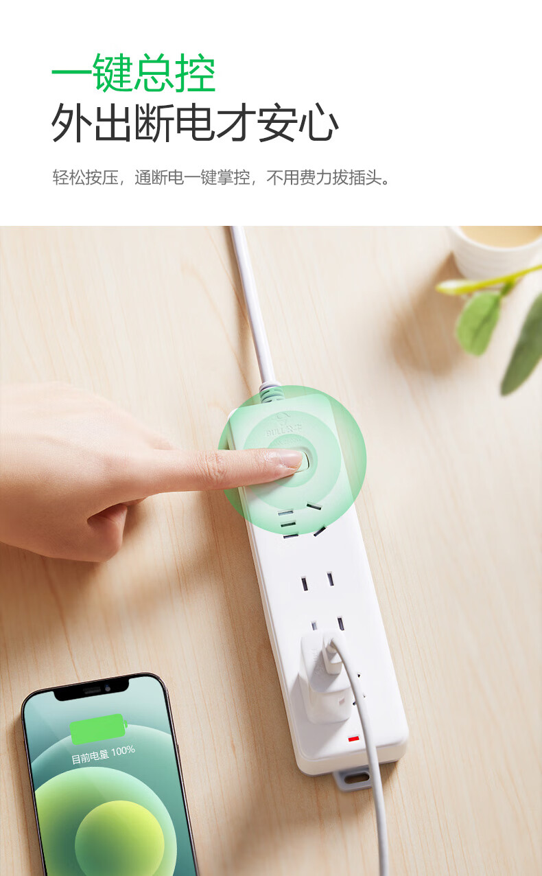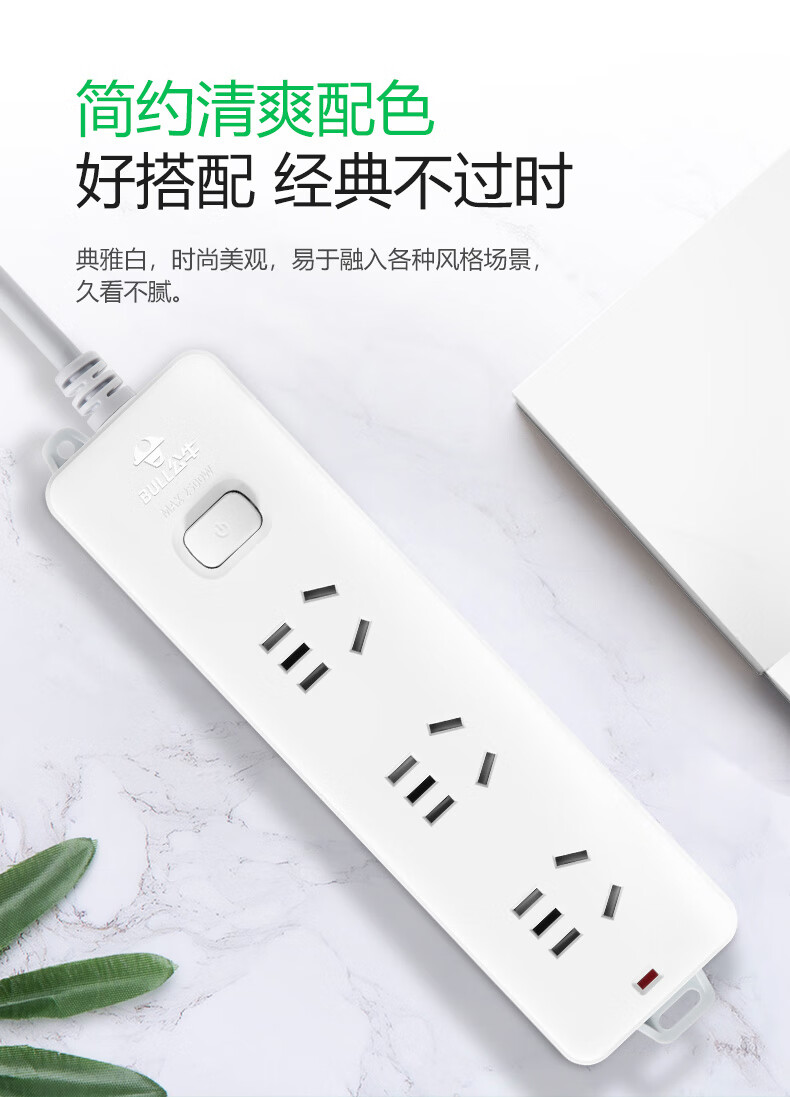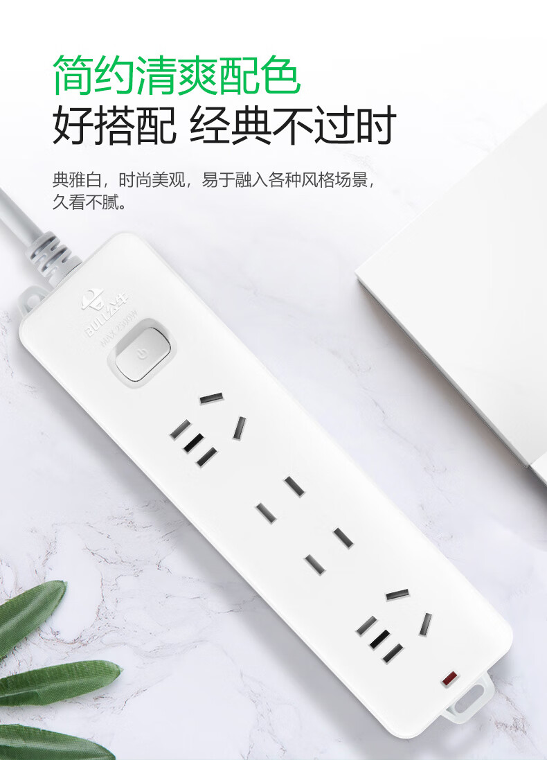 Bull (BULL) Bull (bull) socket with child protection door/new national standard socket/socket strip/socket strip/pull line board/terminal board/plug board GN-212 three-position master control total length 1.8M