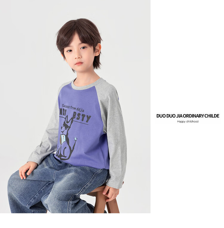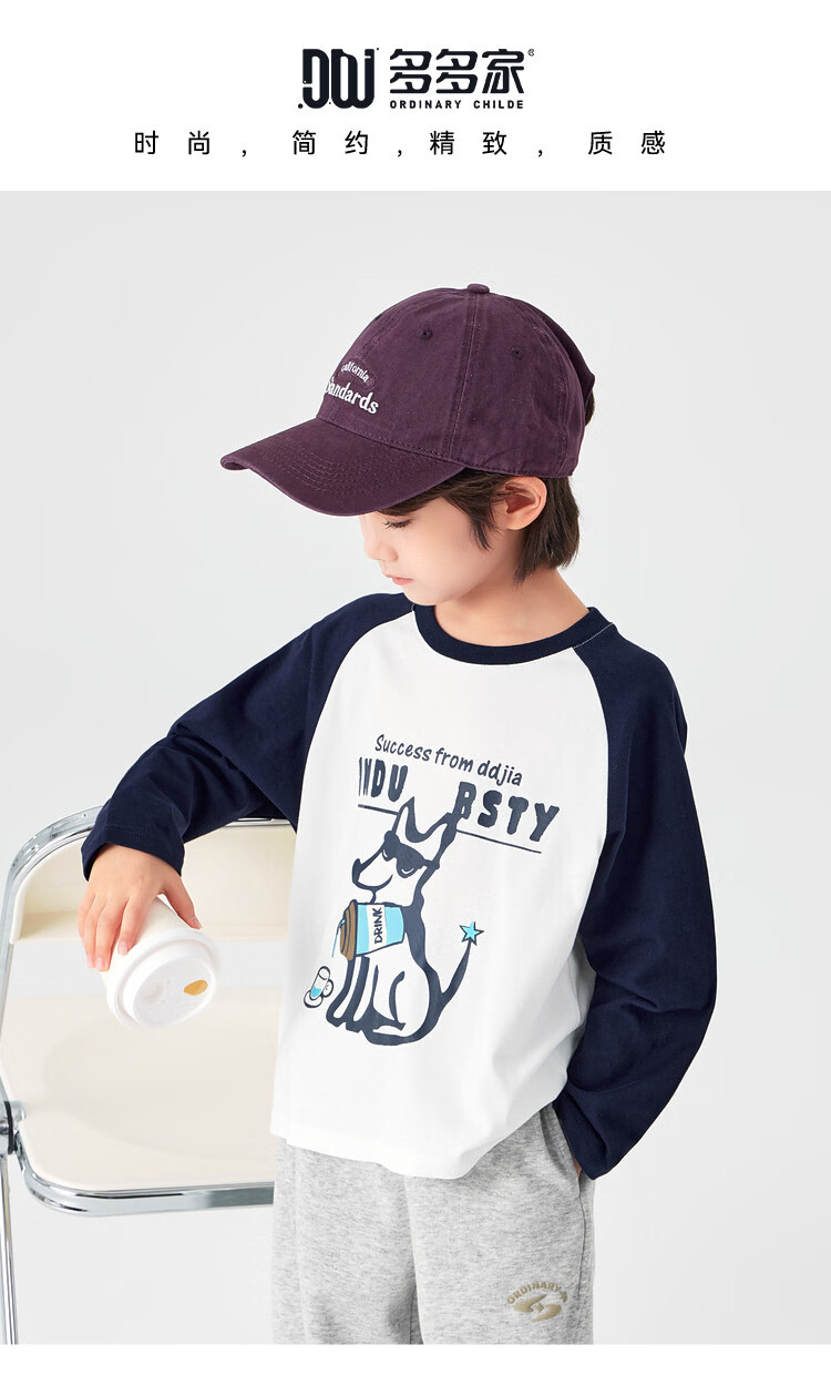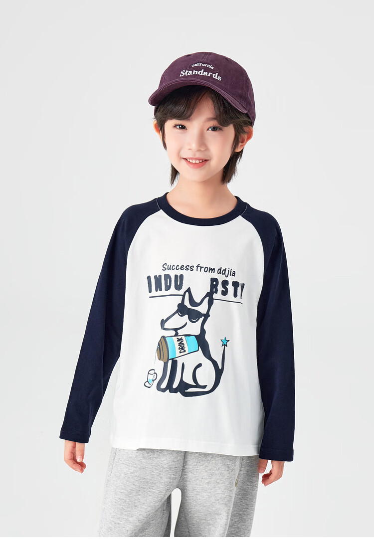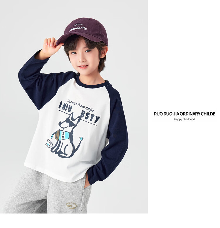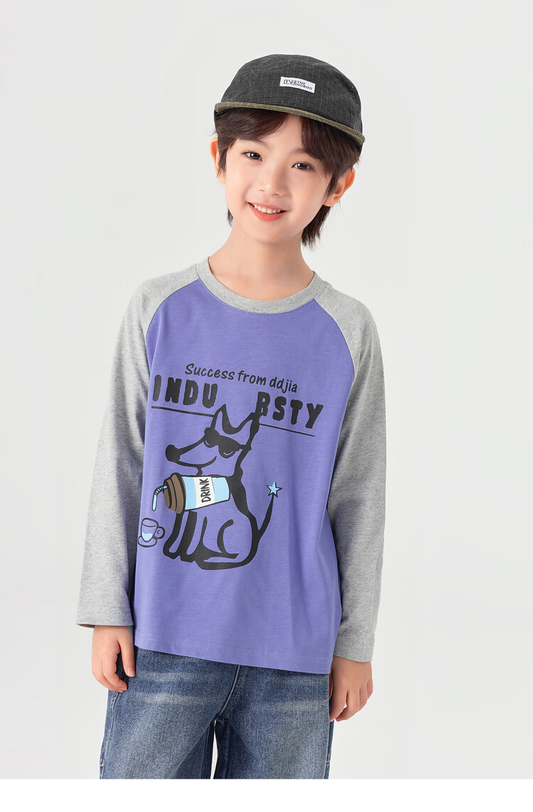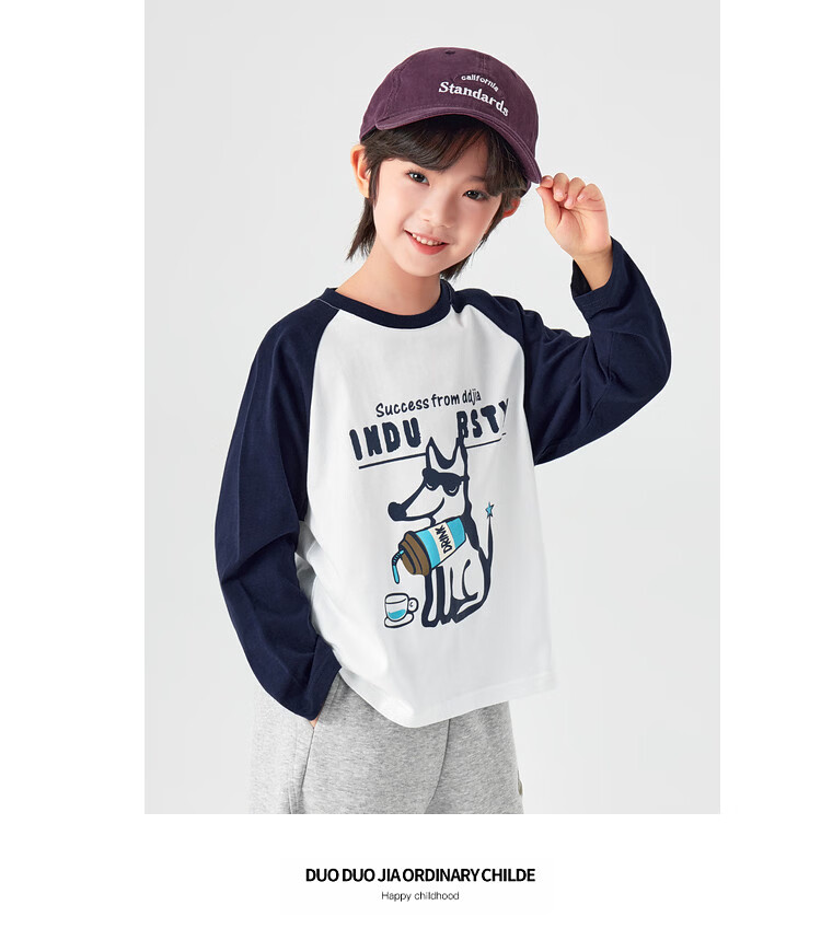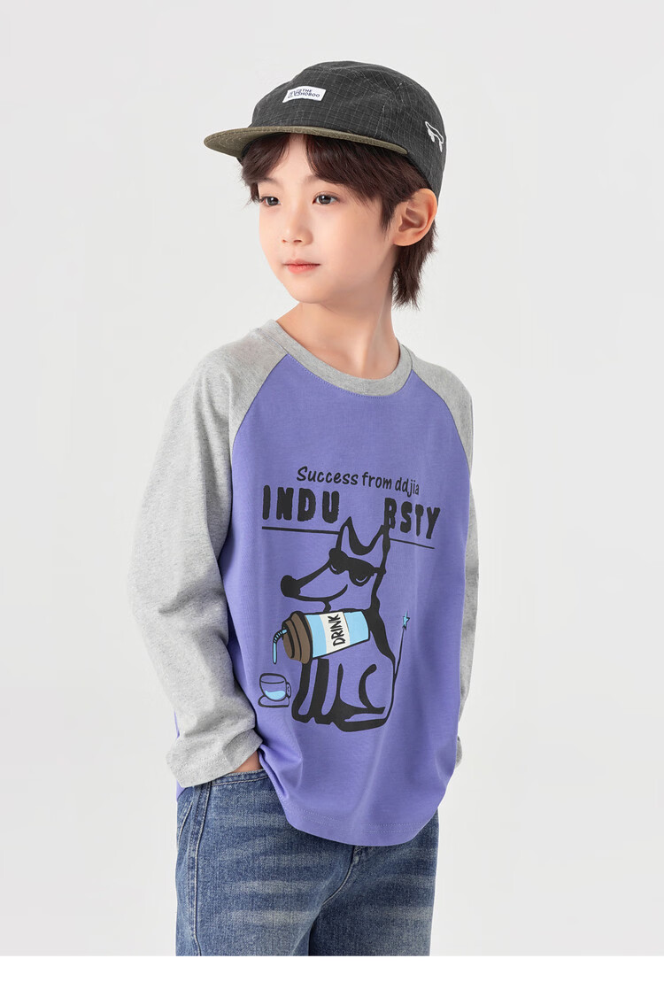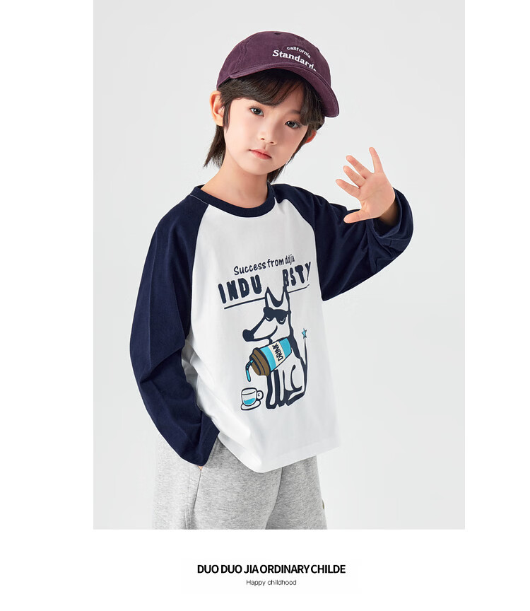 Duojia boys pure cotton long-sleeved 2026 spring and autumn American trendy children's clothing puppy print T-shirt children's breathable and skin-friendly tops