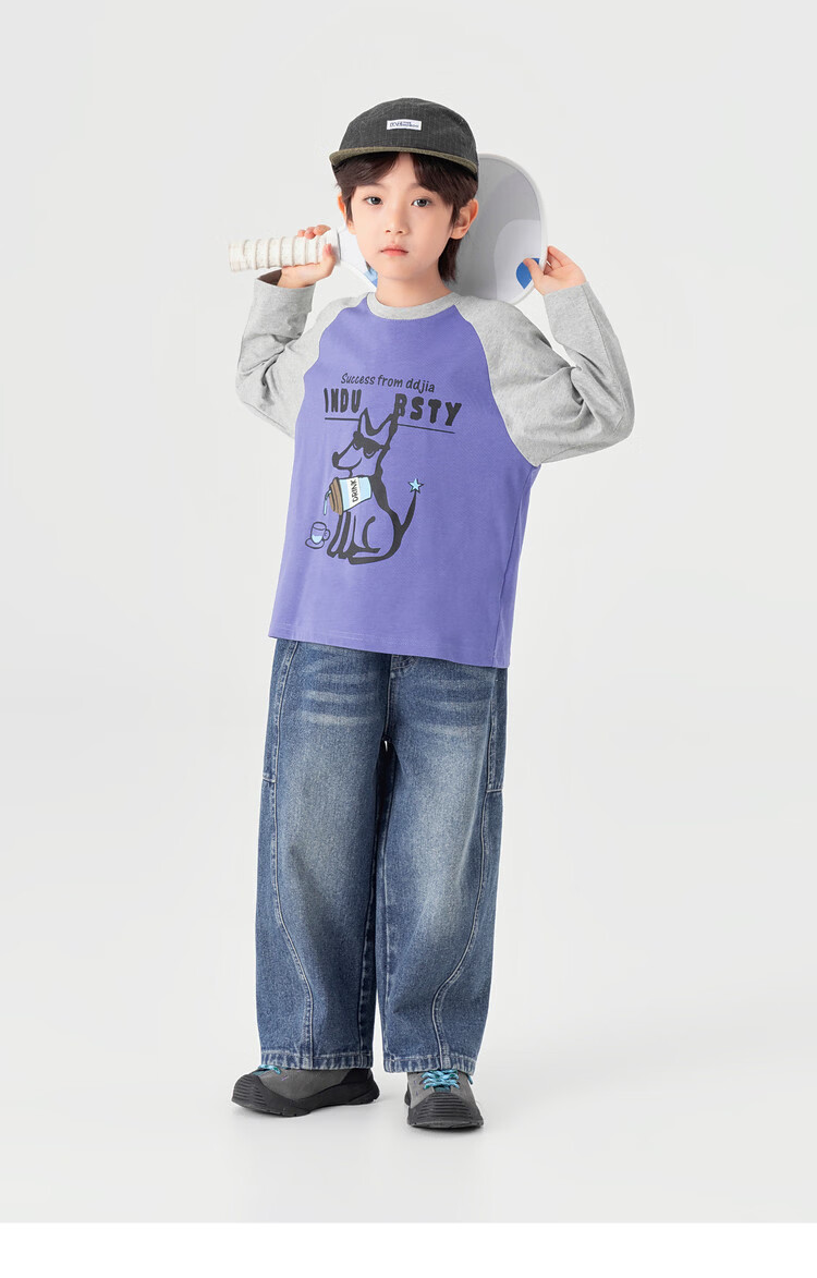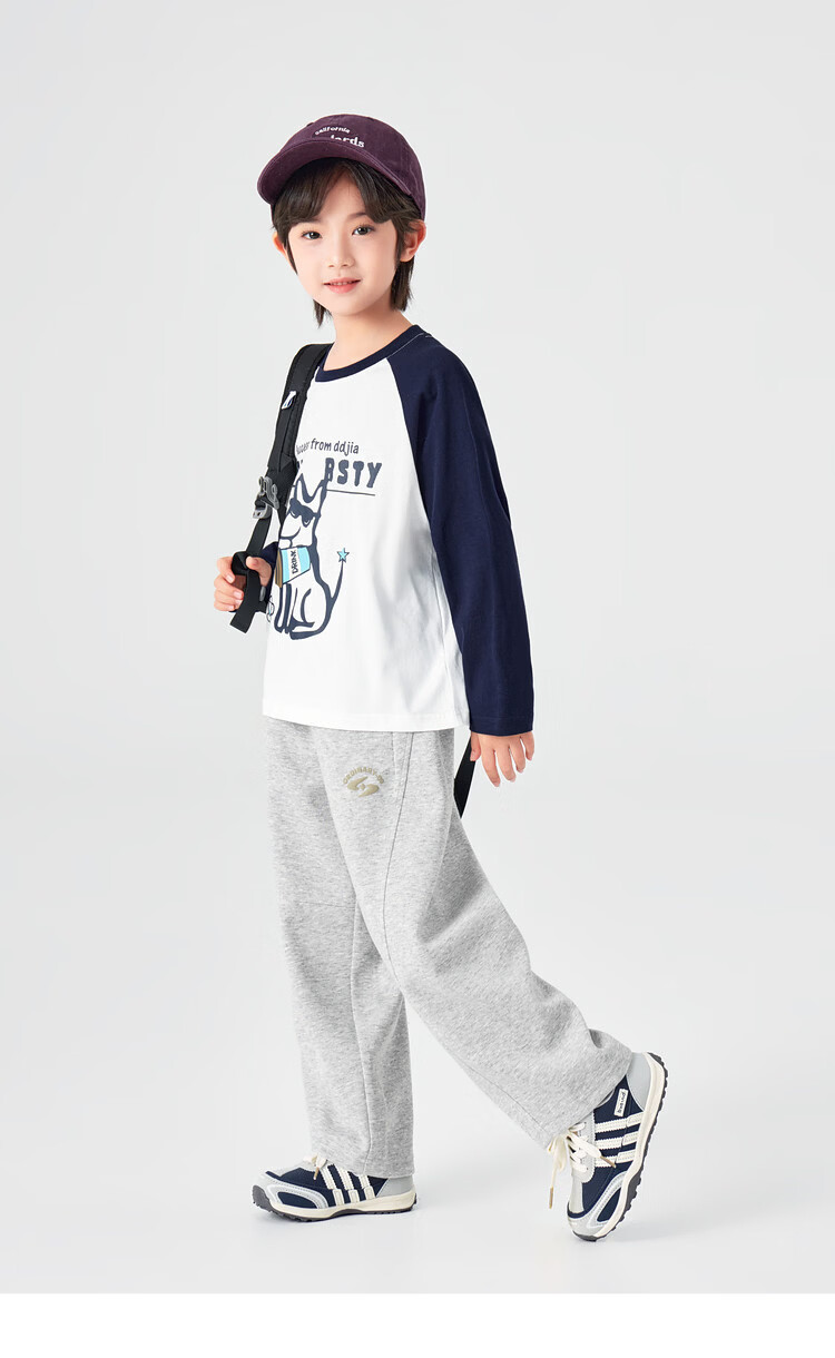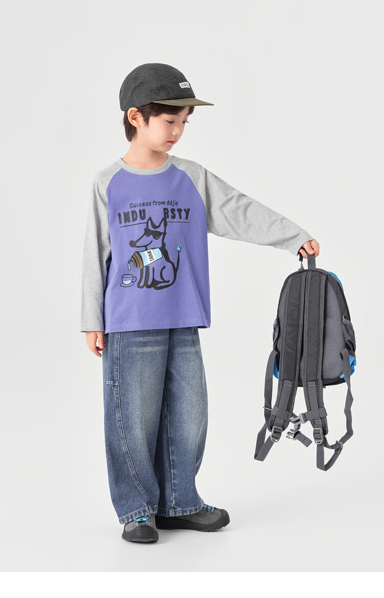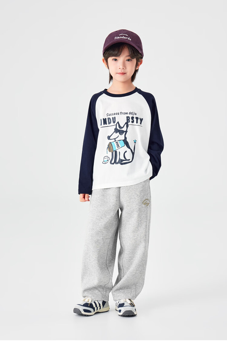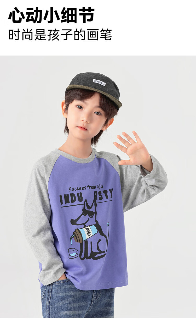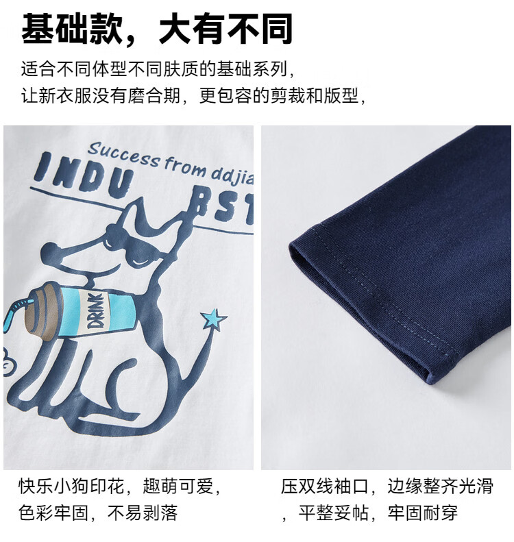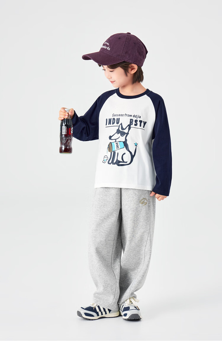 Duojia boys pure cotton long-sleeved 2026 spring and autumn American trendy children's clothing puppy print T-shirt children's breathable and skin-friendly tops