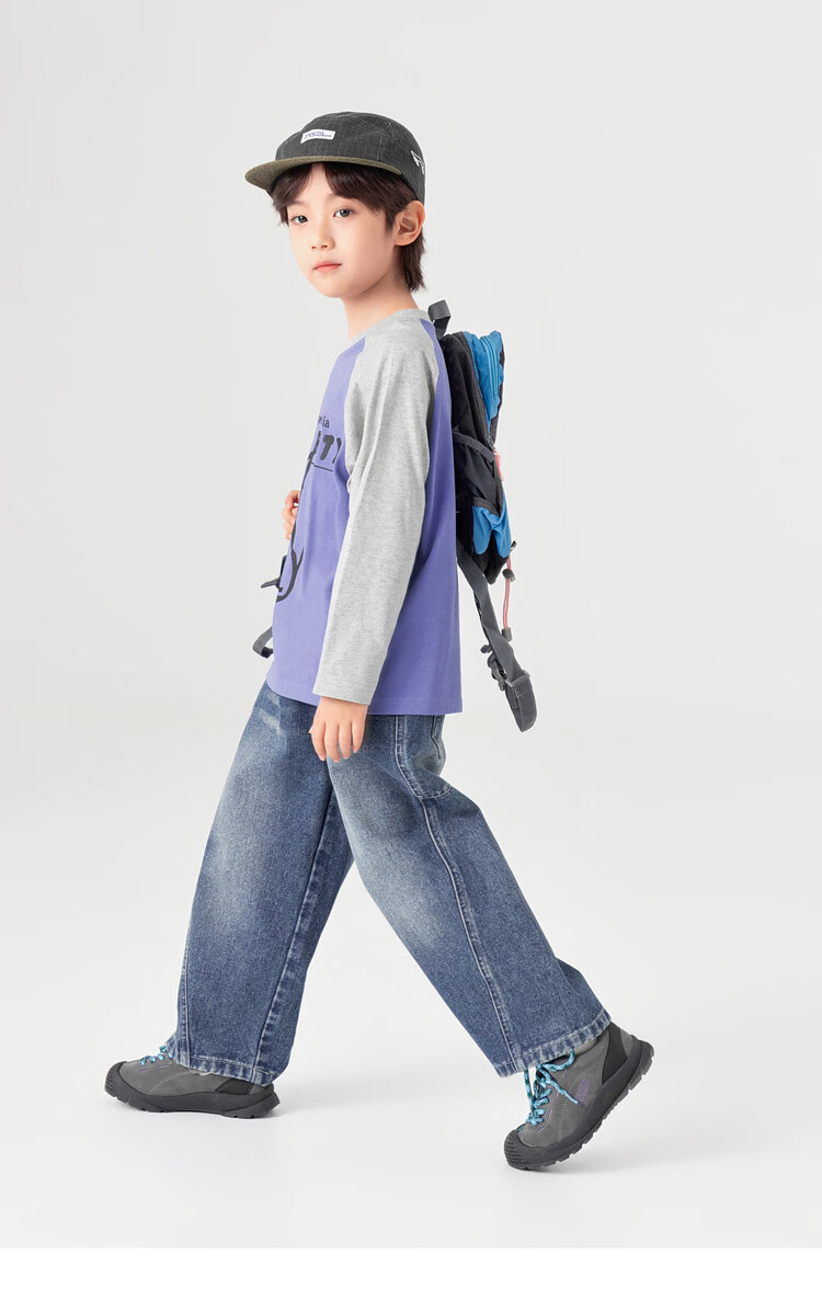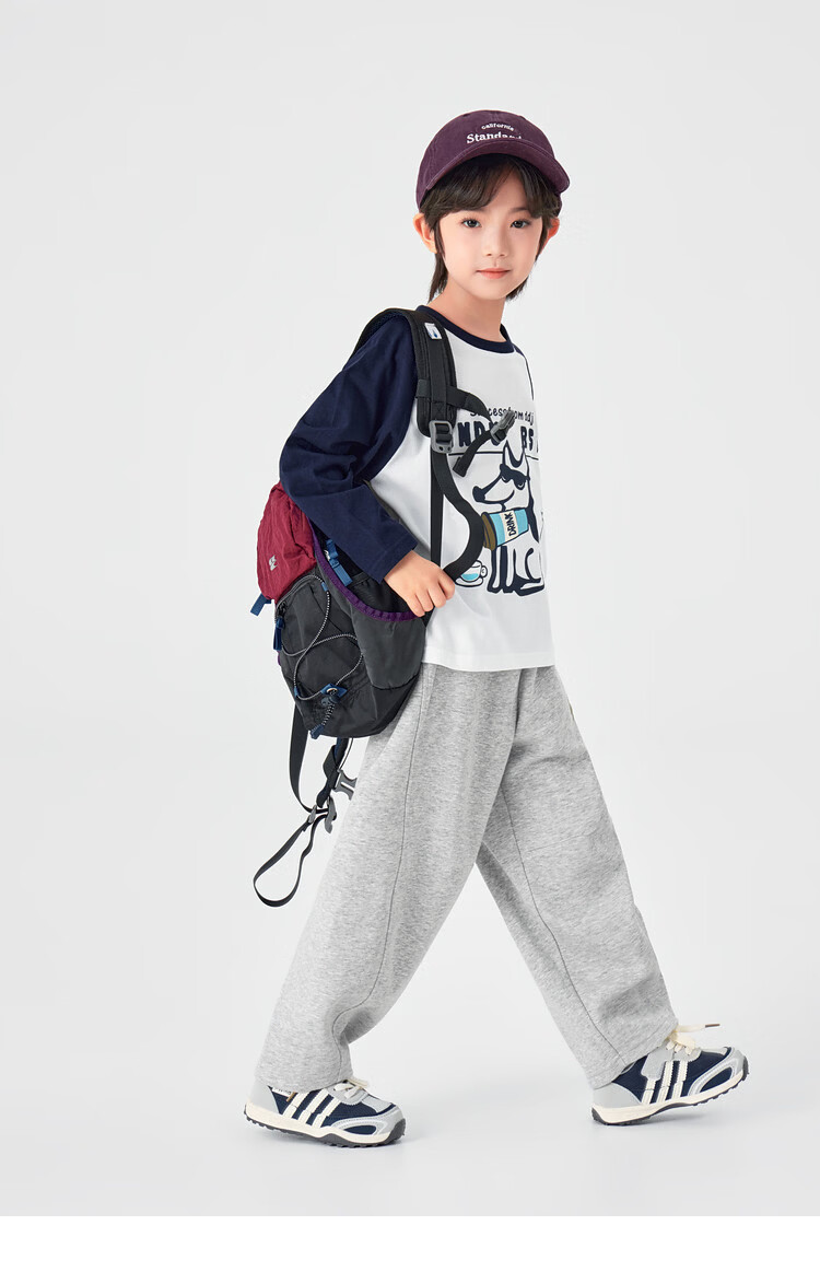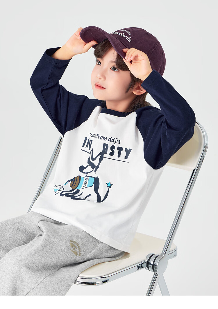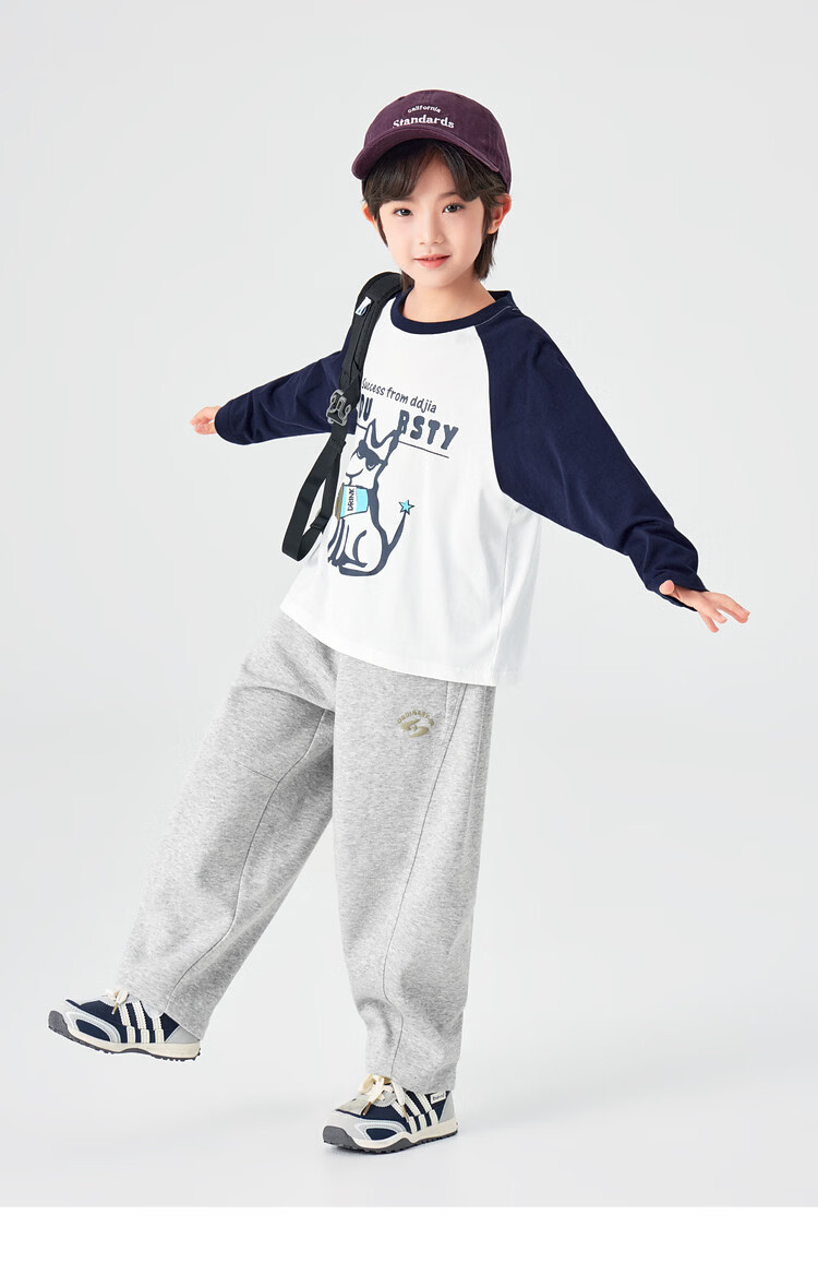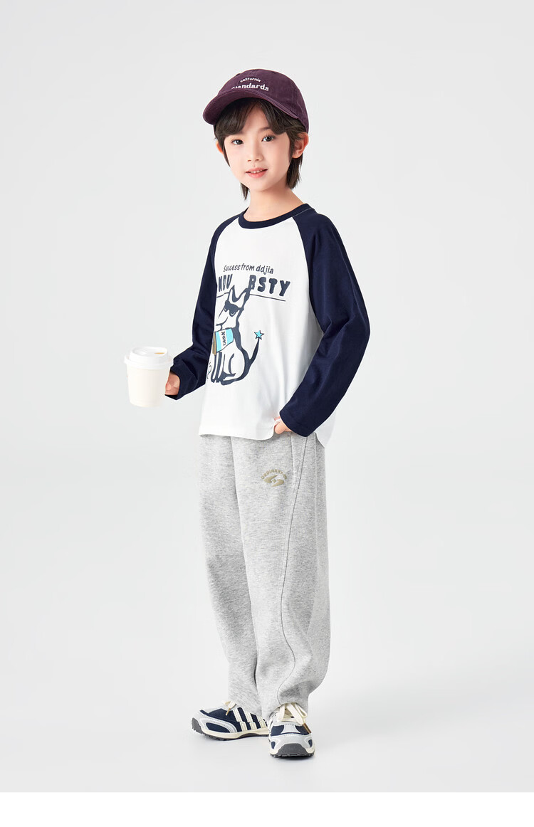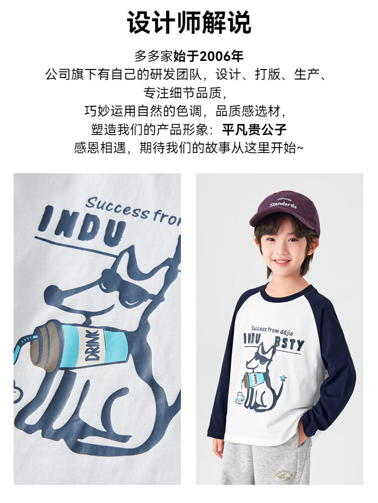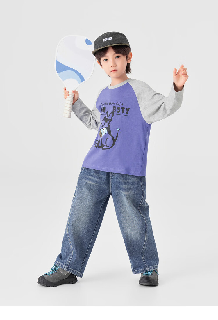 Duojia boys pure cotton long-sleeved 2026 spring and autumn American trendy children's clothing puppy print T-shirt children's breathable and skin-friendly tops