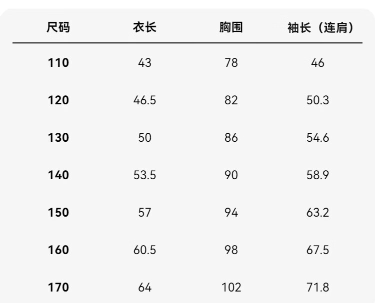 China (cm) 160-165/84-86 165-170 / 88-90 167-172 / 92-96 168-173 / 98-102 170-176 / 106-110
