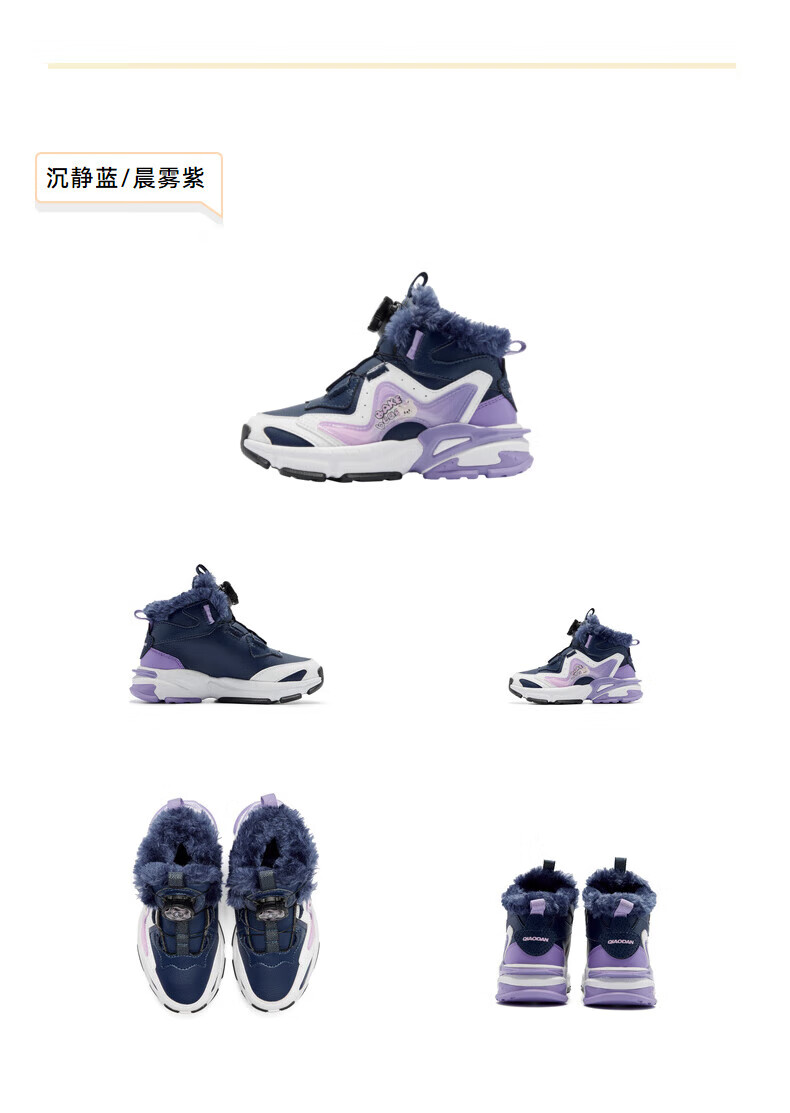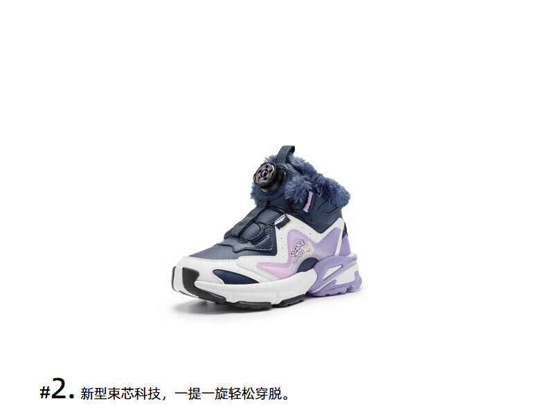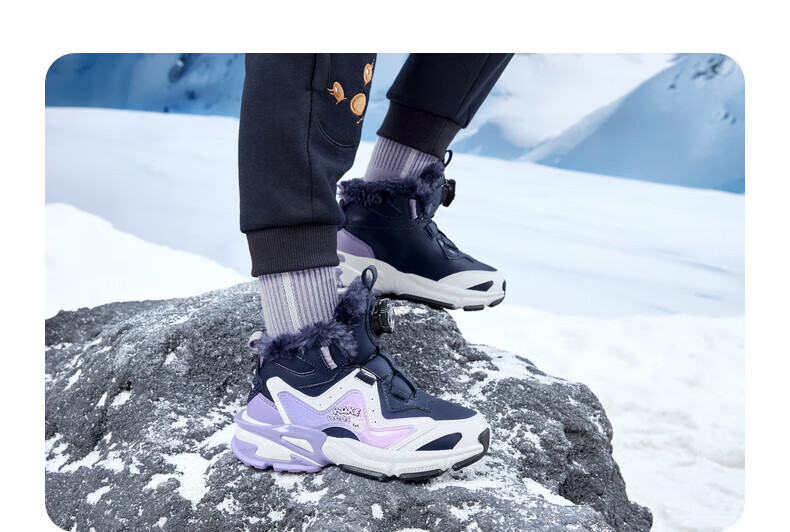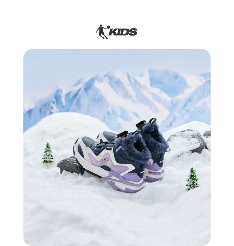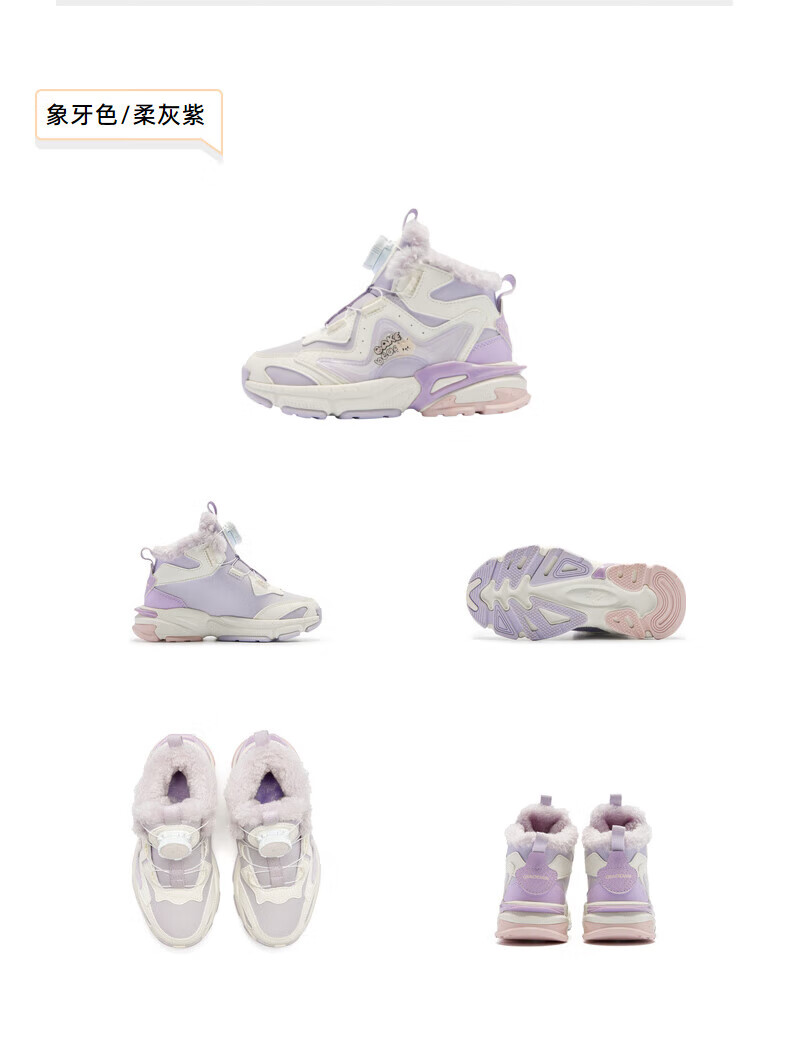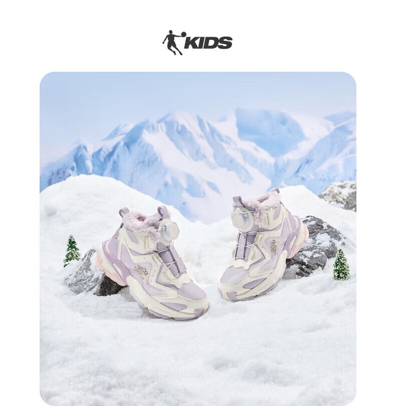 Jordan Girls' Velvet Cotton Shoes Children's Winter Mid-top Knob Button Sports Running Shoes Ivory/Soft Gray Purple 33