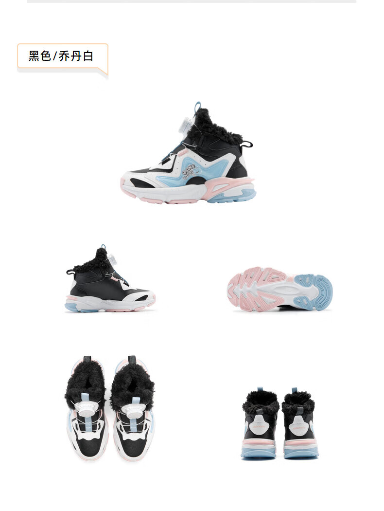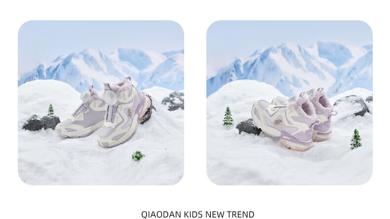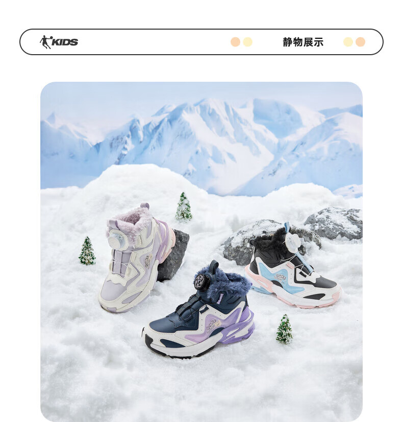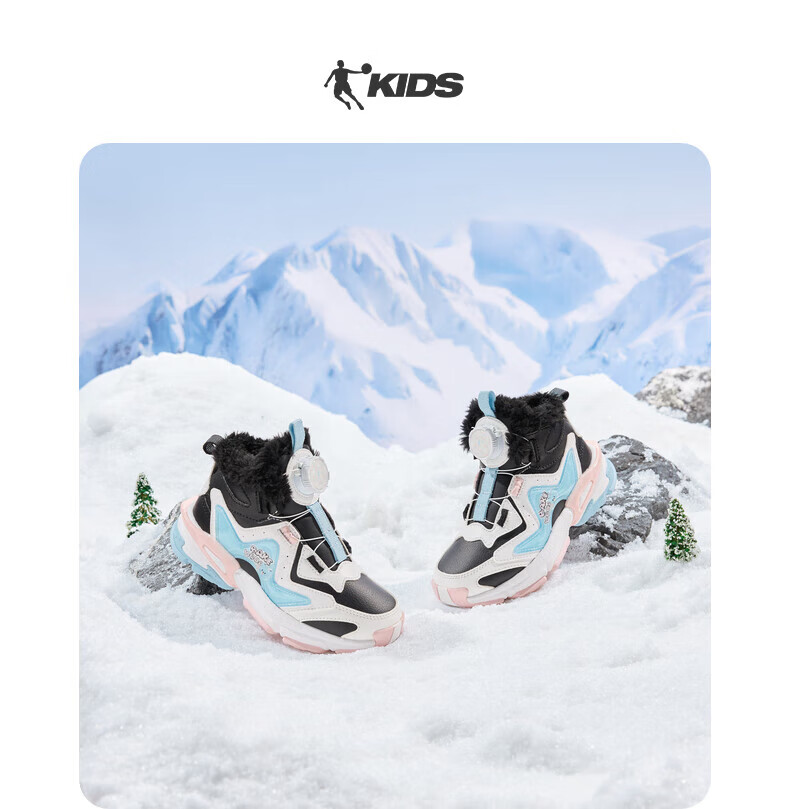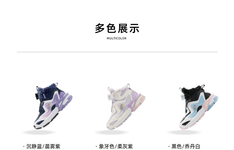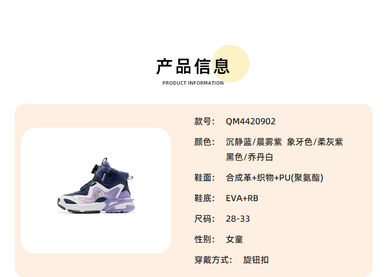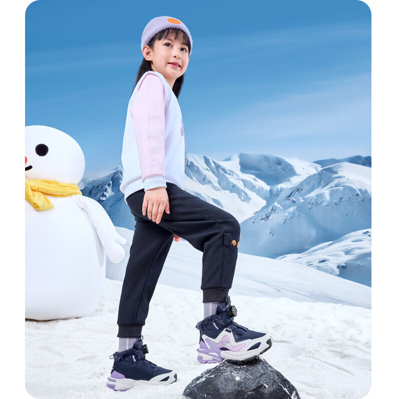 Jordan Girls' Velvet Cotton Shoes Children's Winter Mid-top Knob Button Sports Running Shoes Ivory/Soft Gray Purple 33