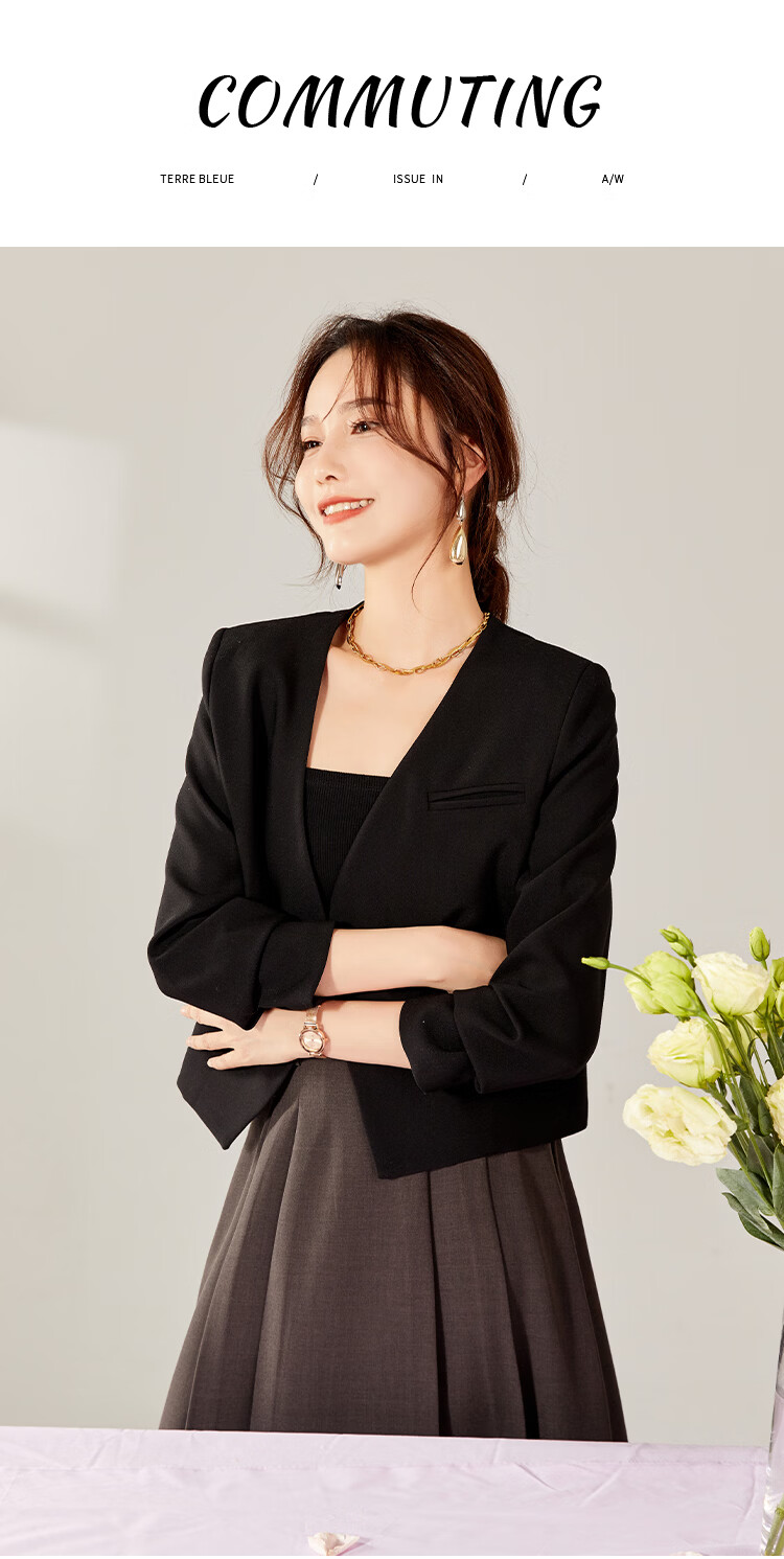 TERRE BLEUE Small Suit Women's 2026 Spring and Autumn New Style Commuting Short Suit Jacket Women's Loose Versatile Slim Top