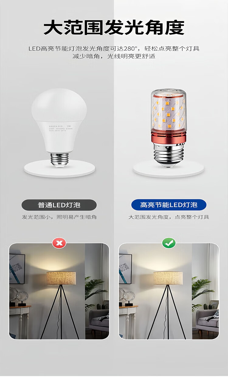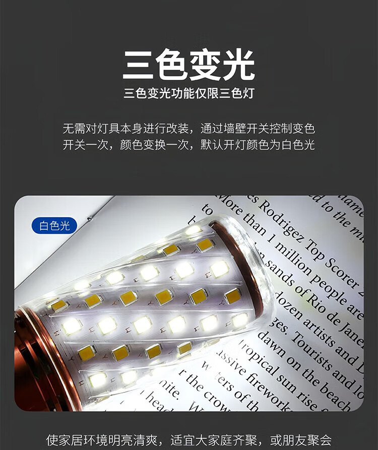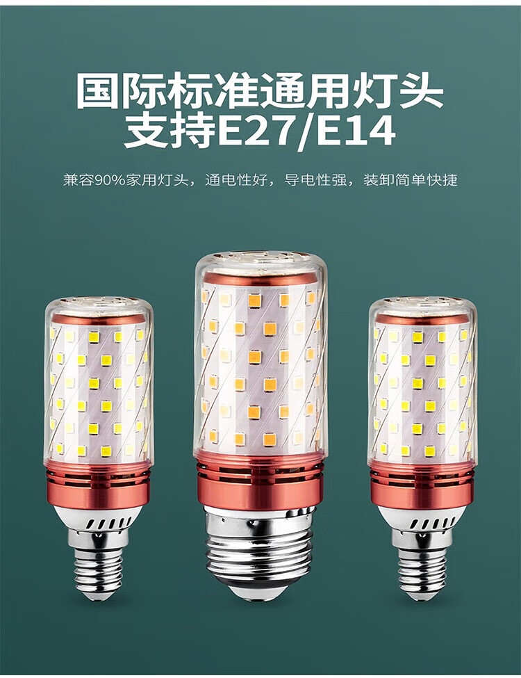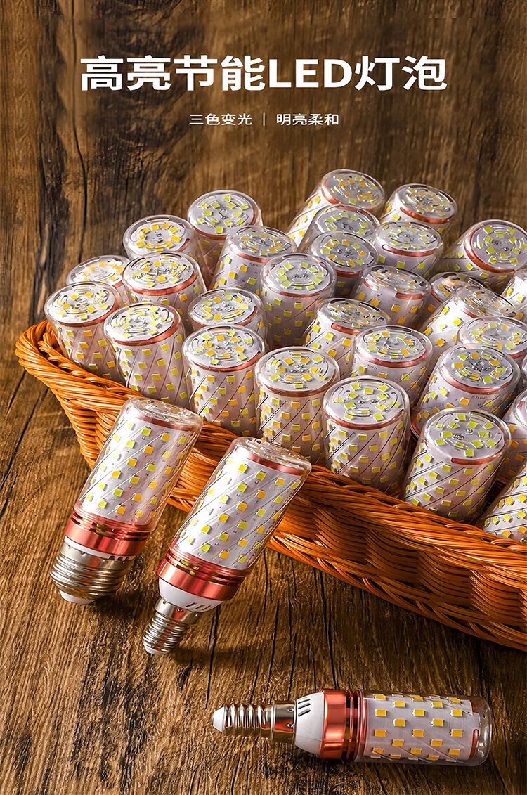 Yunzhizhuo LED corn lamp energy-saving high-bright chandelier crystal lamp replacement light source three-color dimming 12W E14 screw port