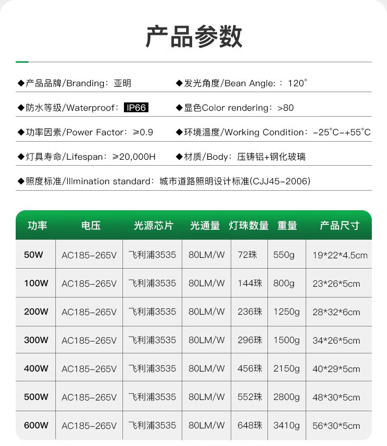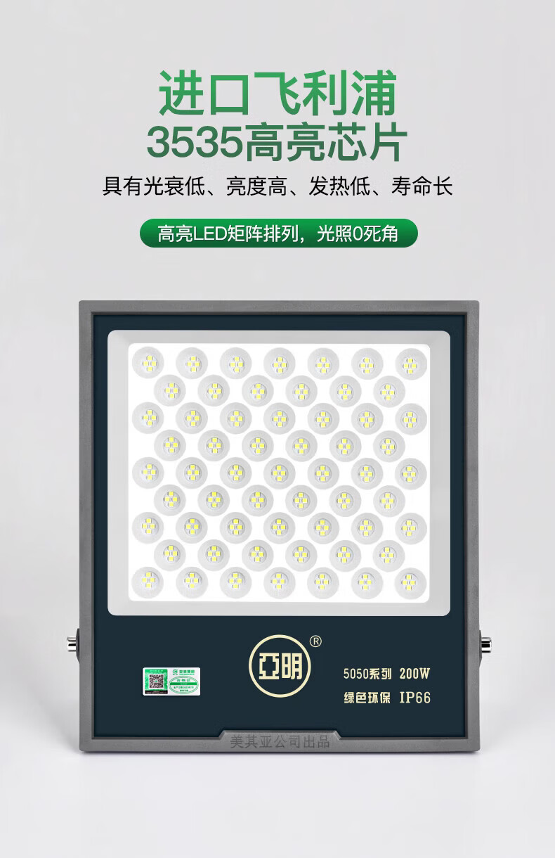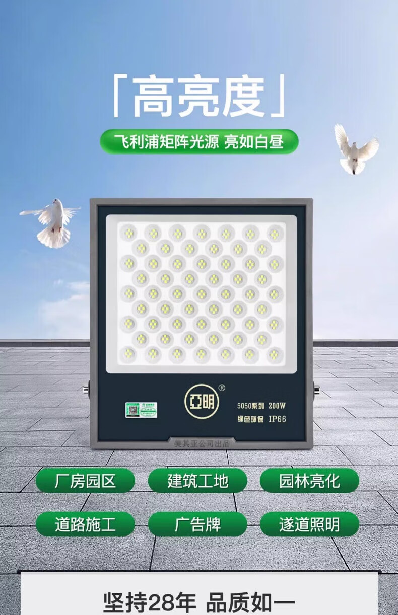 Yaming led floodlight spotlight outdoor waterproof industrial workshop factory outdoor lighting courtyard searchlight IP66 grade 400w white light