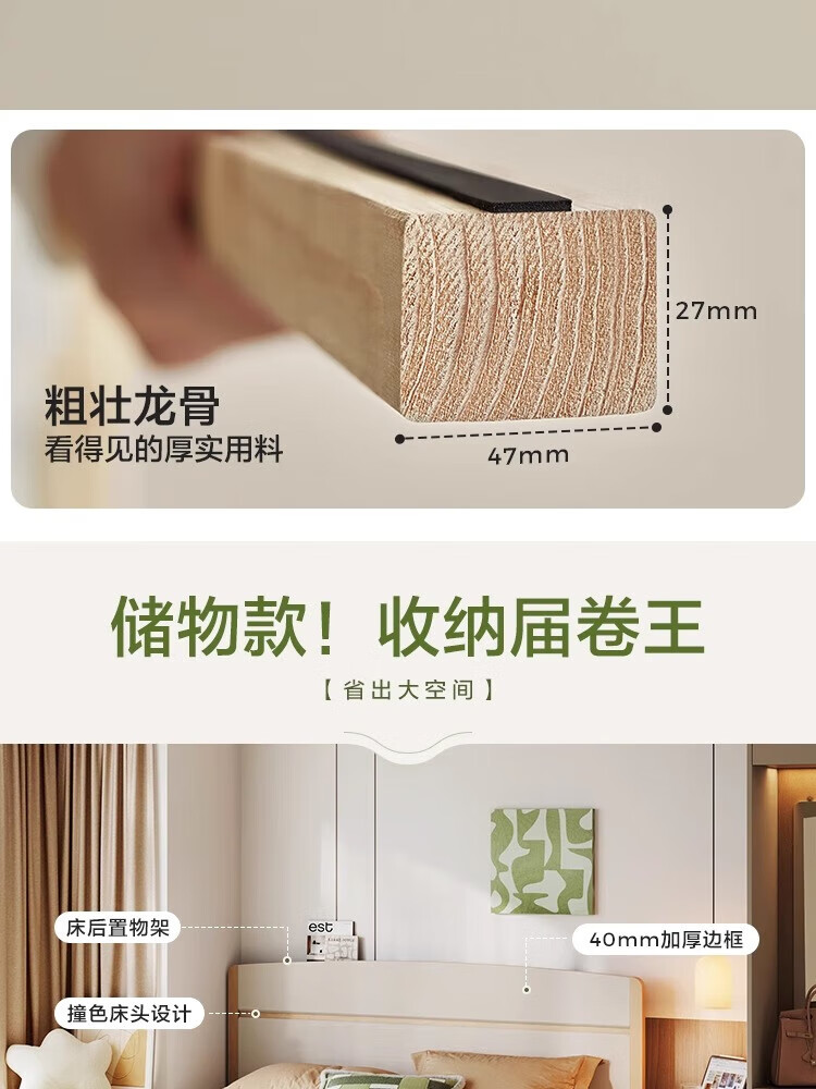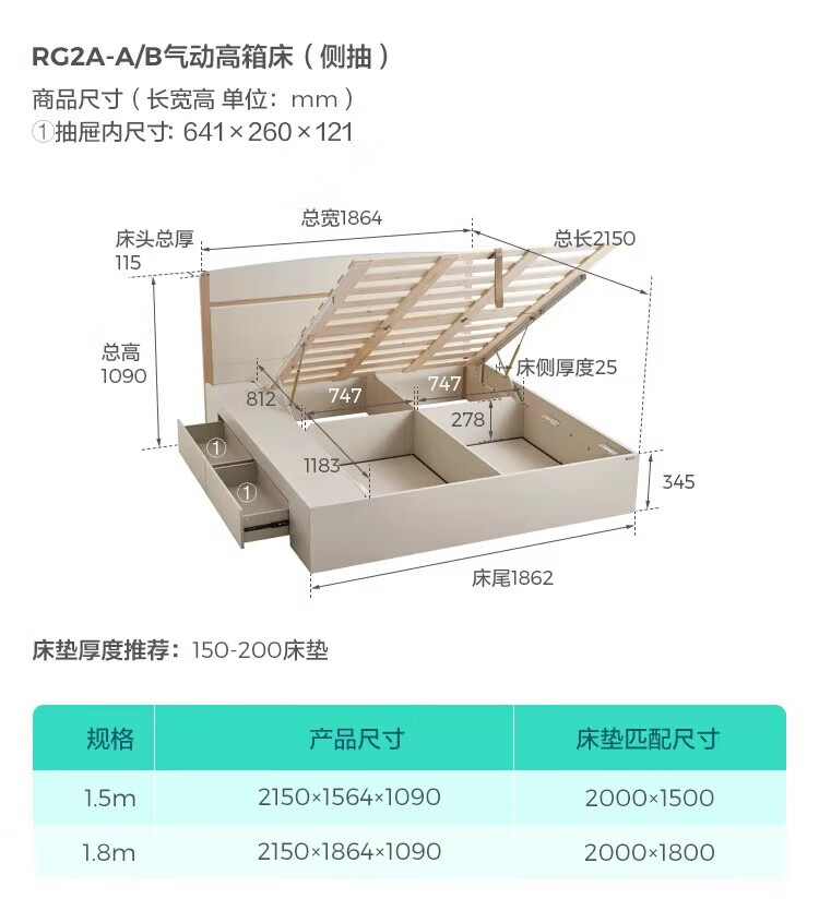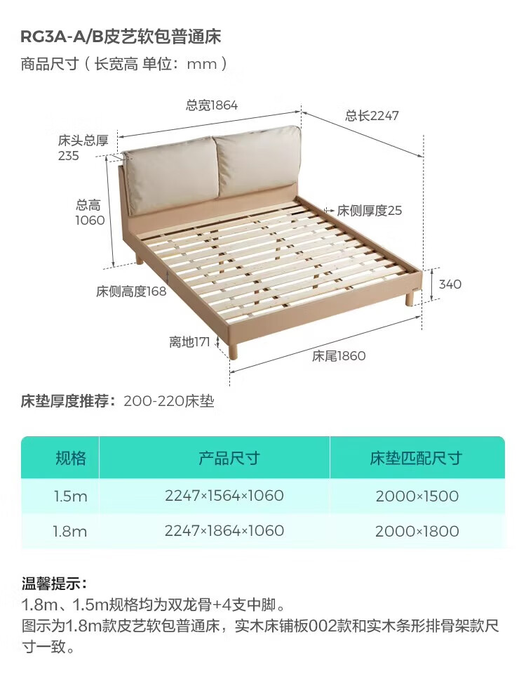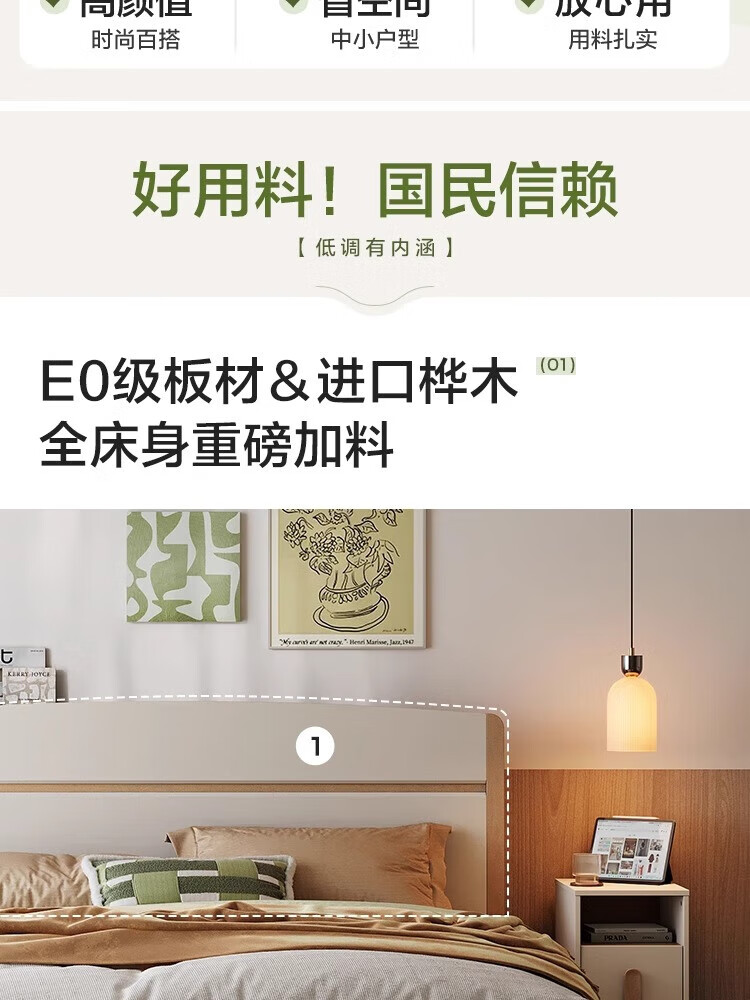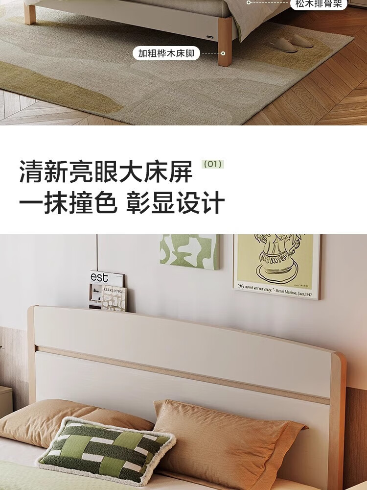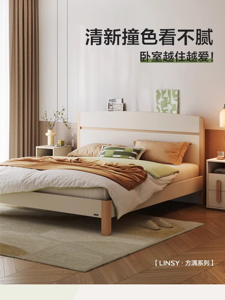 Lin's Home Bedroom Bed 1.5*2.0 Single Bed Modern Simple Small Apartment Full Side Bed Square Man Series RG2A