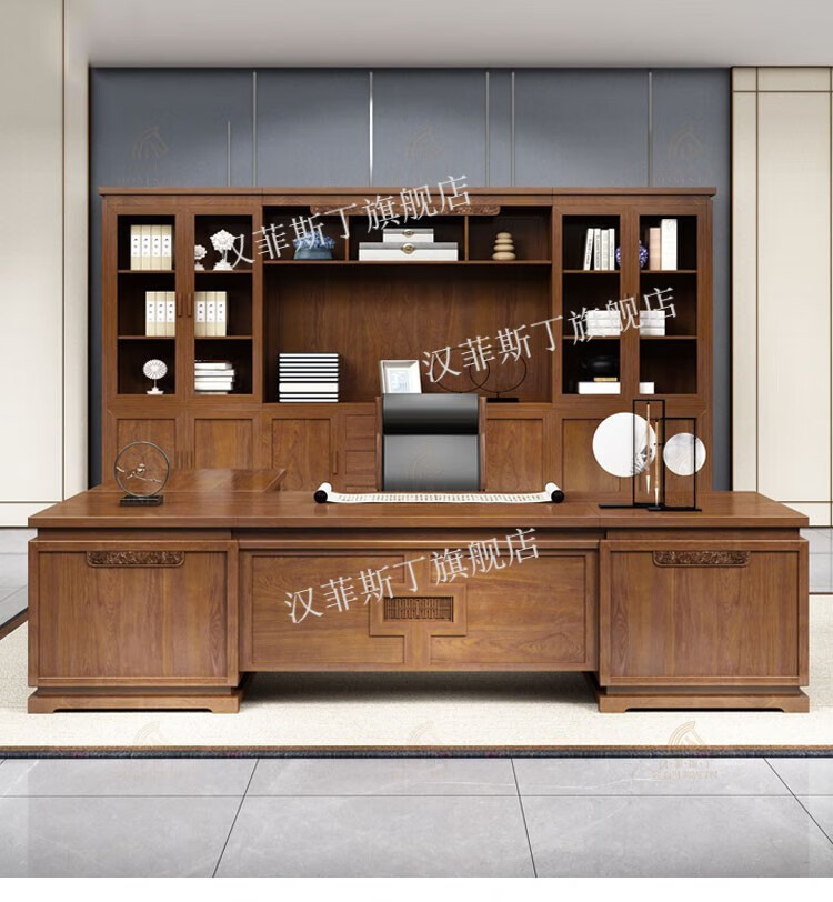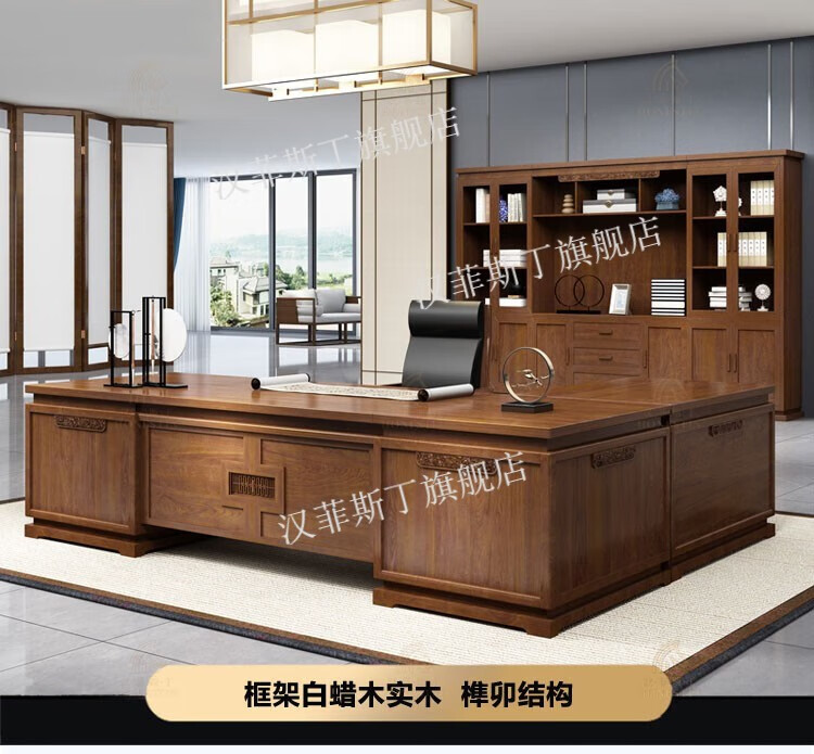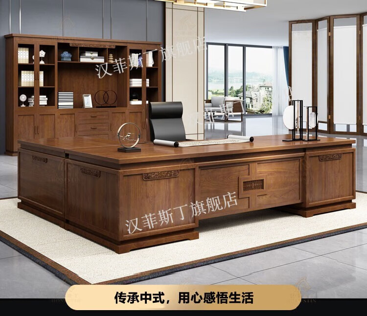 Hanfestin solid wood office desk boss table new Chinese style chairman furniture customized atmospheric president desk and chair combination 2.8 meters boss table