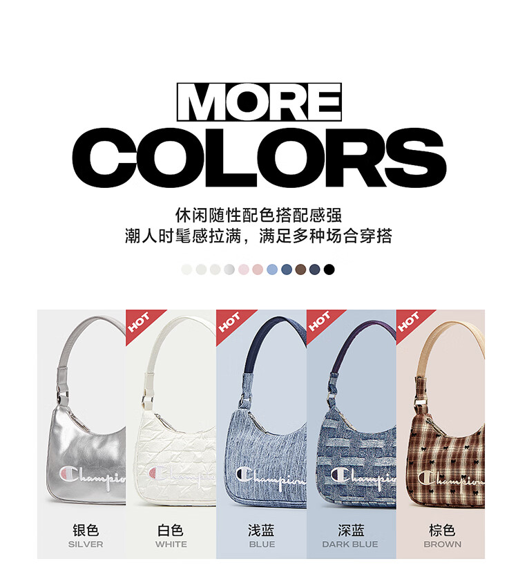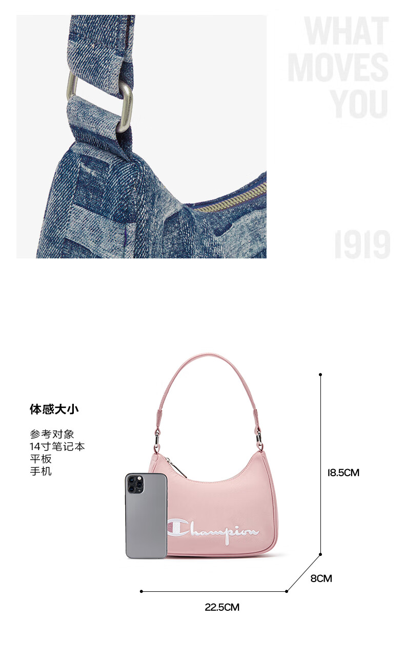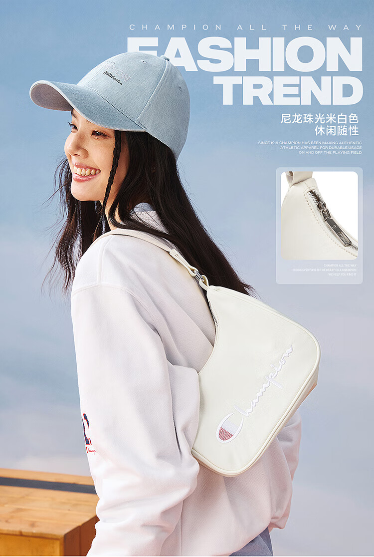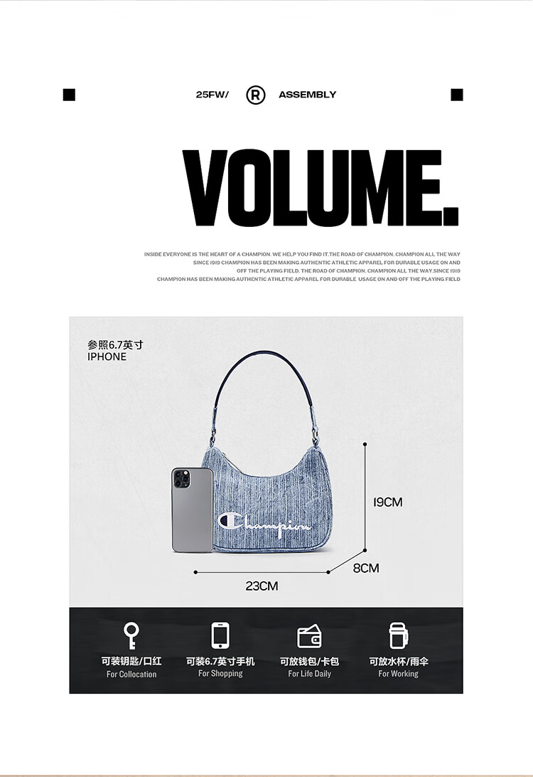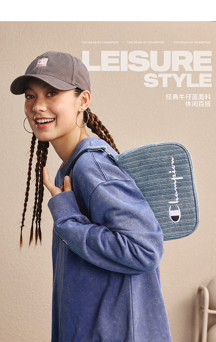 Champion美国冠军2025新款单肩包女男 潮流休闲时尚腋下包25FWG85 浅蓝