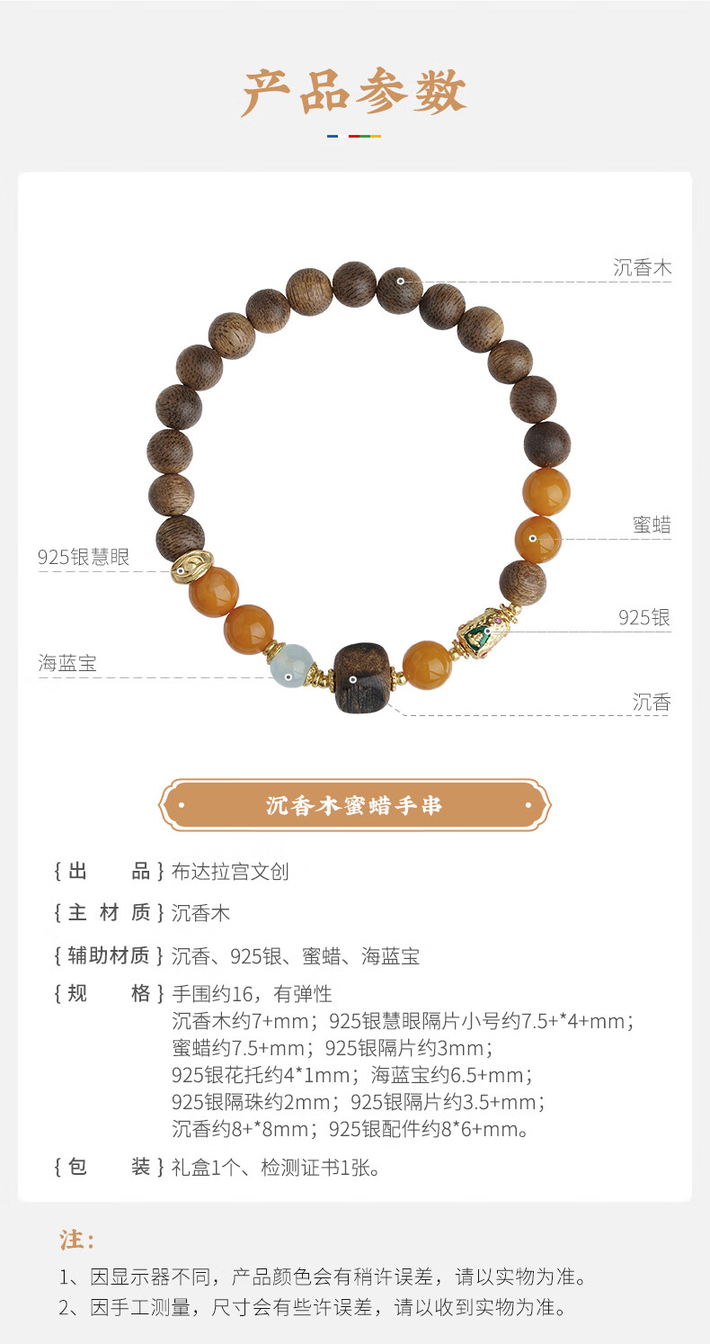 Potala Palace Agarwood Beeswax Bracelet for Men and Women Wenwan Toy Transfer Bead Amber Bracelet Birthday Gift for Boyfriend
