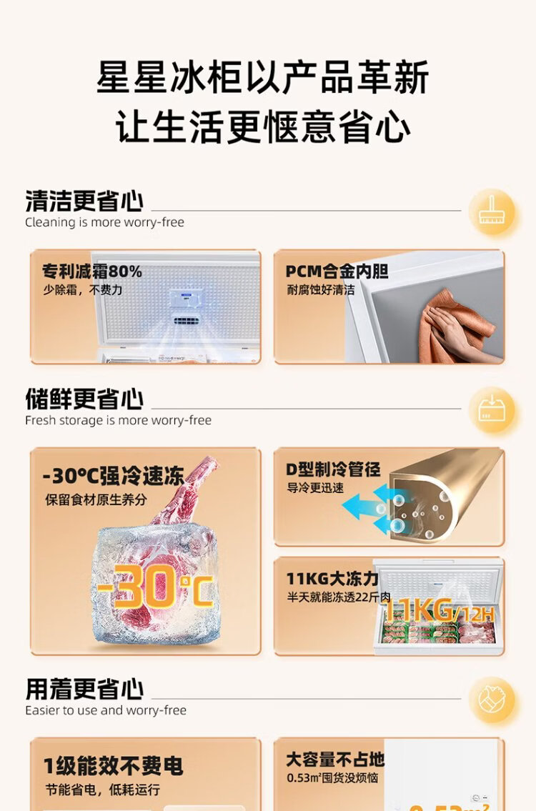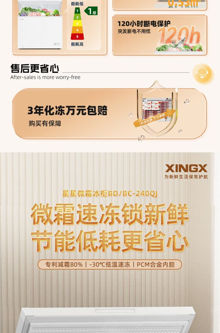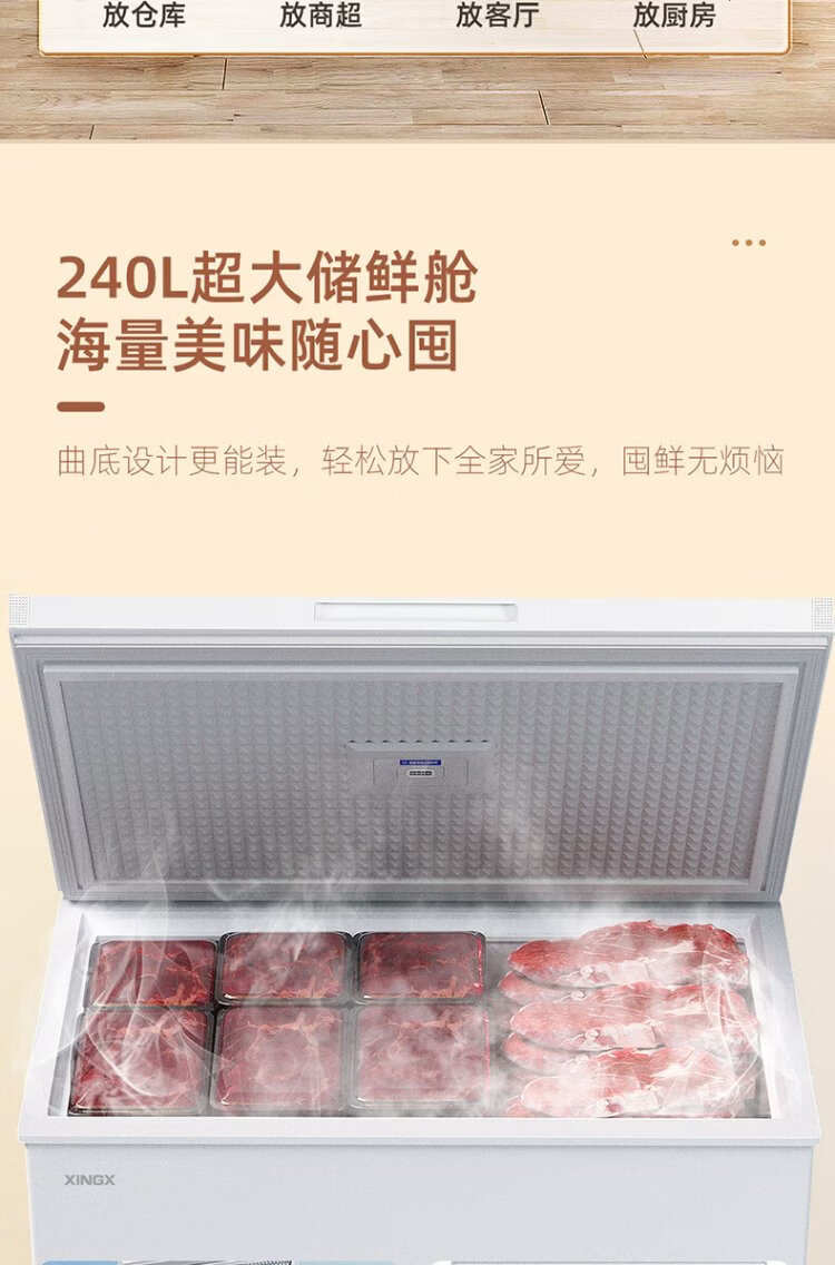 Xingx (XINGX) 240L single temperature household small freezer large capacity frost reduction preservation fresh taste energy saving first class energy efficiency refrigerator refrigeration and freezing dual-use freezer BD/BC-240QJ national subsidy