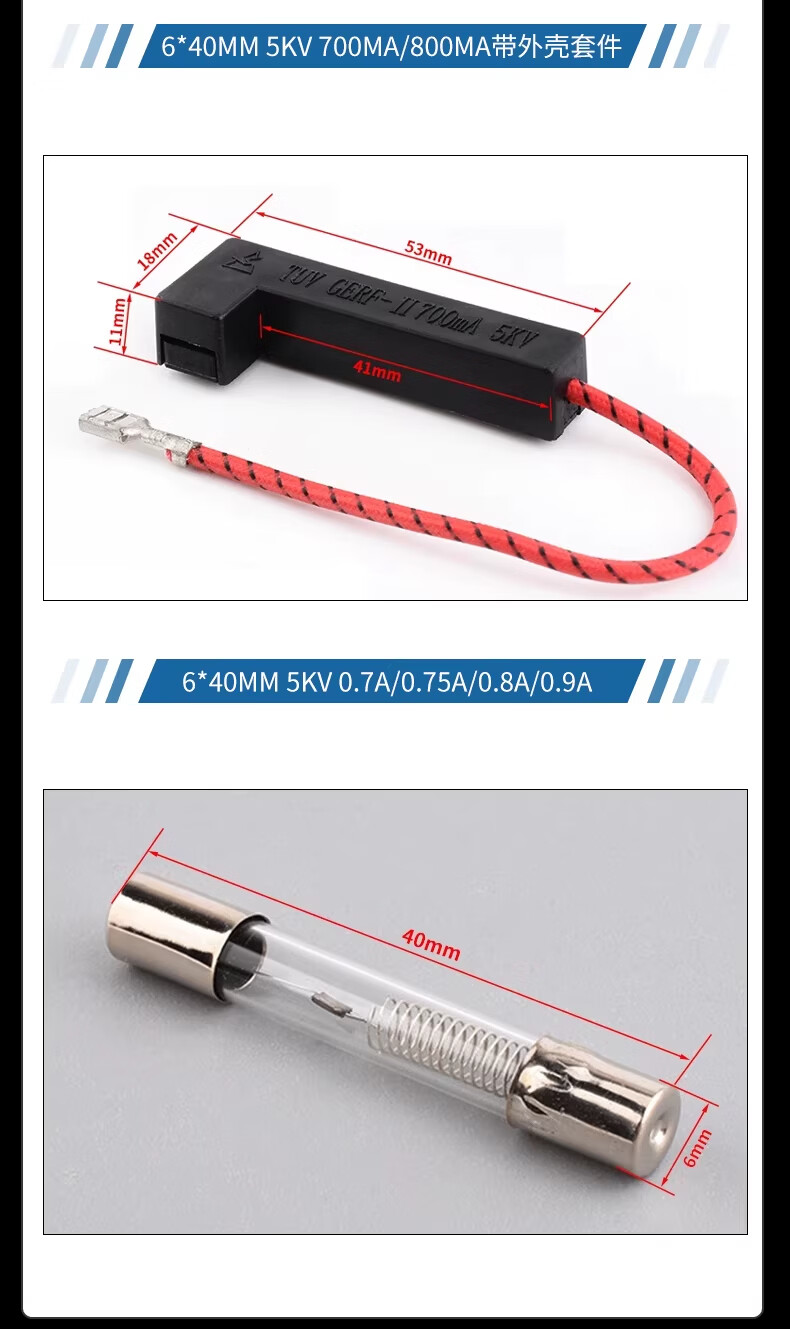 ZAVE Microwave oven high voltage fuse with shell fuse kit 6*40mm 5KV 0.75A with shell kit (integrated fuse)