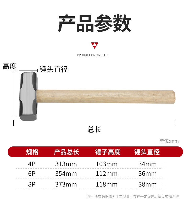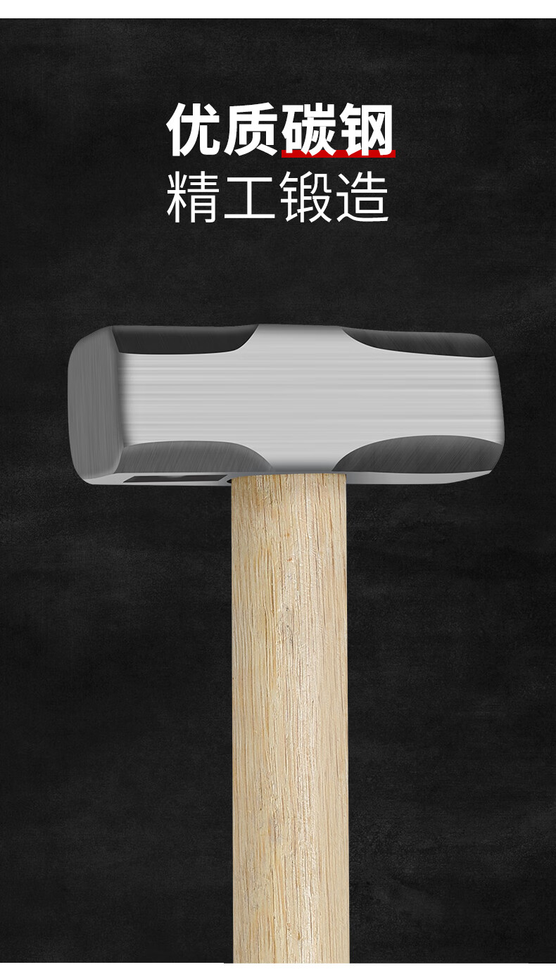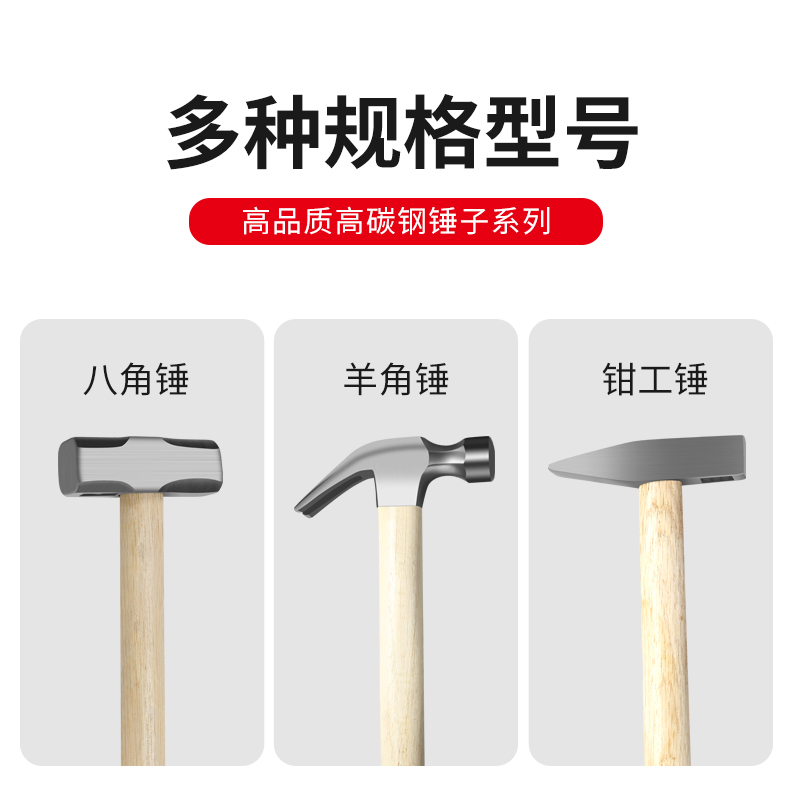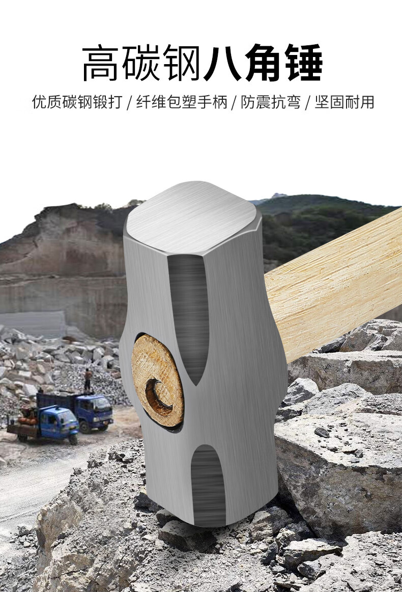 Chengzhou octagonal hammer eight-pound wooden handle heavy-duty woodworking one-piece claw hammer wall hammer iron hammer fitter masonry hammer household octagonal hammer solid wood handle 4P