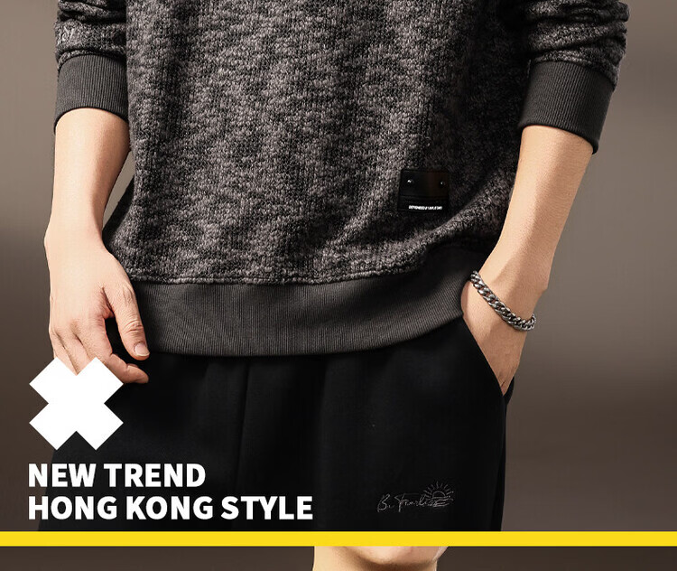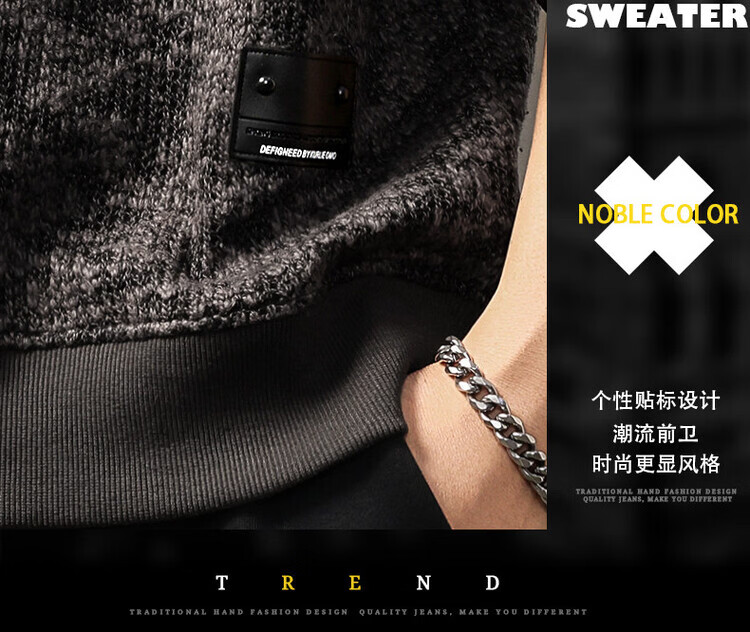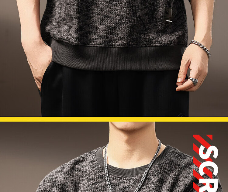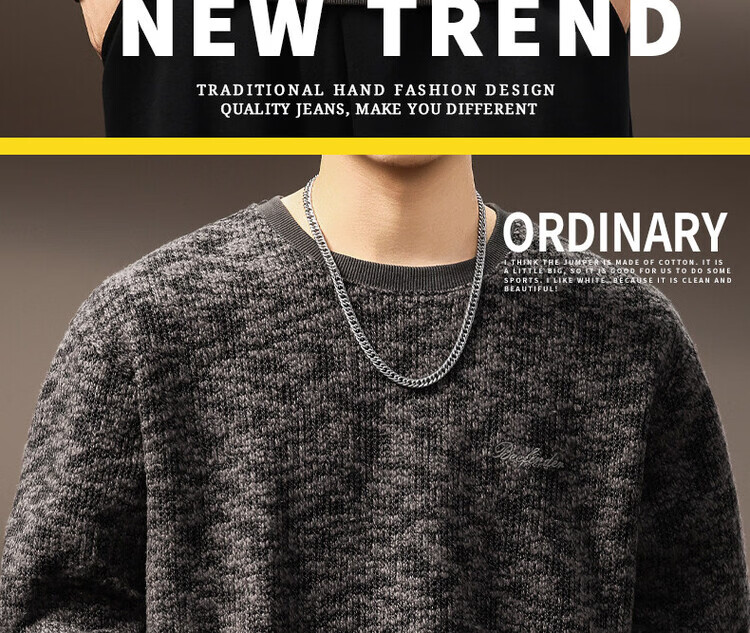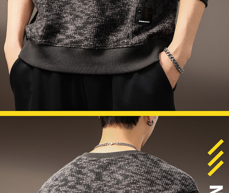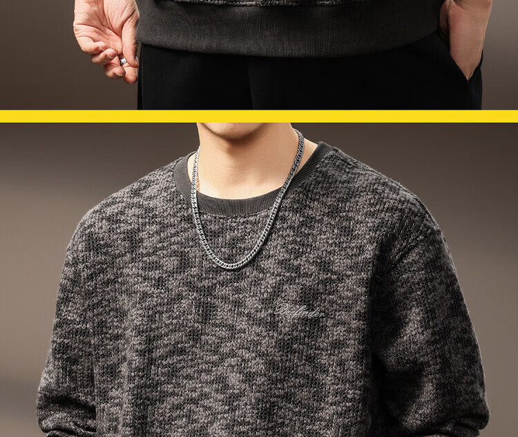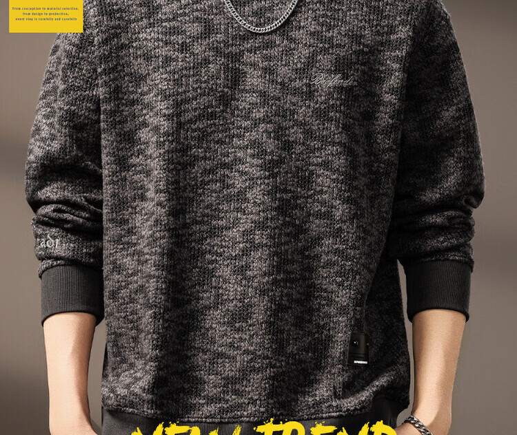 Precious color high-end American heavyweight retro knitted sweatshirt for men in spring and autumn trendy brand loose simple versatile top clothes bottoming shirt
