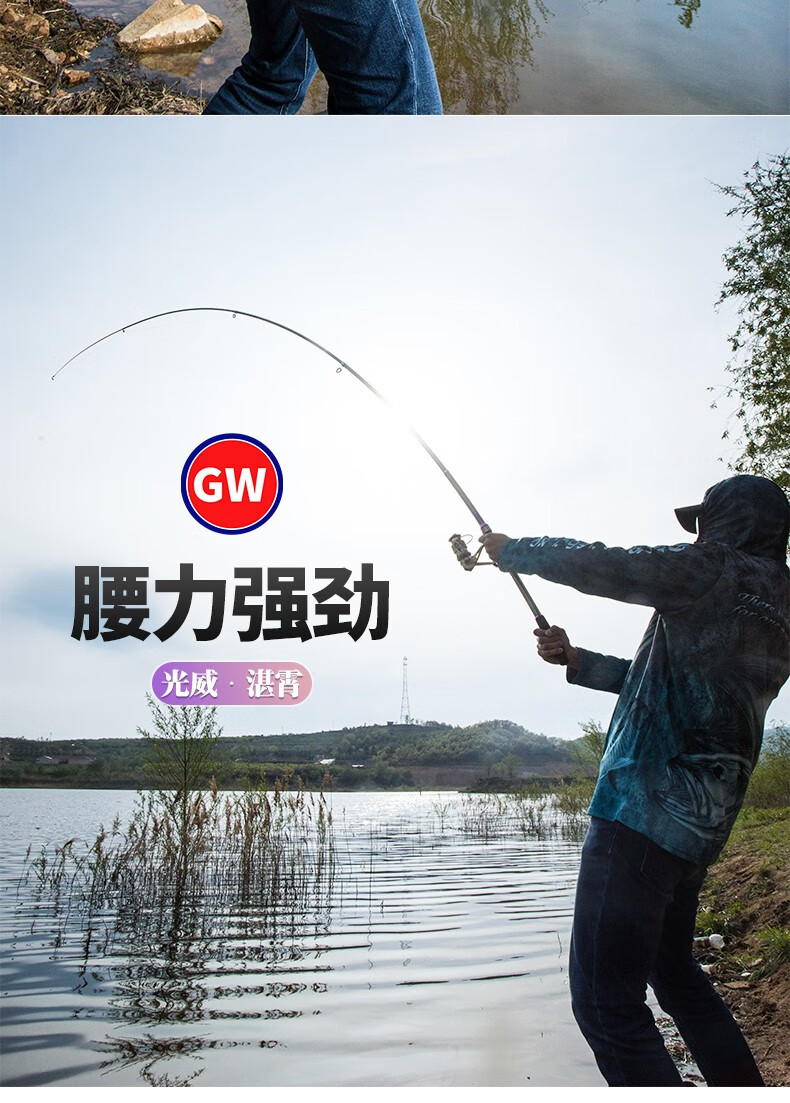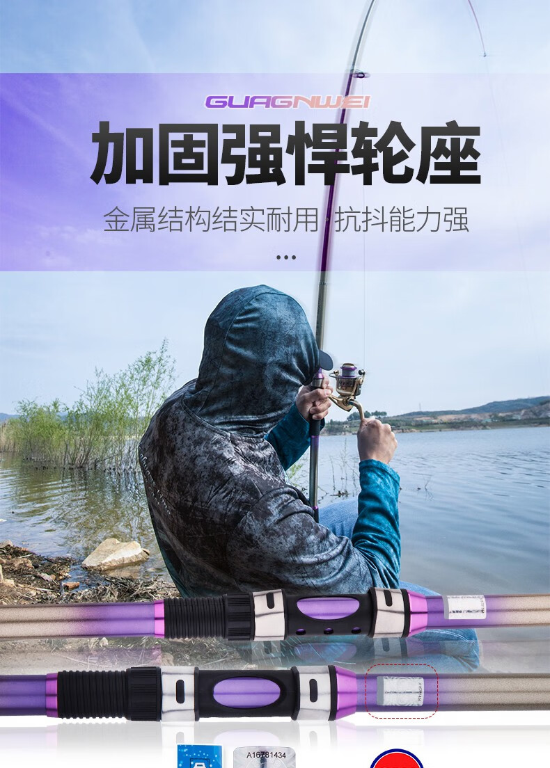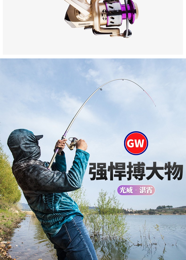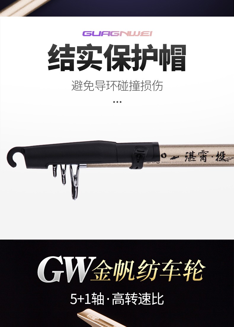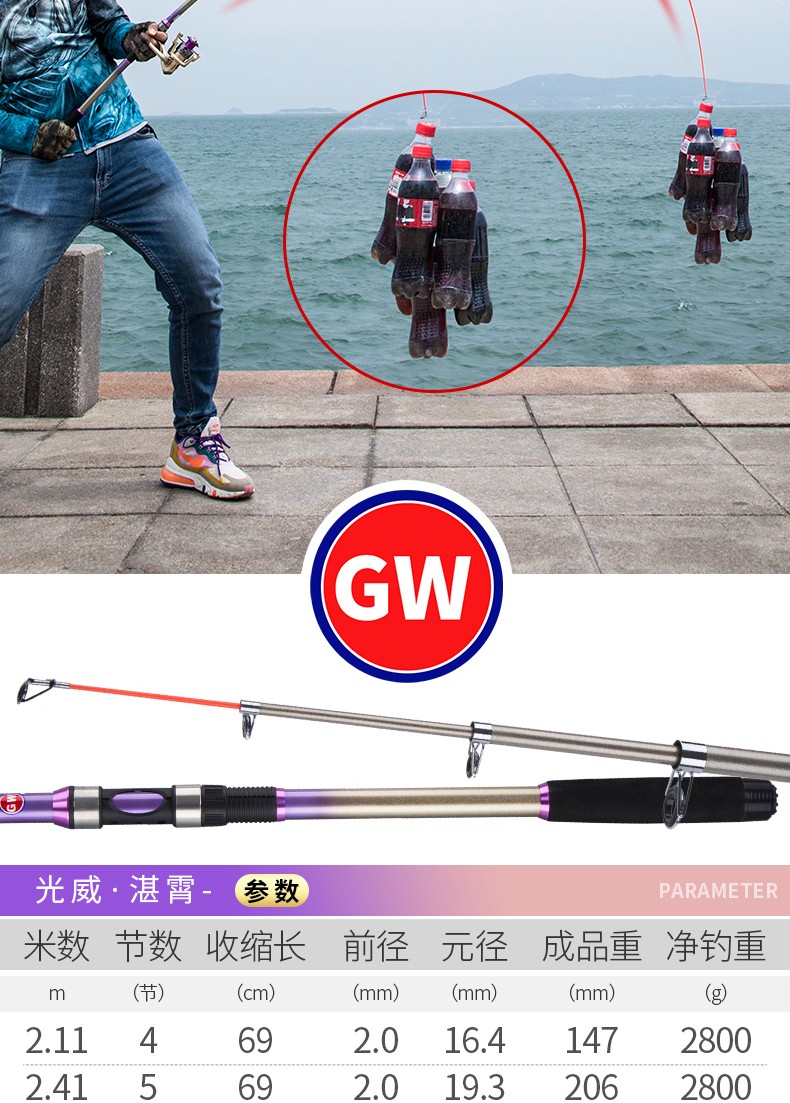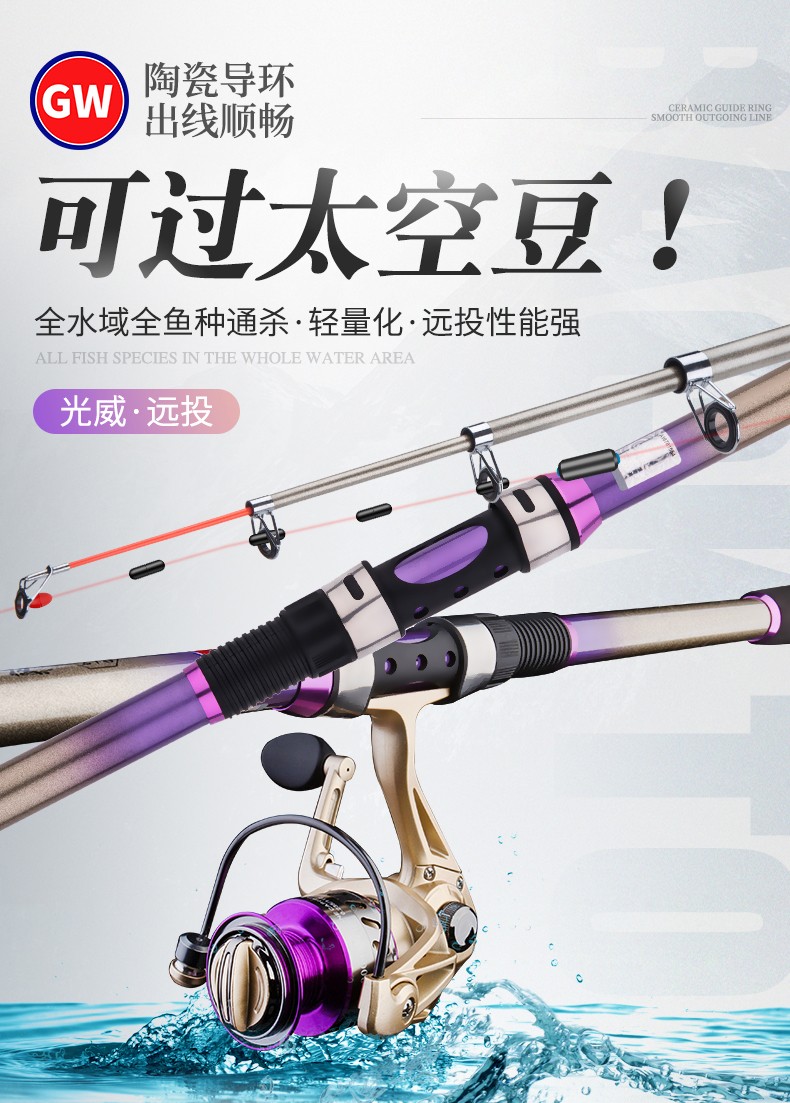 Guangwei (GW) fishing rod and sea rod set 3.6m long-range casting rod carbon hard sea rod 2.4\2.7m casting sea fishing rod Zhanxiao 2.4m + Guangwei wheel + fishing accessories