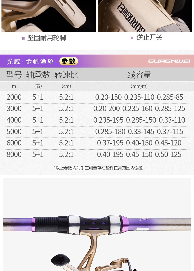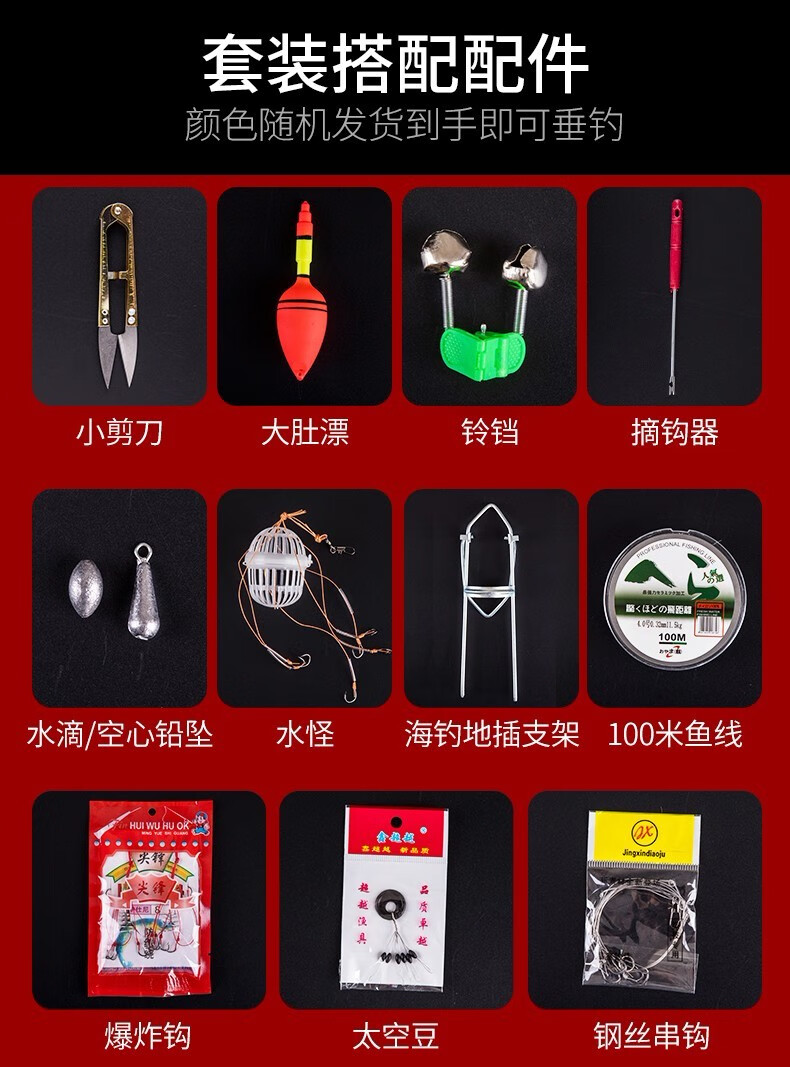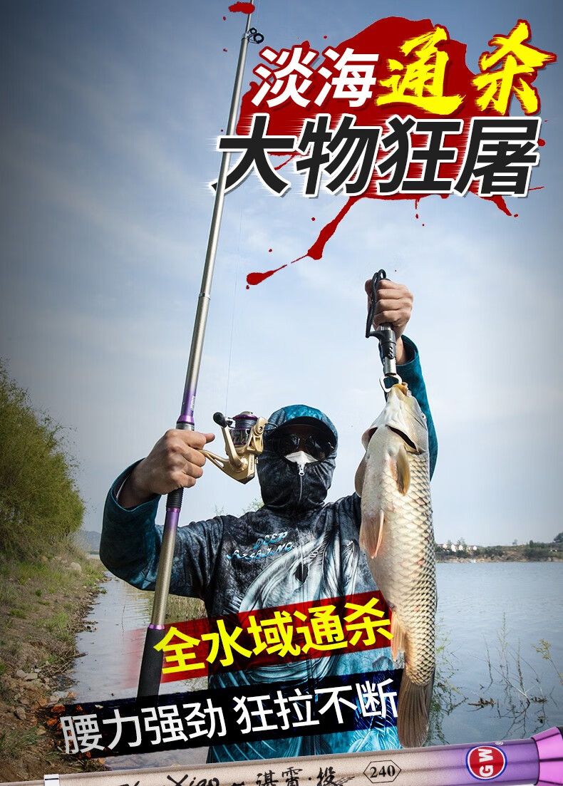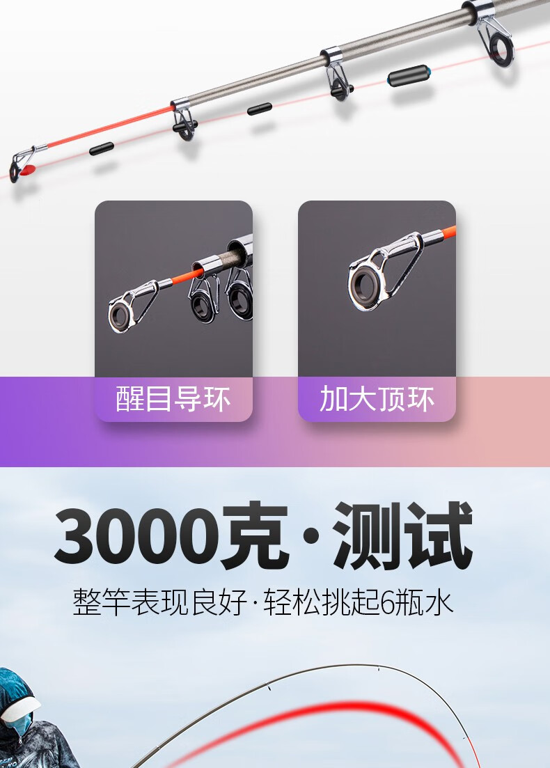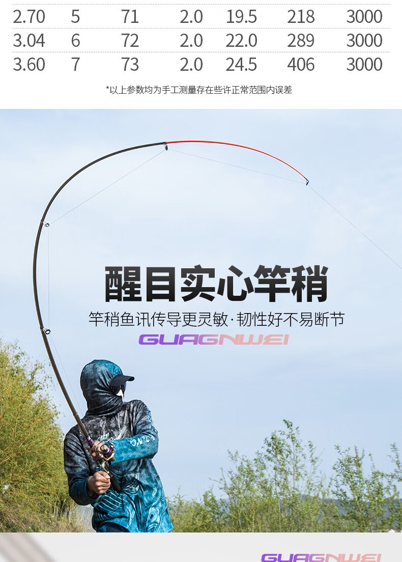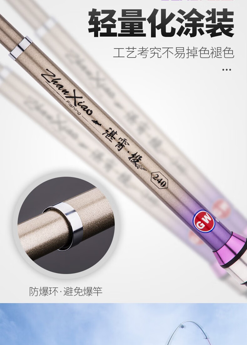 Guangwei (GW) fishing rod and sea rod set 3.6m long-range casting rod carbon hard sea rod 2.4\2.7m casting sea fishing rod Zhanxiao 2.4m + Guangwei wheel + fishing accessories