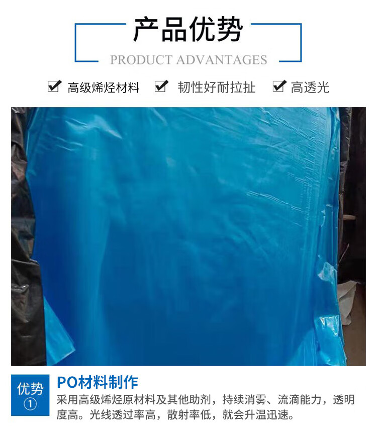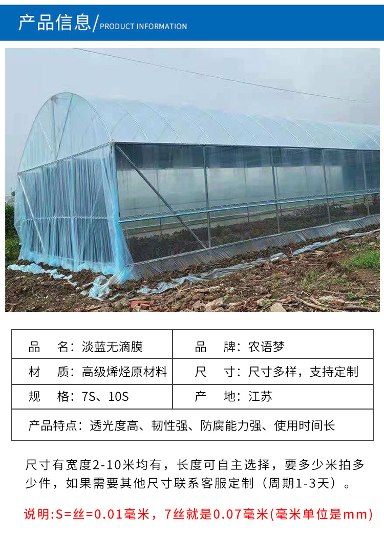 Nongyumeng po non-drip film film agricultural insulation plastic cloth rainproof cloth thickened light blue vegetable greenhouse film high light transmittance 7S thick 4*10 meters