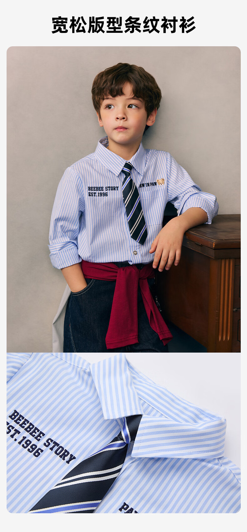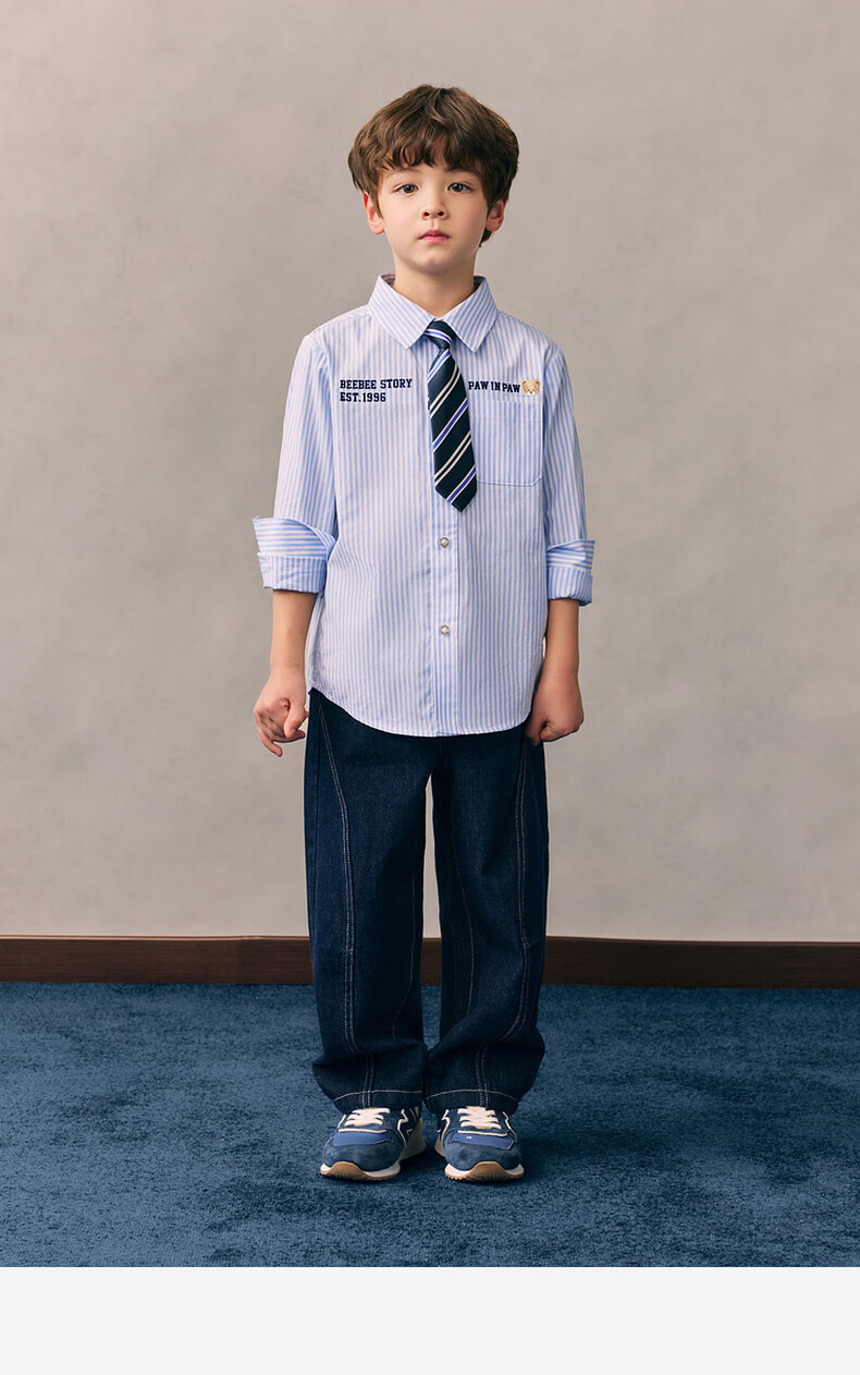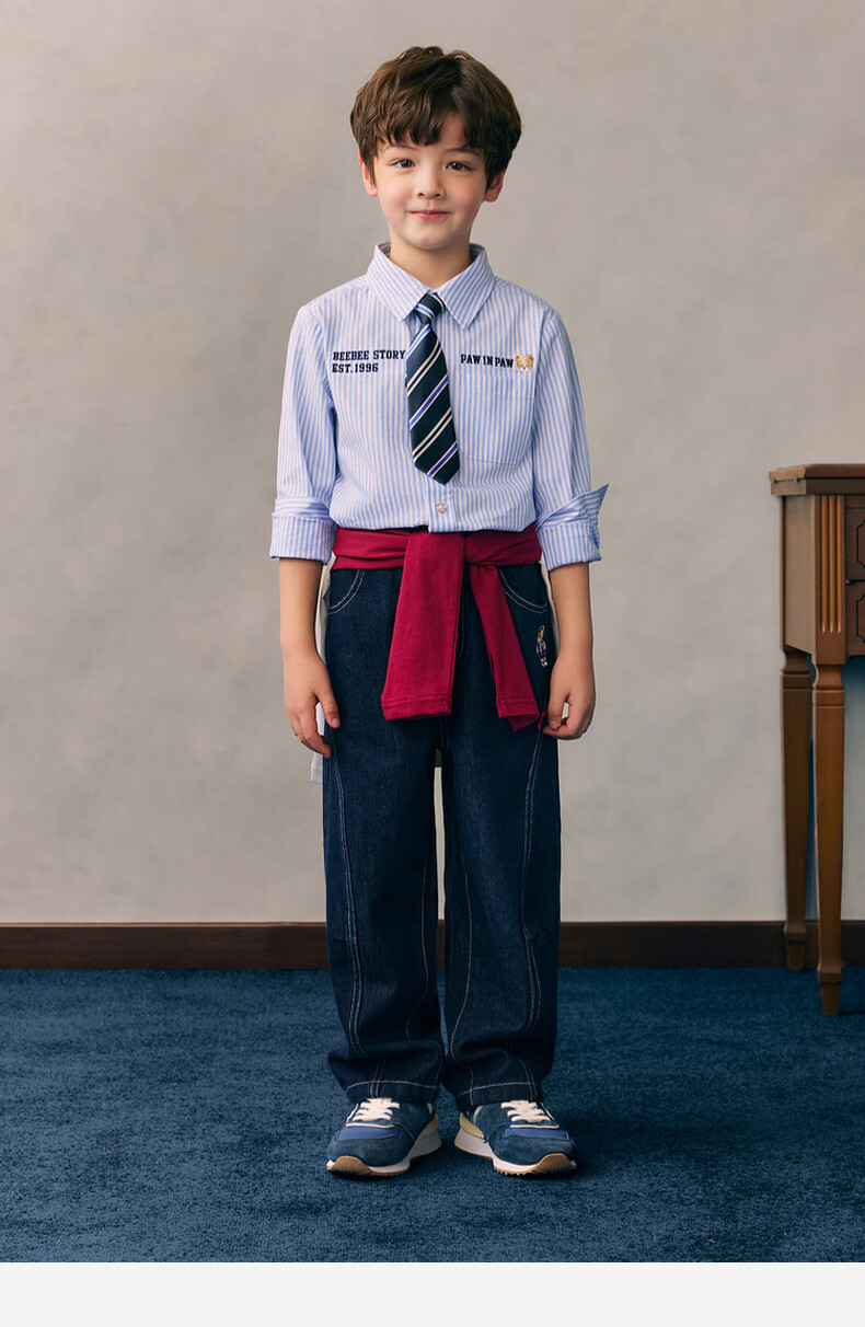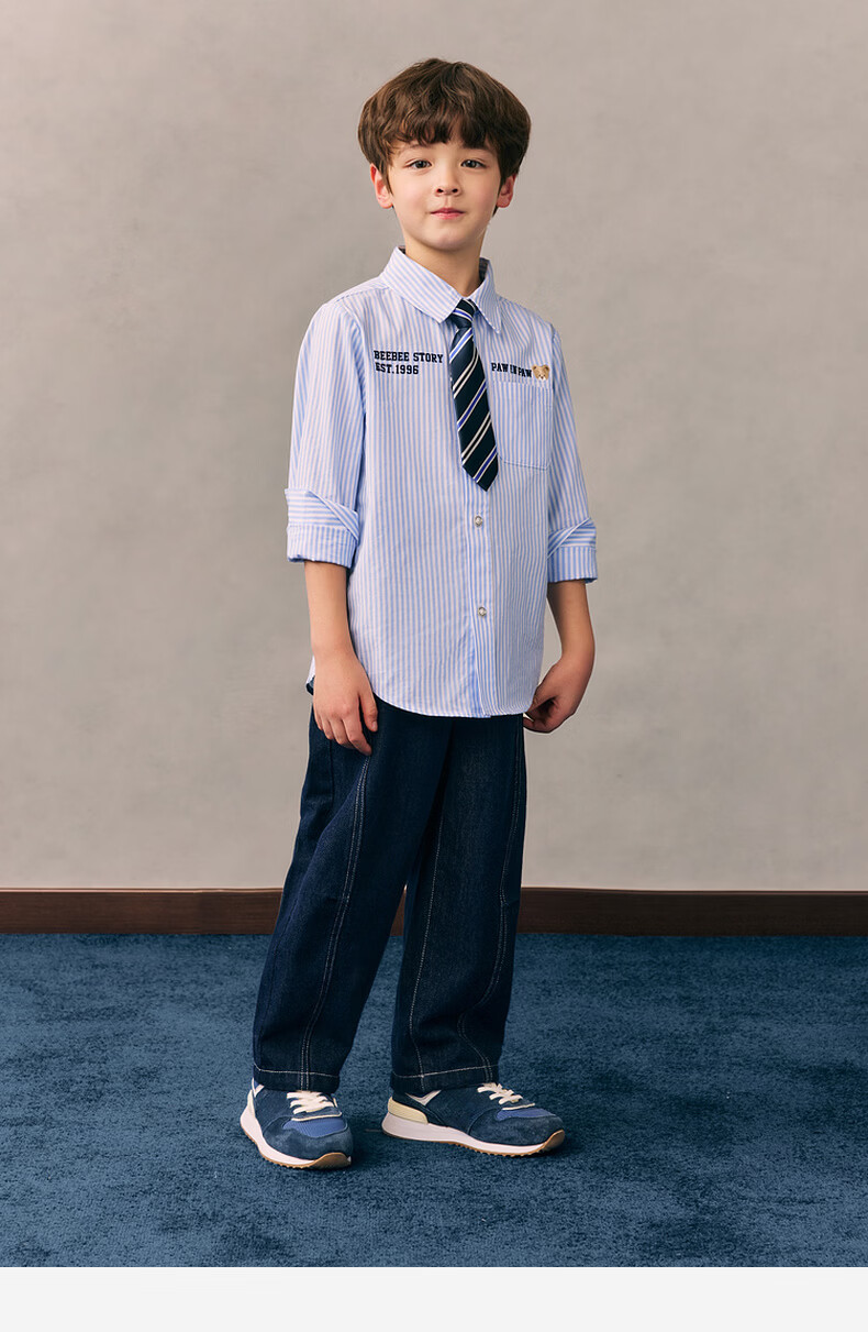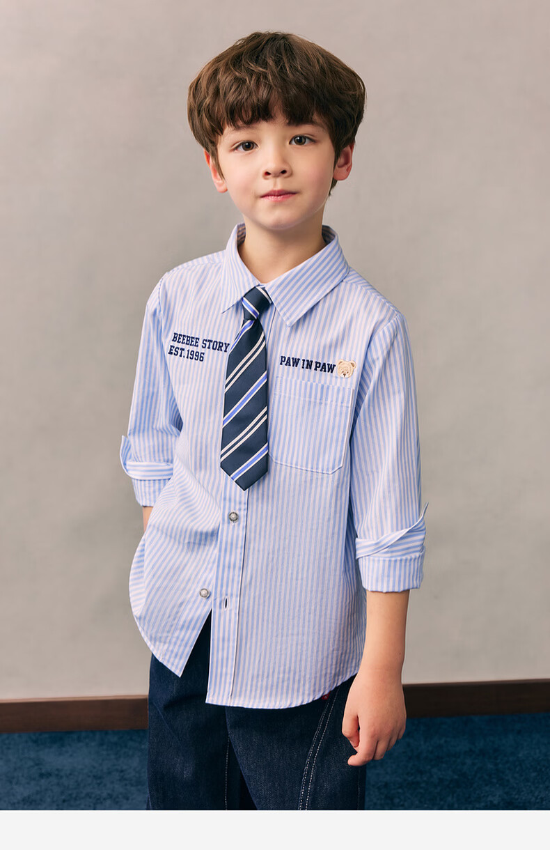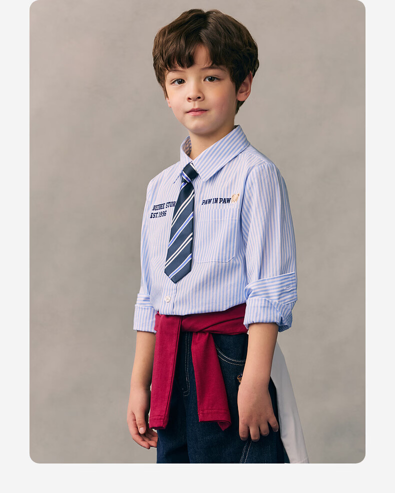 PawinPaw cartoon bear children's clothing 26 spring and summer new boys striped casual shirt