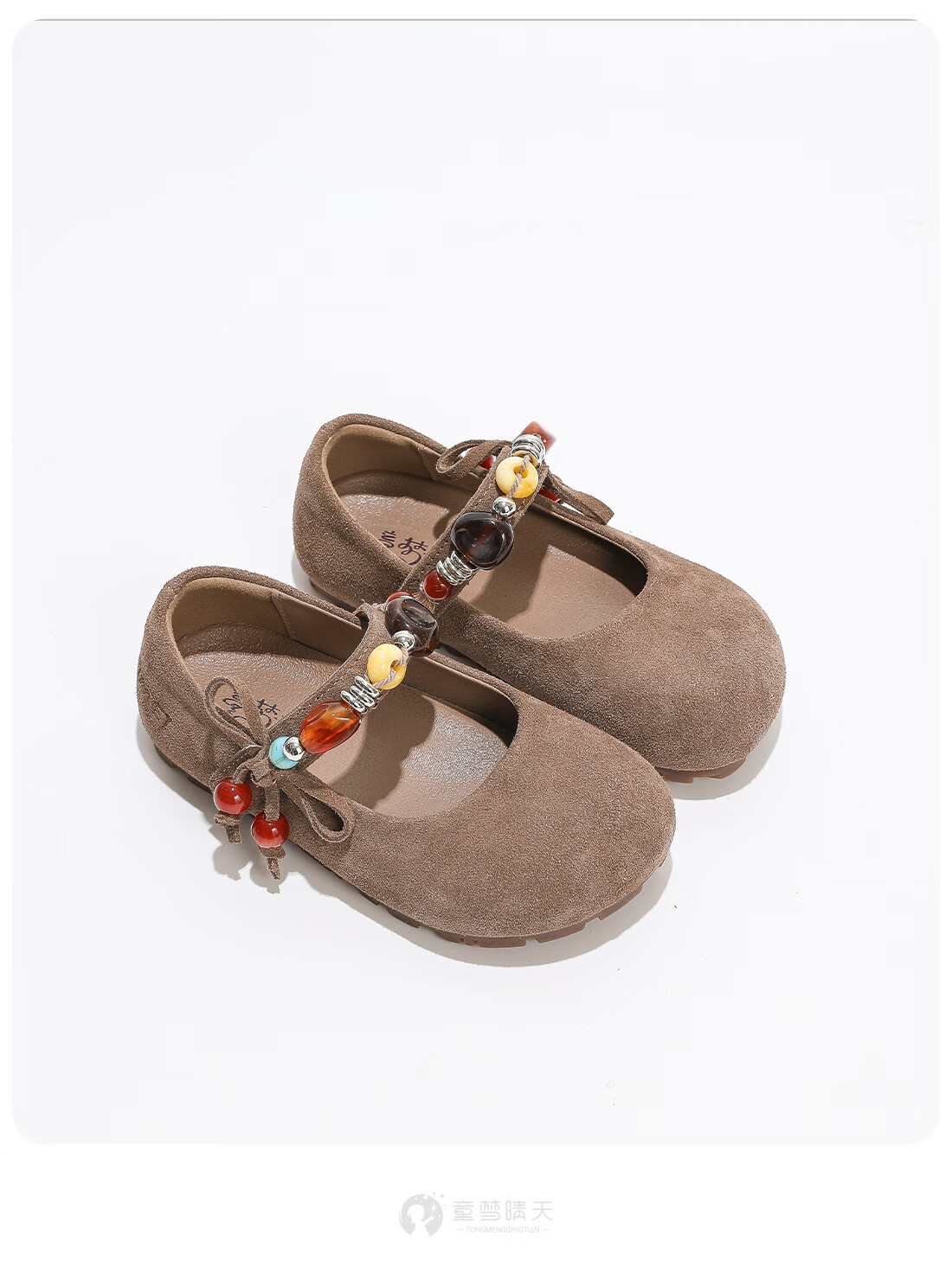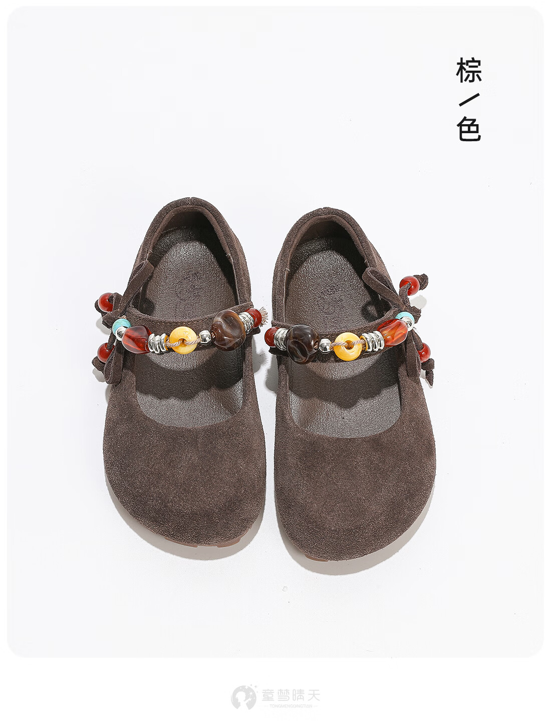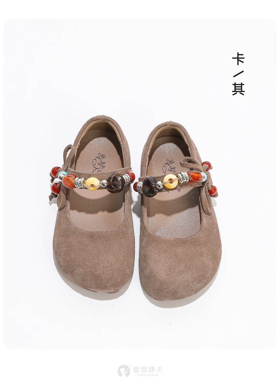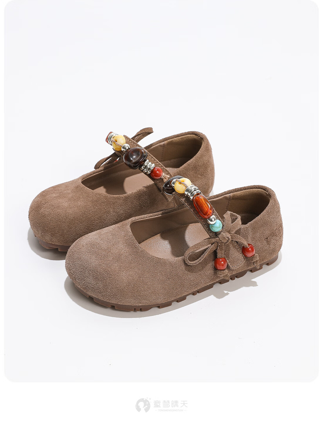 Tongmeng Sunny Girls Birkenstock Shoes 2026 Spring New Children's Shoes Girls Little Princess Leather Shoes Peas Shoes Soft Sole Shoes