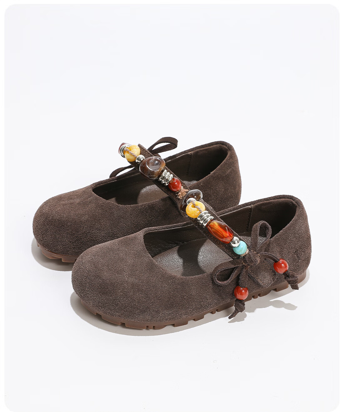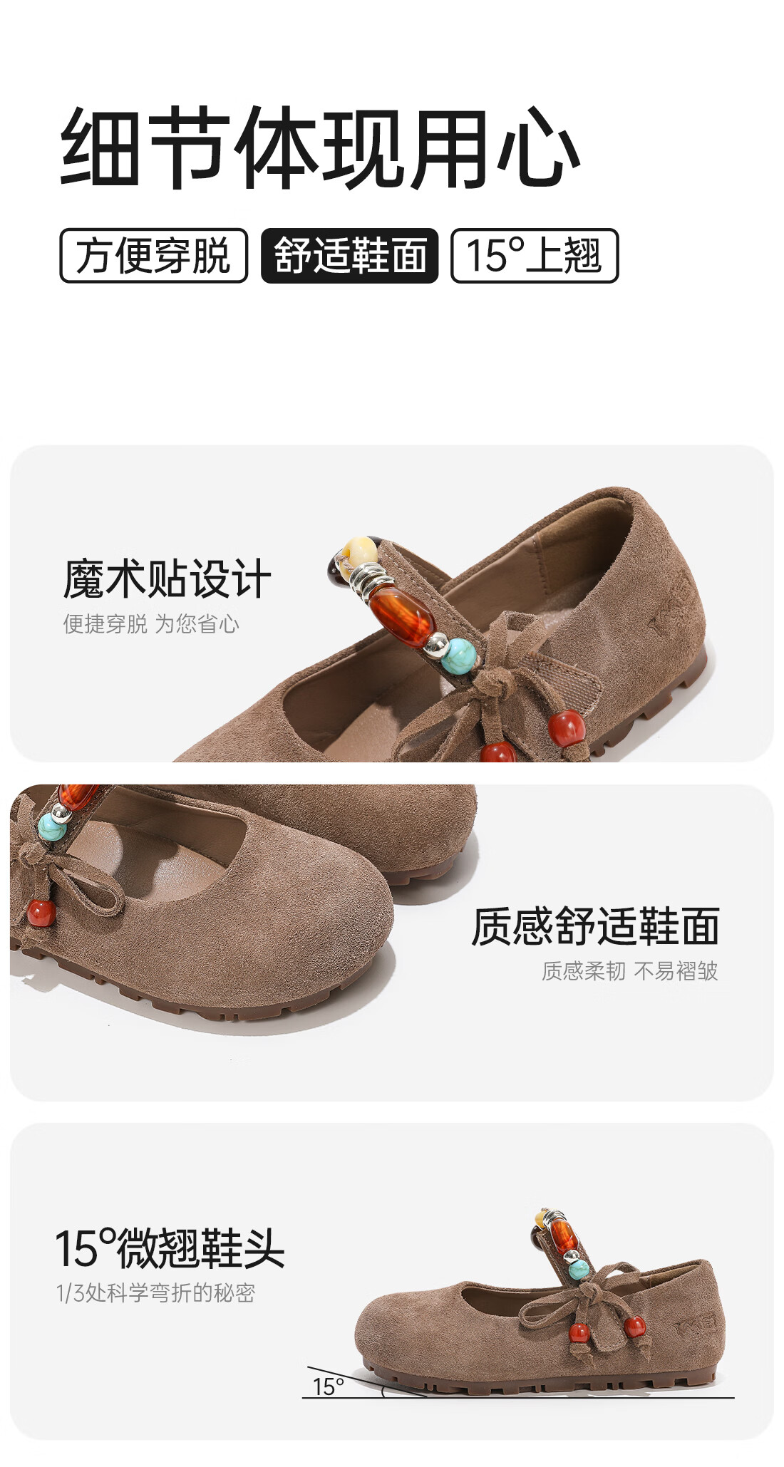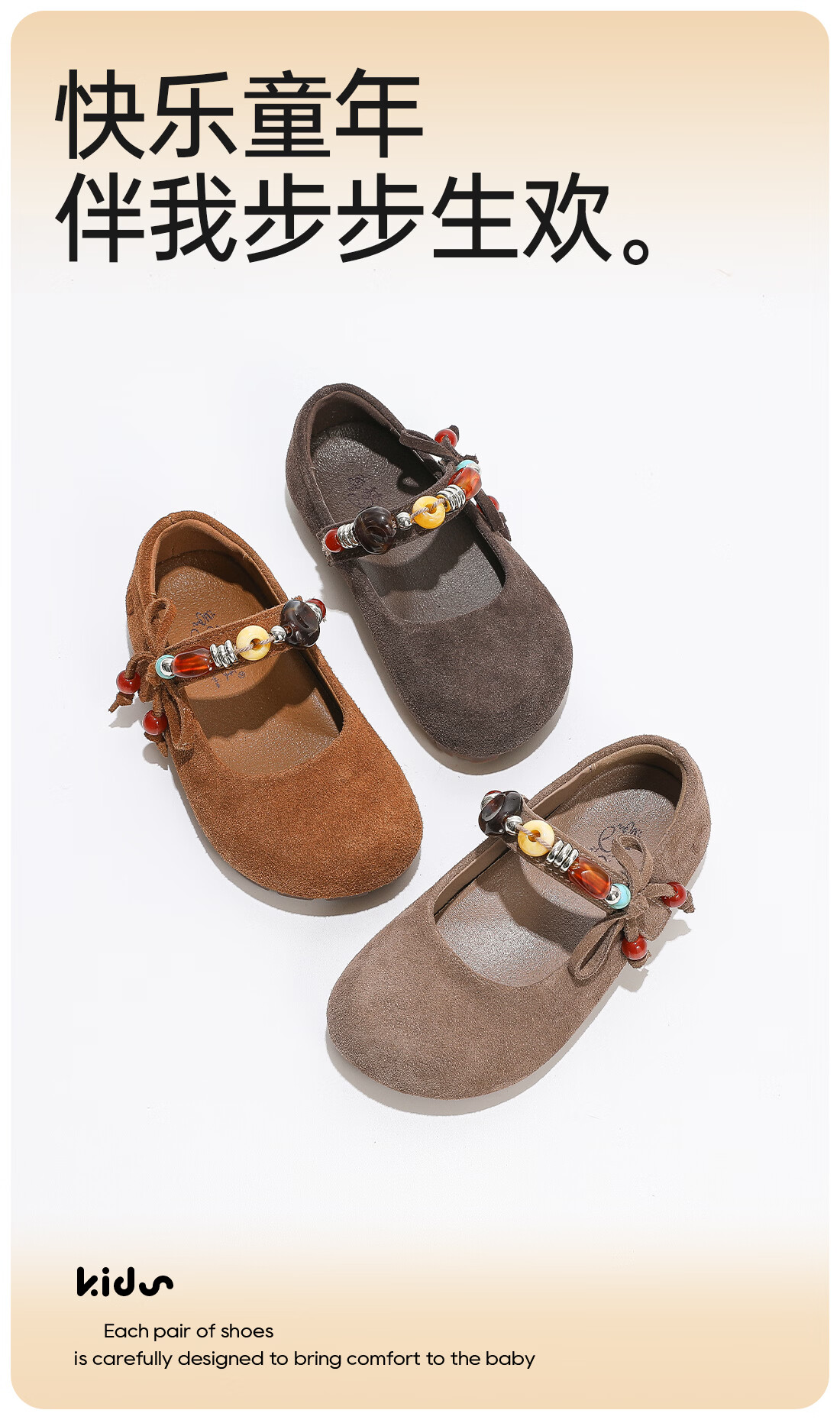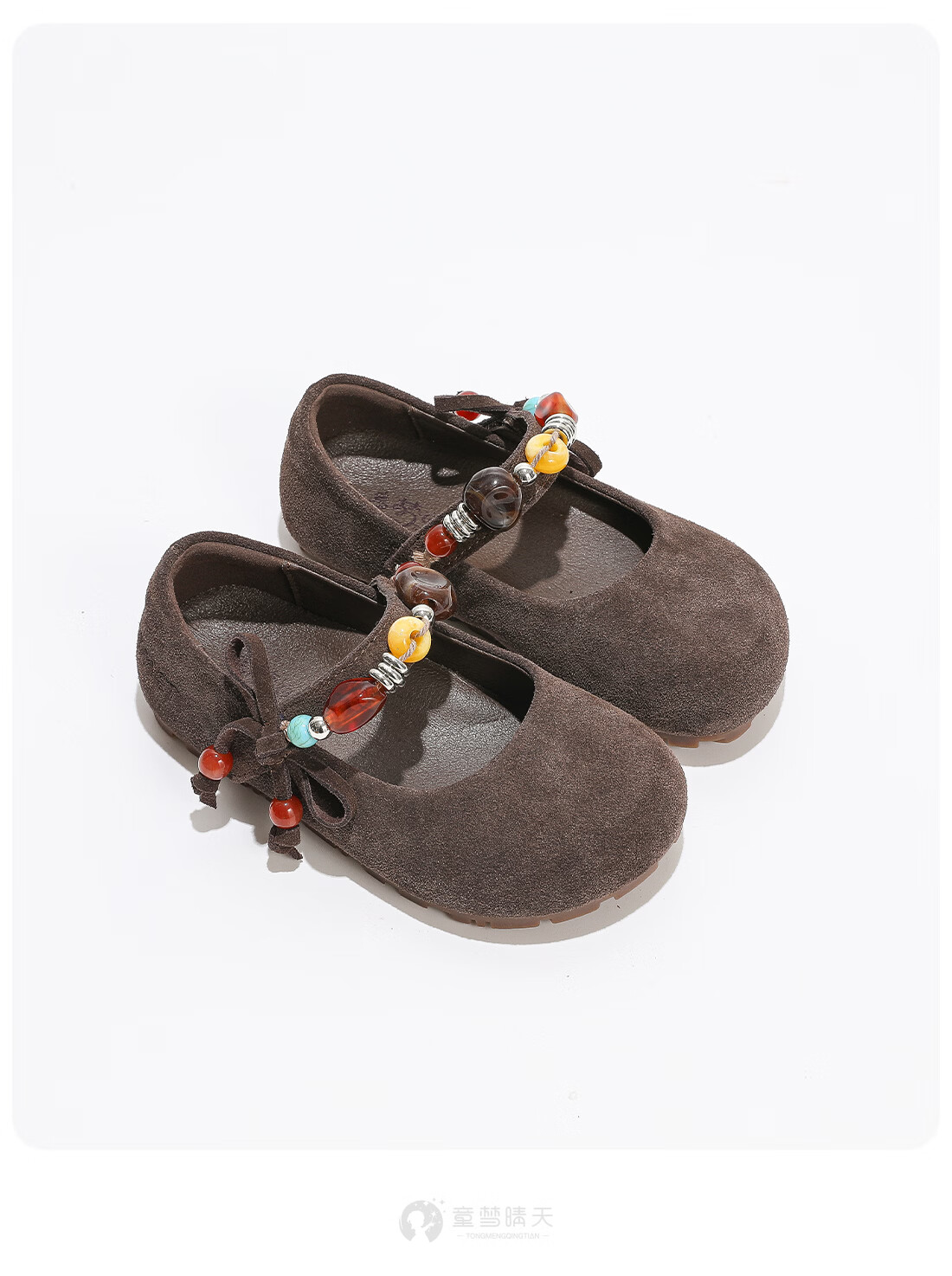 Tongmeng Sunny Girls Birkenstock Shoes 2026 Spring New Children's Shoes Girls Little Princess Leather Shoes Peas Shoes Soft Sole Shoes