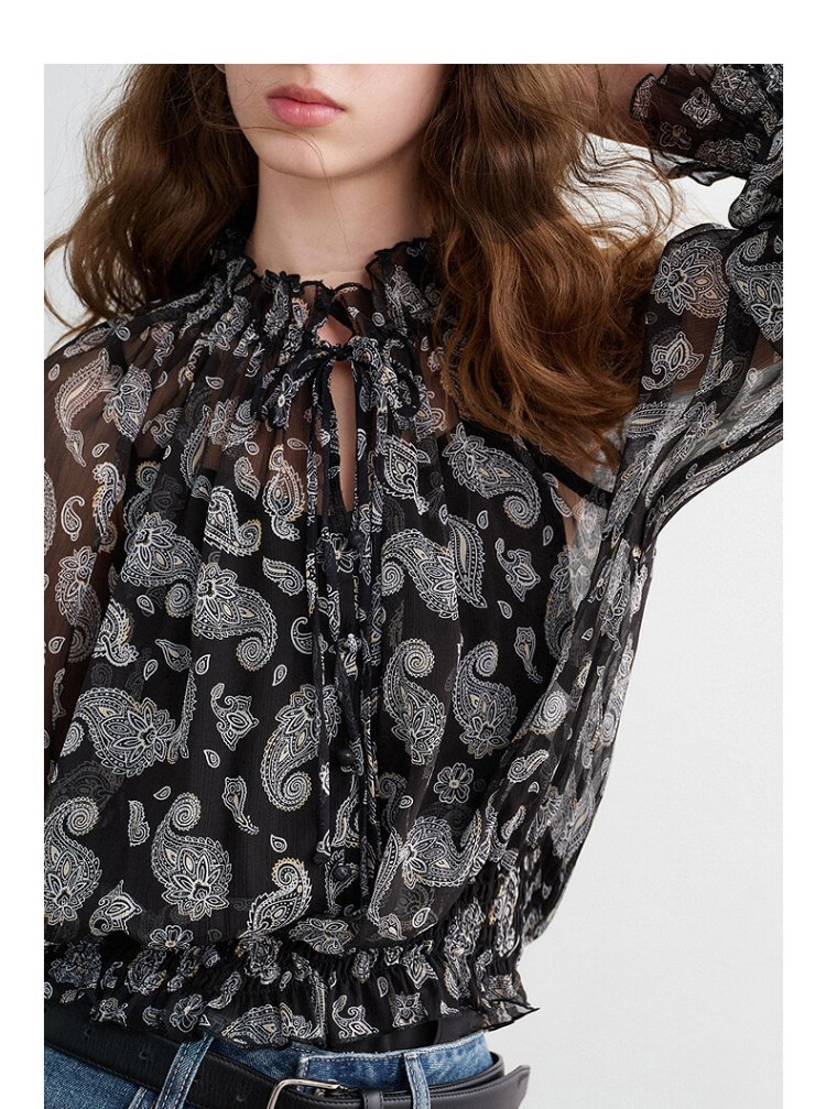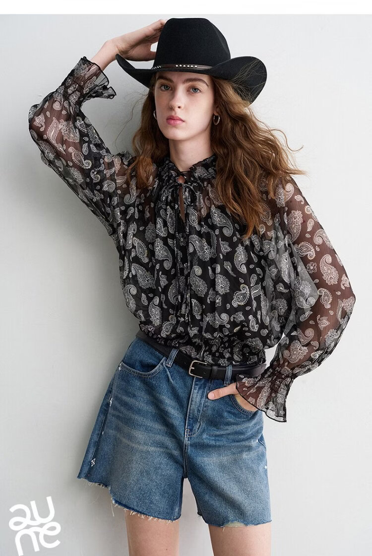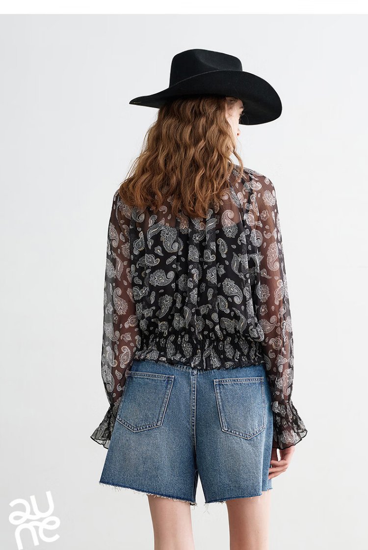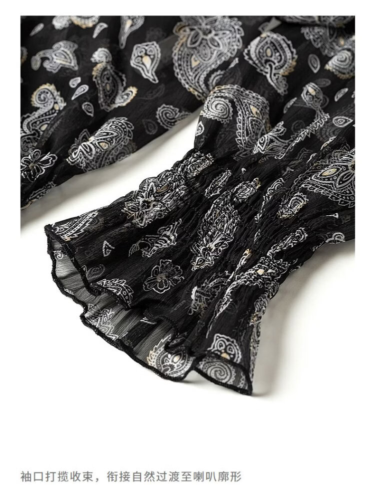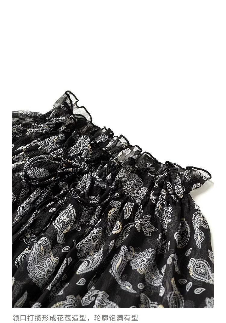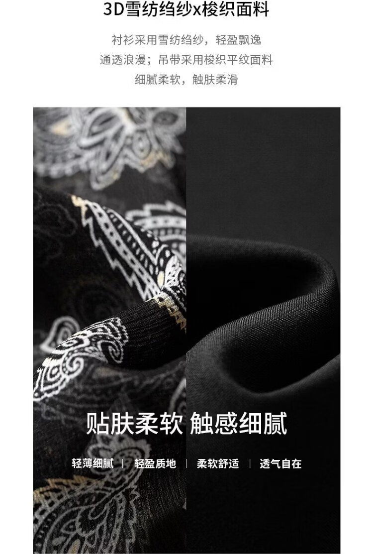 Chuyu 2026 Spring New Ximia Lanlan Lightweight Chiffon Printed Shirt Suspender Two-piece Set Black Bottom Print XL