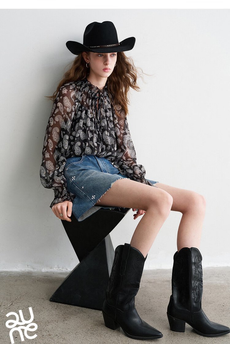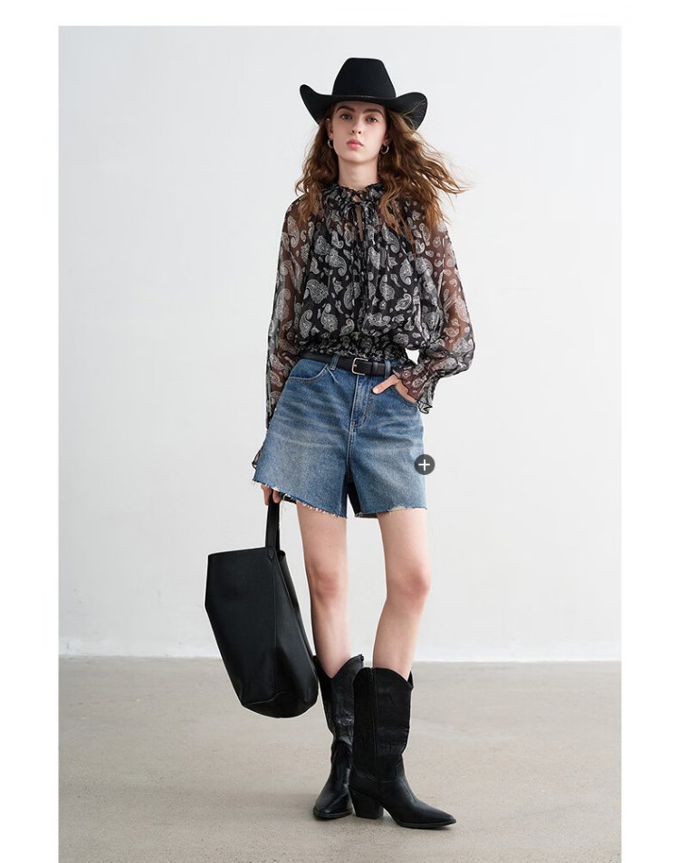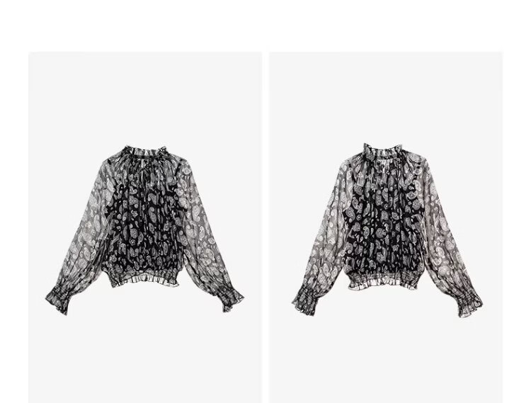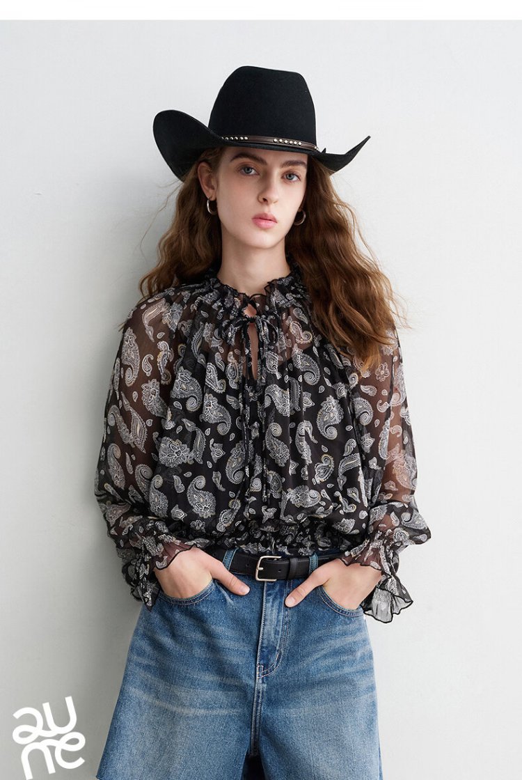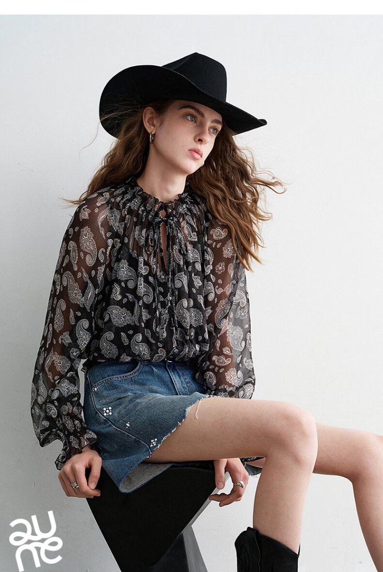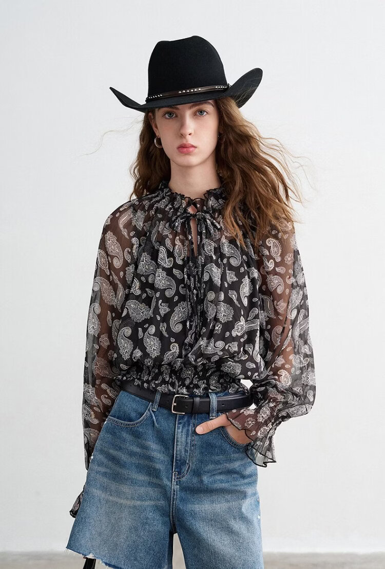 Chuyu 2026 Spring New Ximia Lanlan Lightweight Chiffon Printed Shirt Suspender Two-piece Set Black Bottom Print XL
