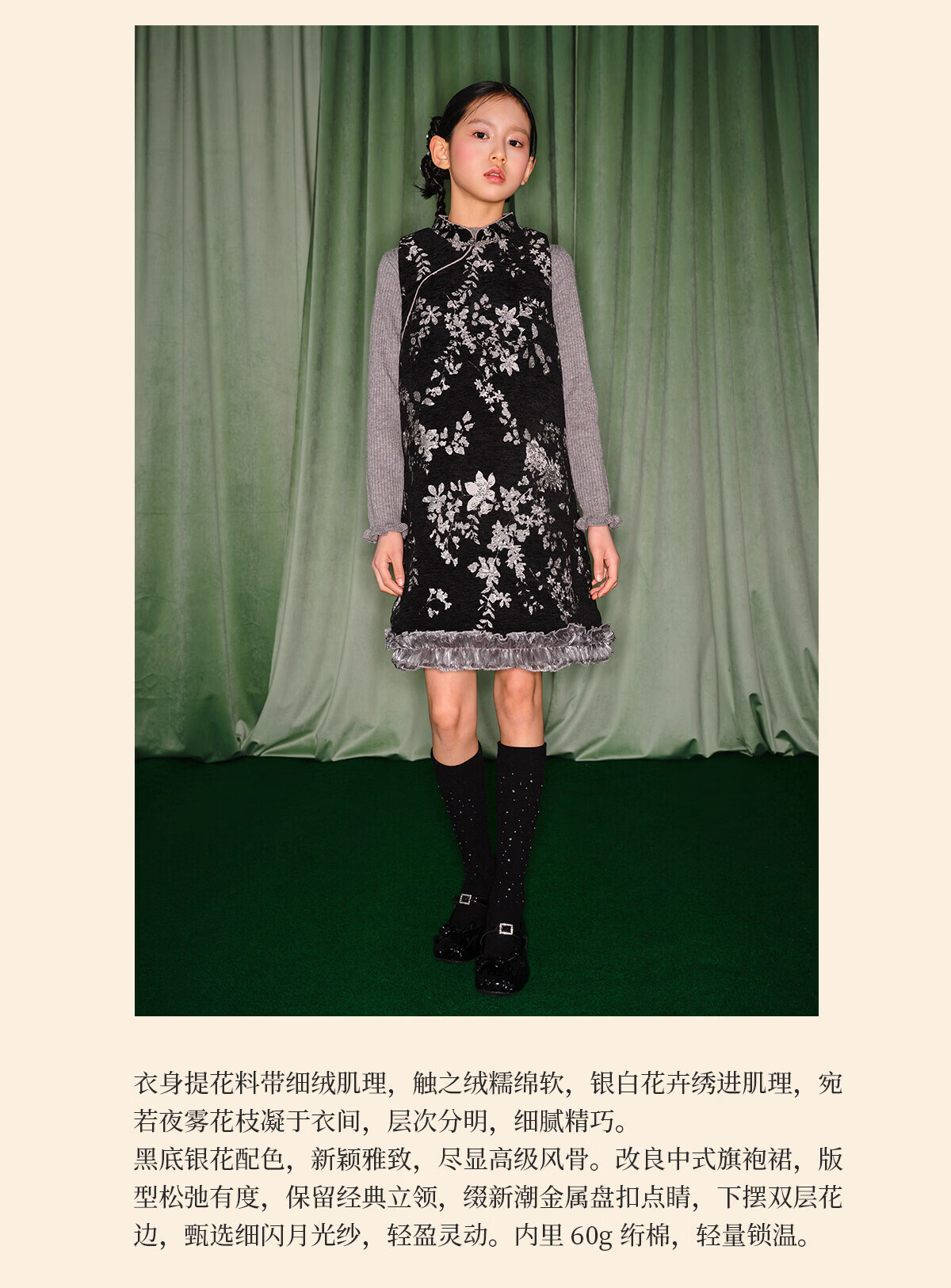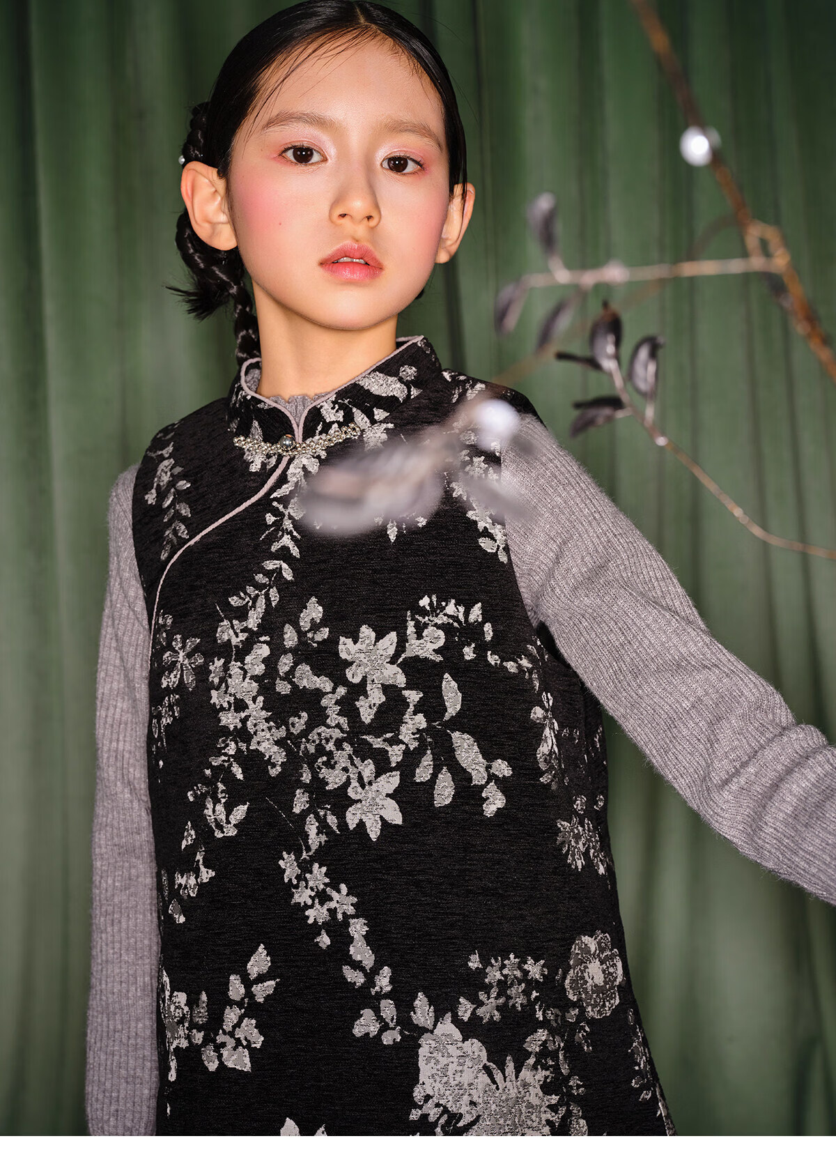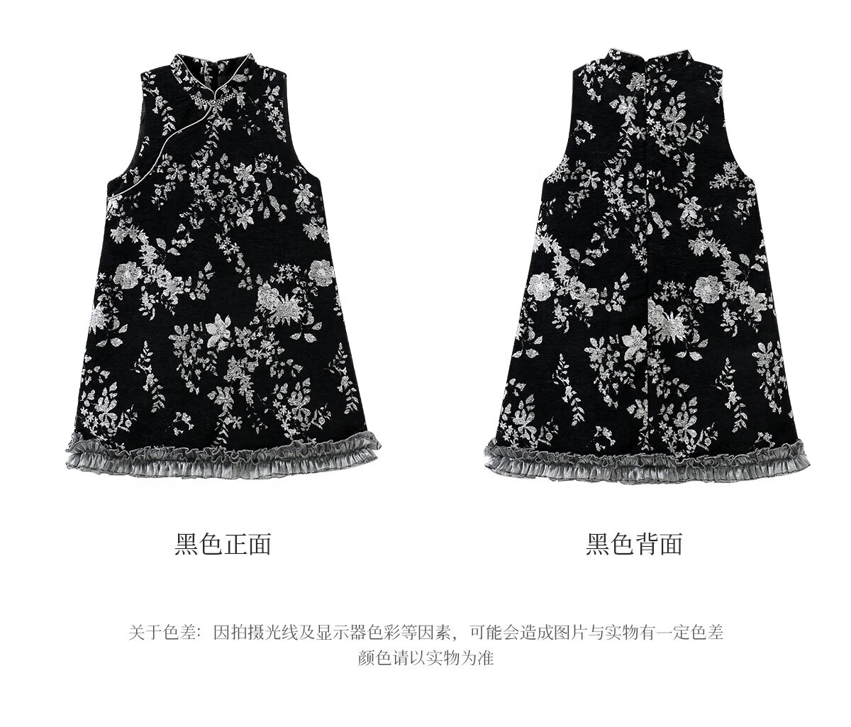 Taoding Girls Dress Autumn and Winter New Extremely Rich Floral Vest Dress Older Children New Chinese Style Cheongsam New Year's Wear