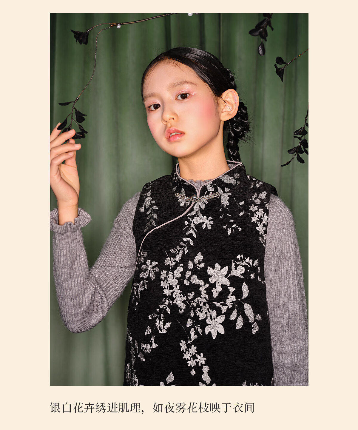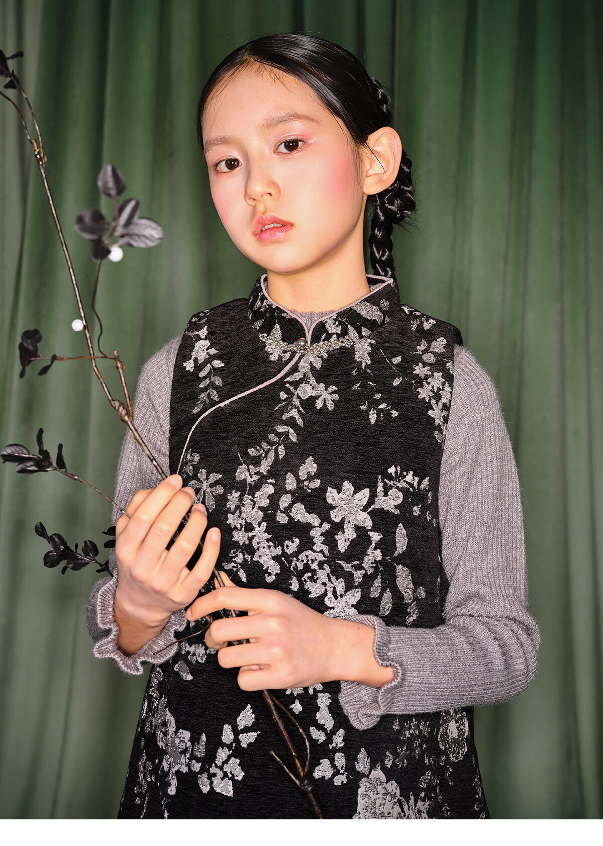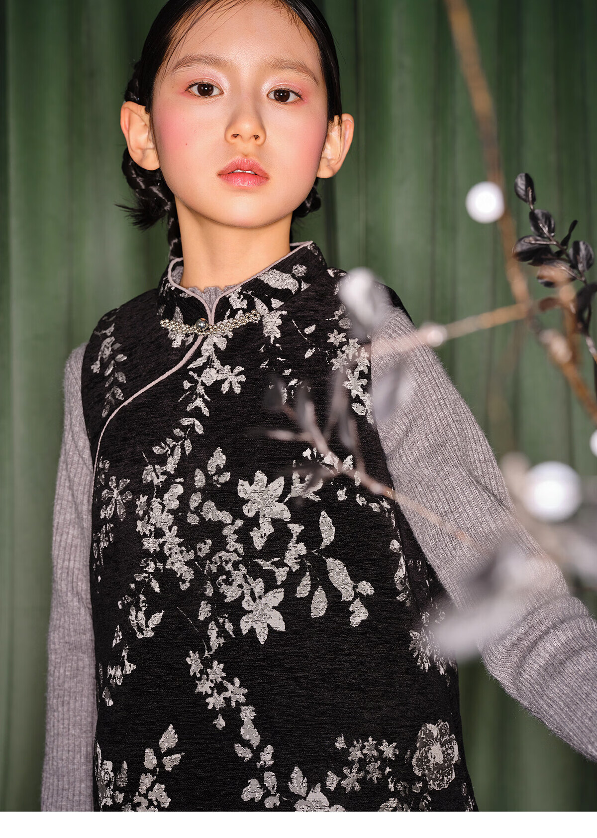 Taoding Girls Dress Autumn and Winter New Extremely Rich Floral Vest Dress Older Children New Chinese Style Cheongsam New Year's Wear