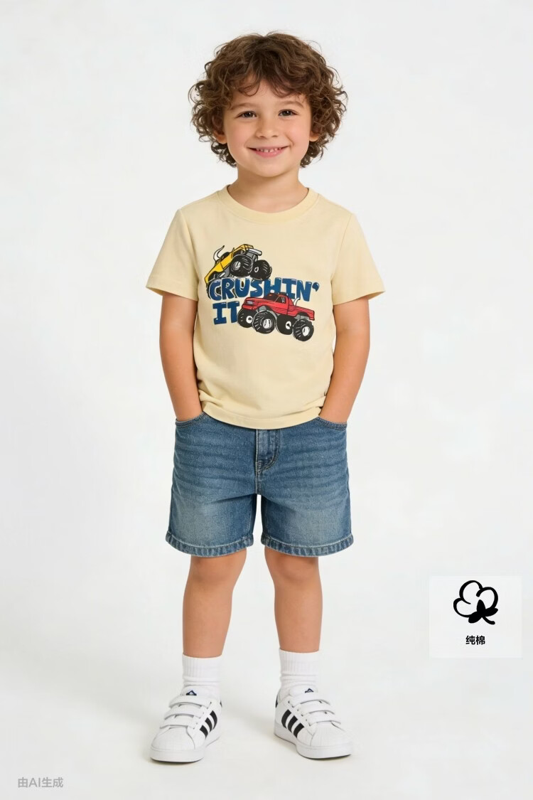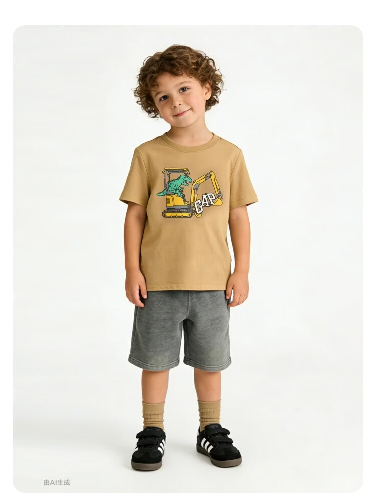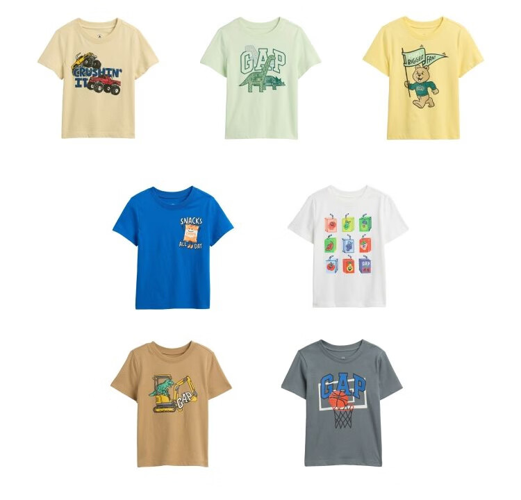 GAP Boys 2026 Spring New Pure Cotton Creative Printed Short-Sleeved T-shirt Children's Clothing US Version 870066