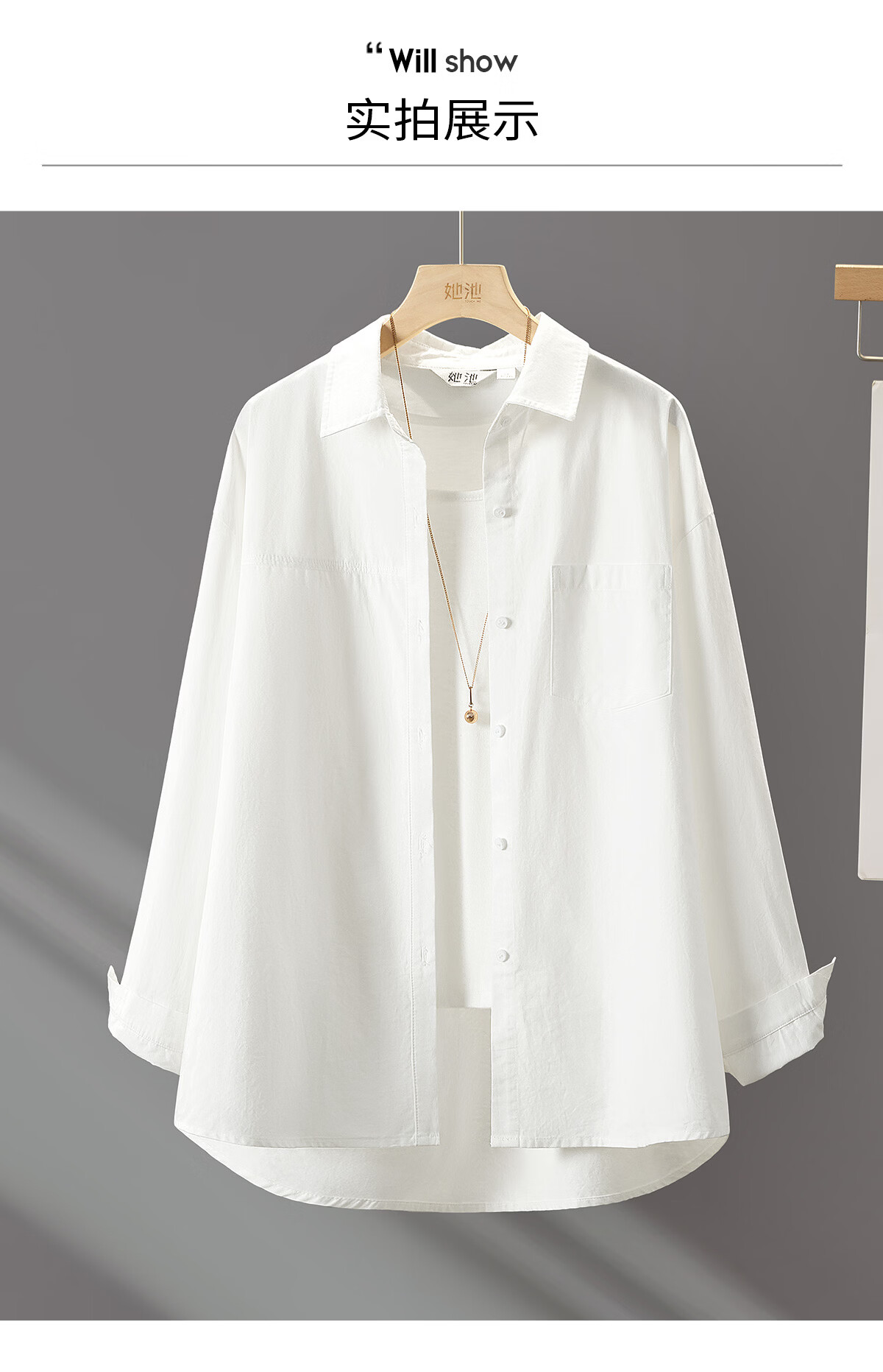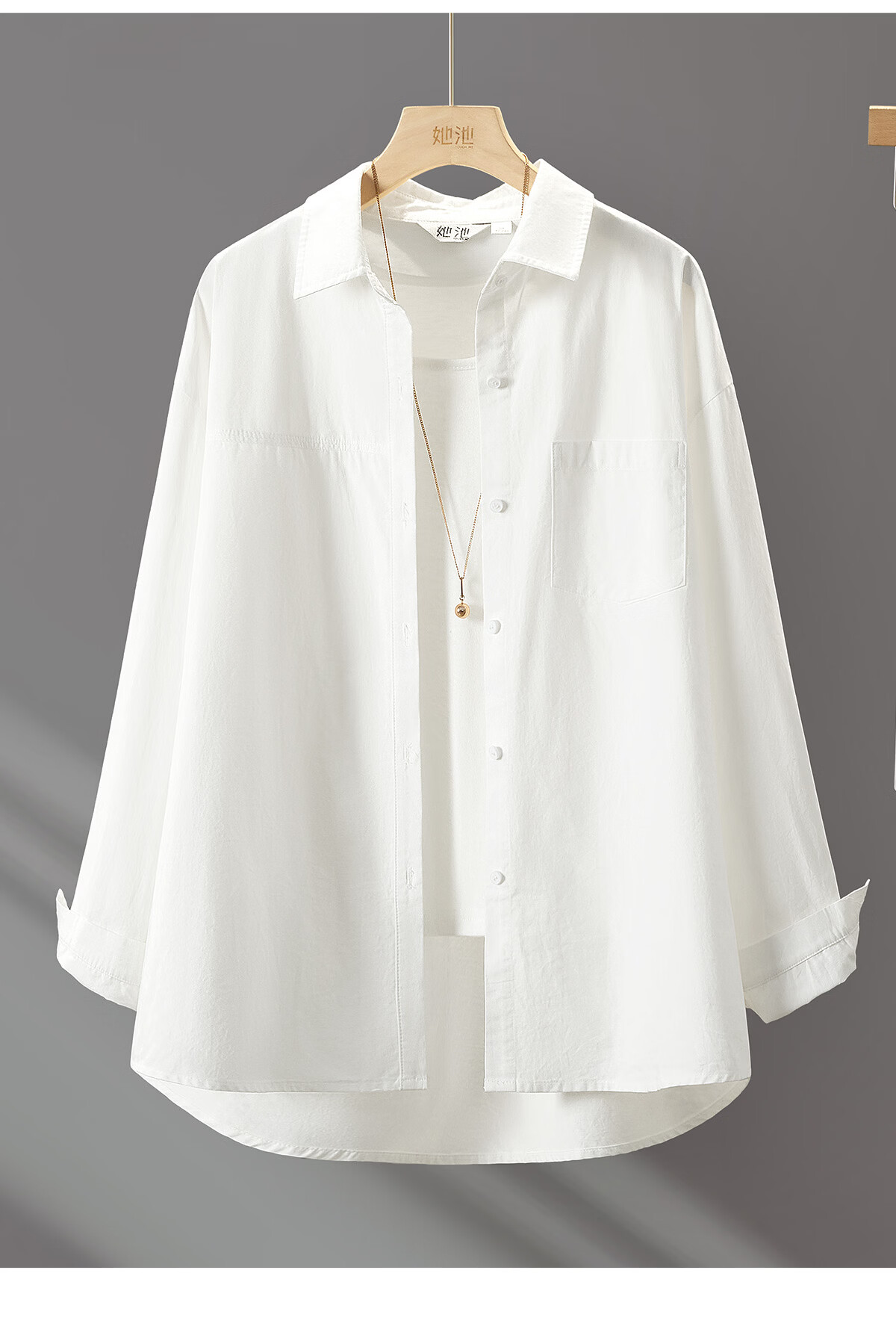 Shechi classic solid color lapel white shirt women's 2026 spring new style inner wear long-sleeved shirt