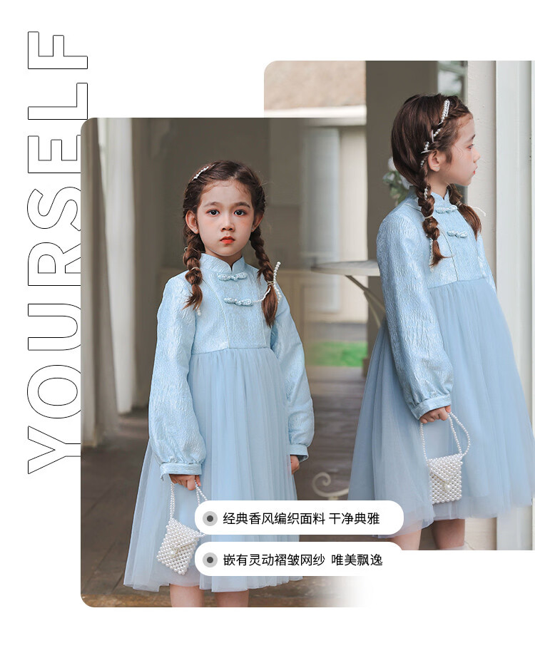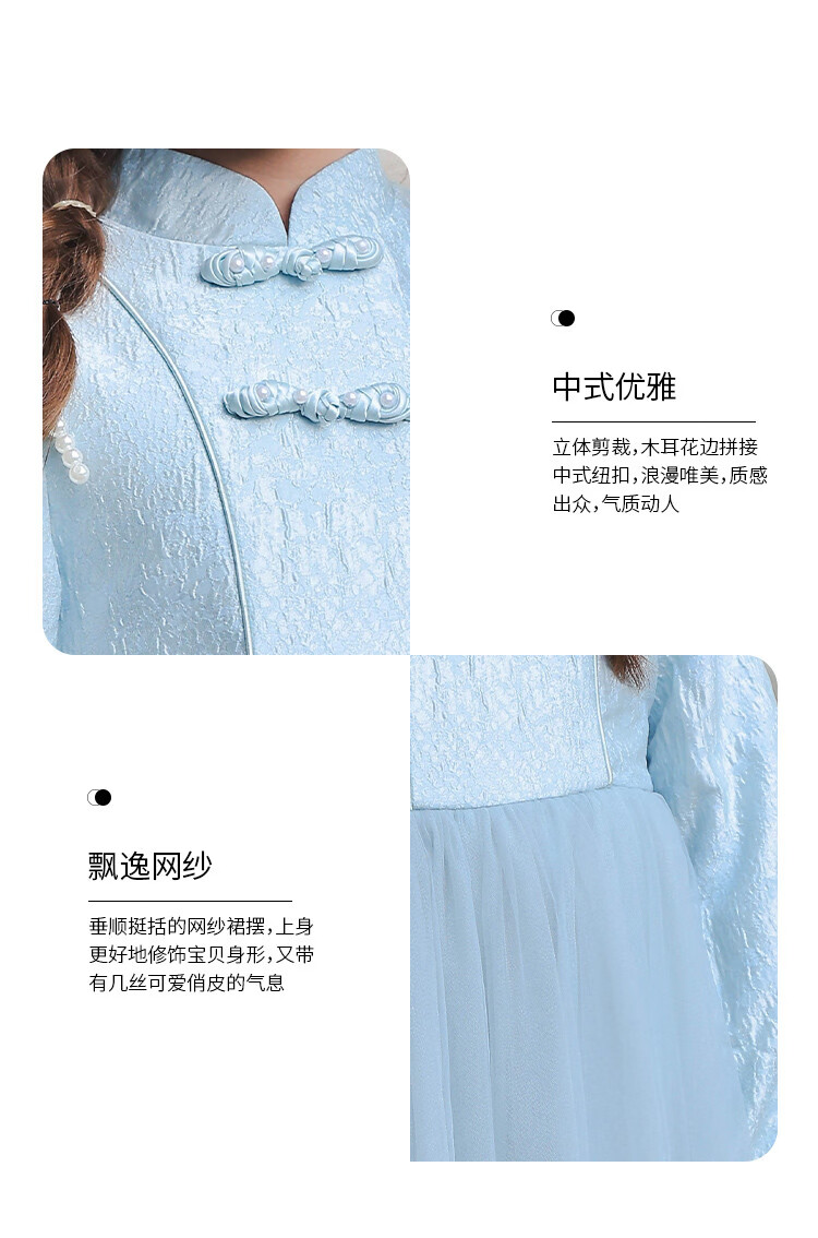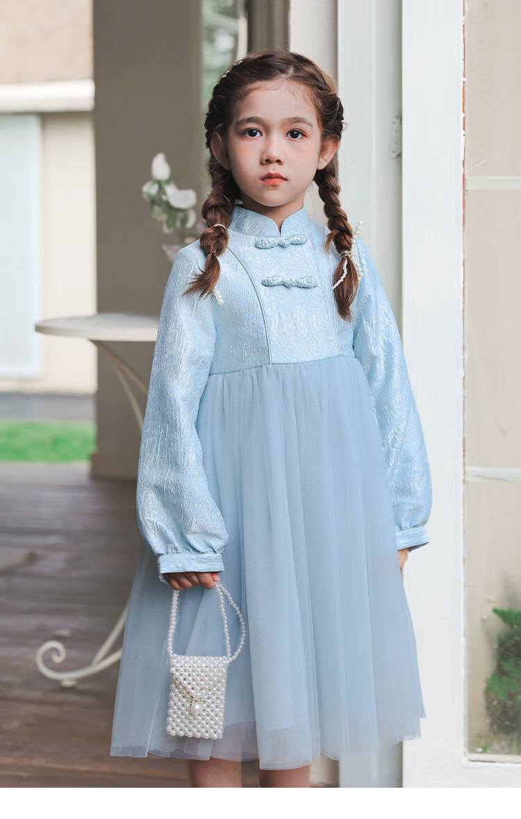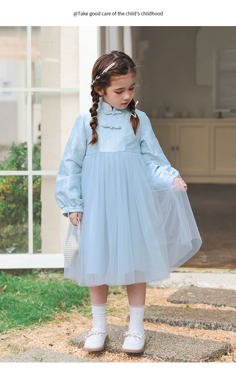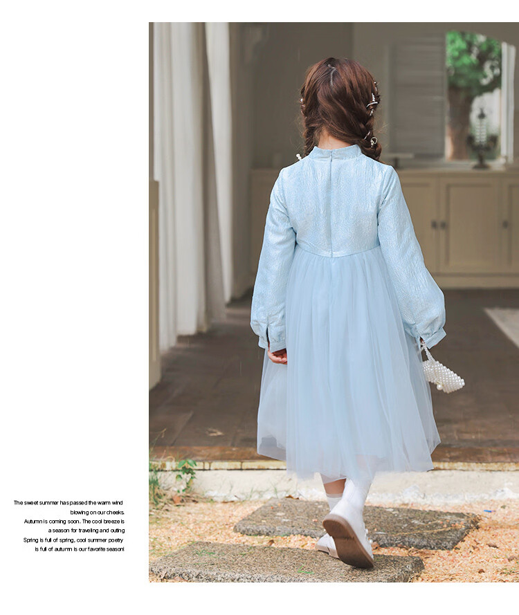 Huatian Cai's new Chinese style girls' autumn dress spring and autumn girls' jacquard mesh skirt medium and large children's fashionable autumn princess dress
