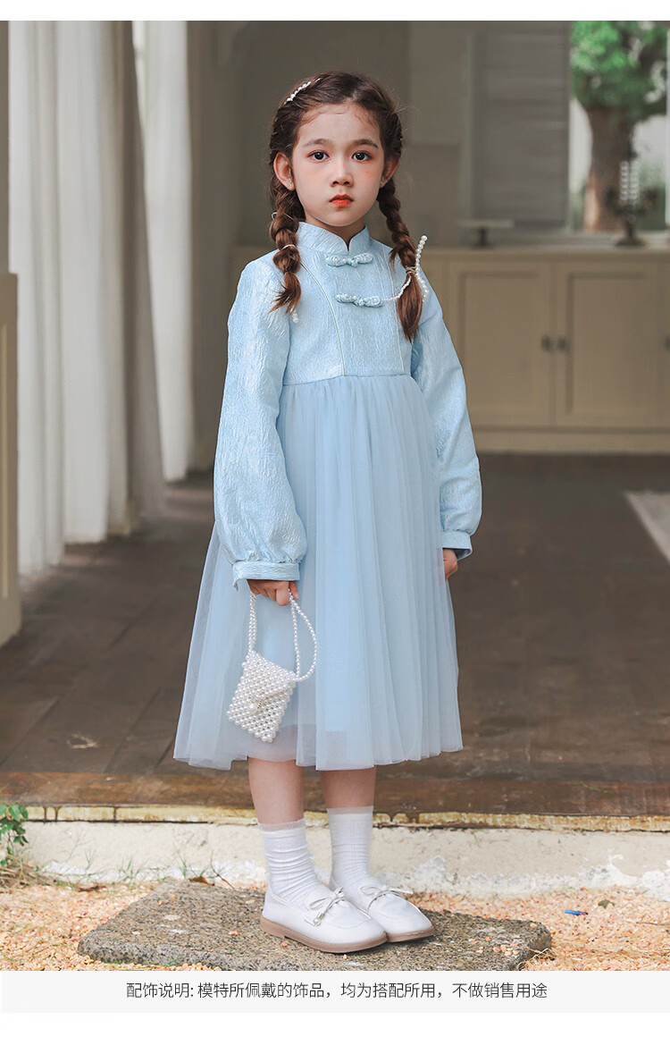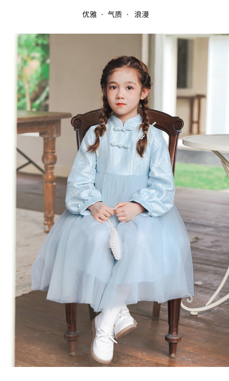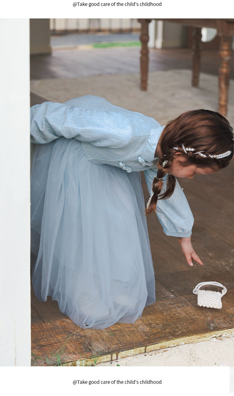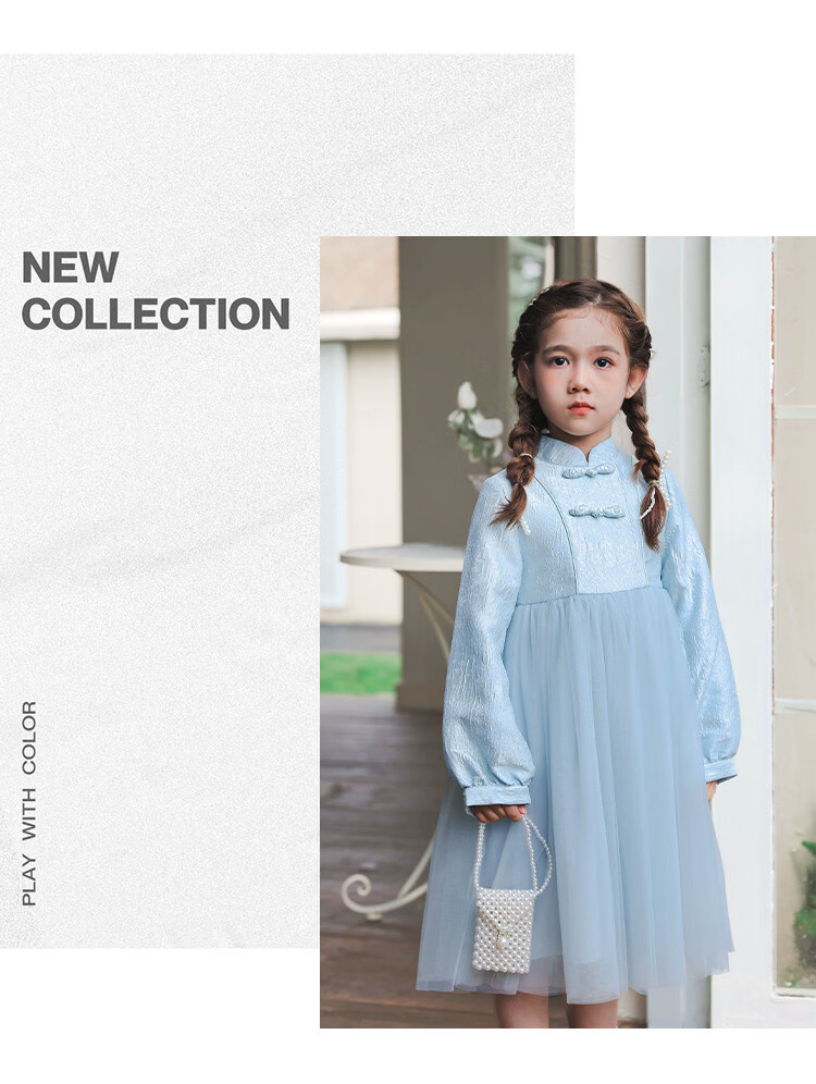 Huatian Cai's new Chinese style girls' autumn dress spring and autumn girls' jacquard mesh skirt medium and large children's fashionable autumn princess dress
