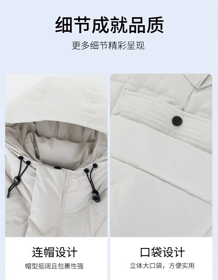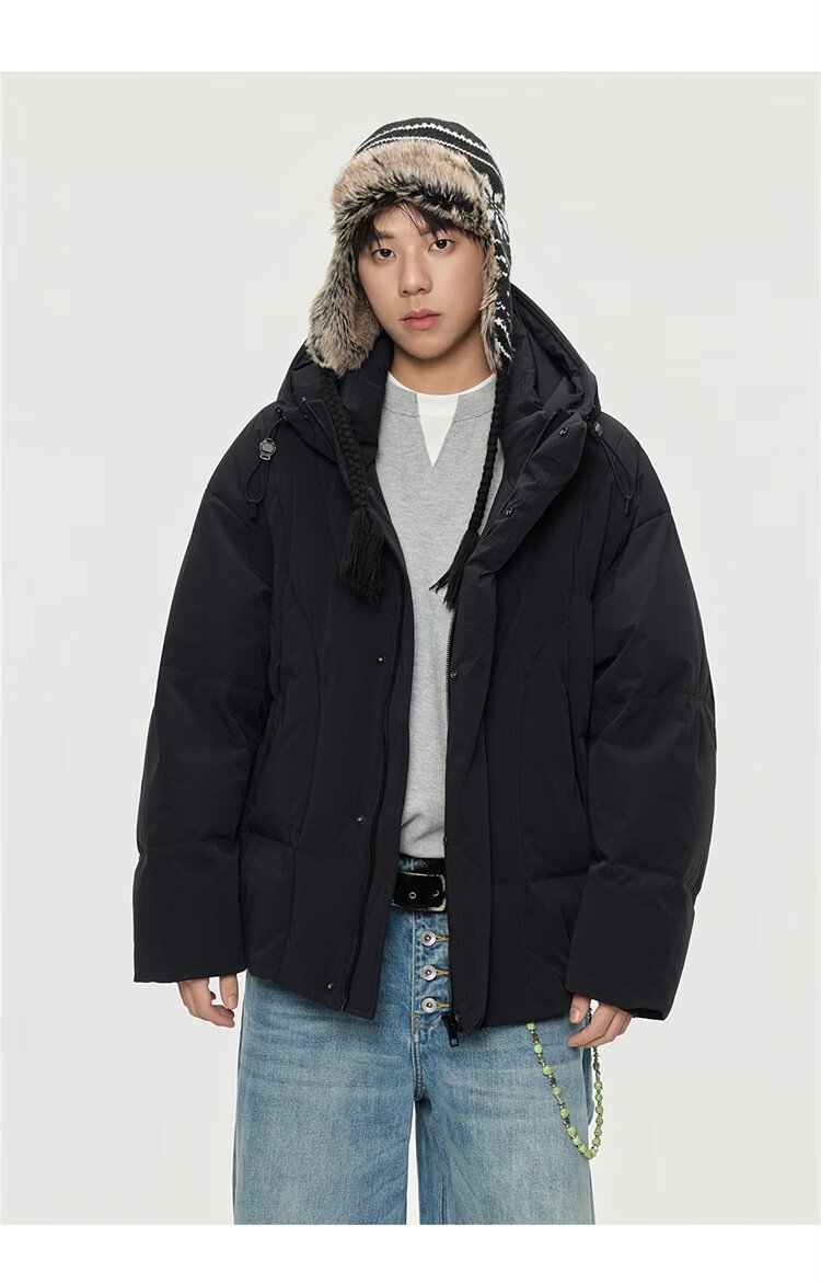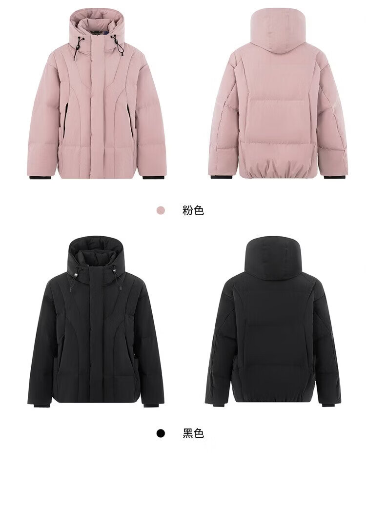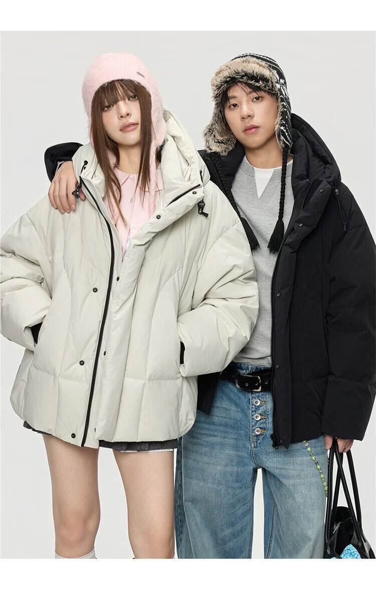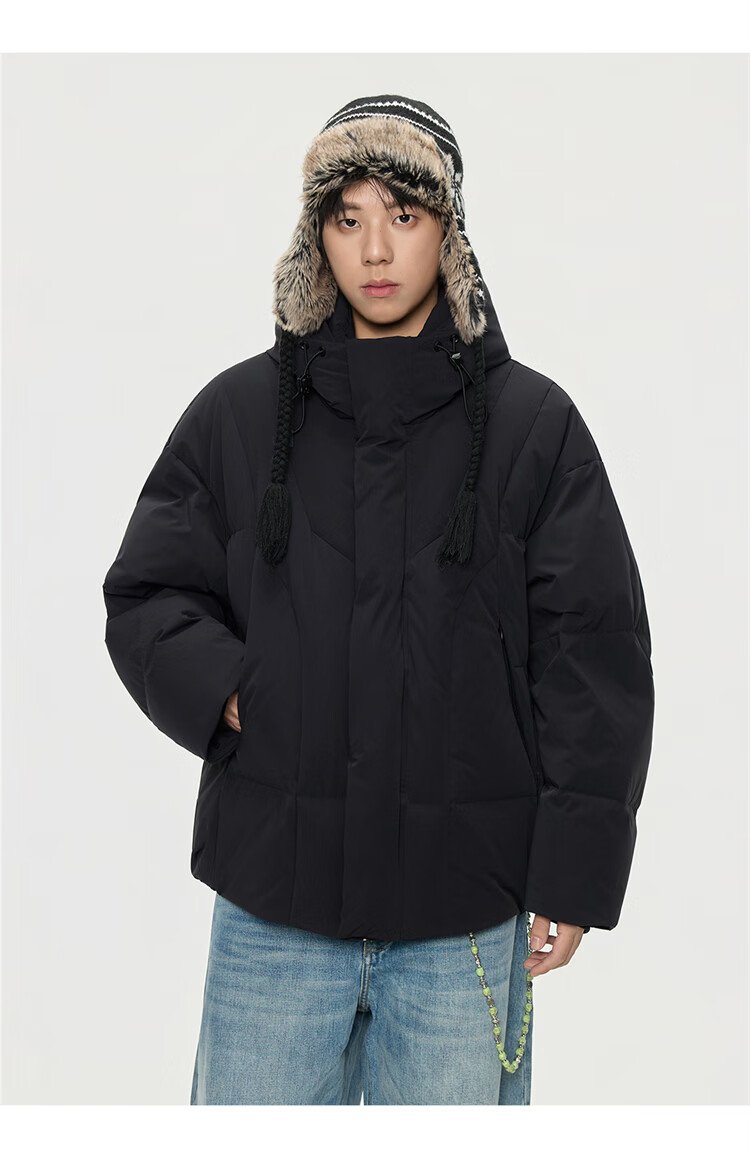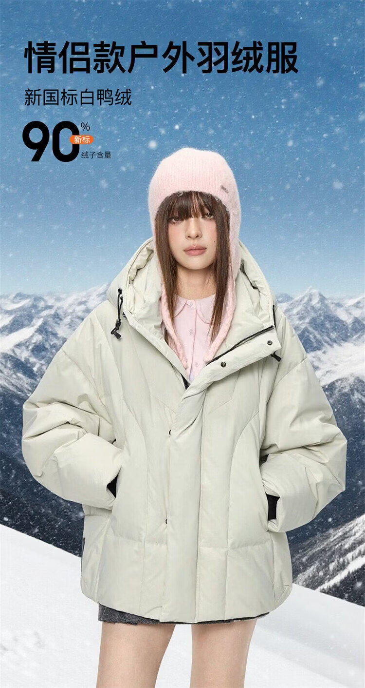 GROUND ZERO shopping mall same style high filling capacity 90 white duck down couple style hooded down jacket black L
