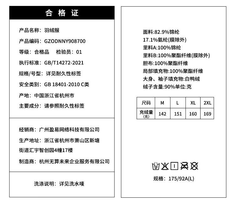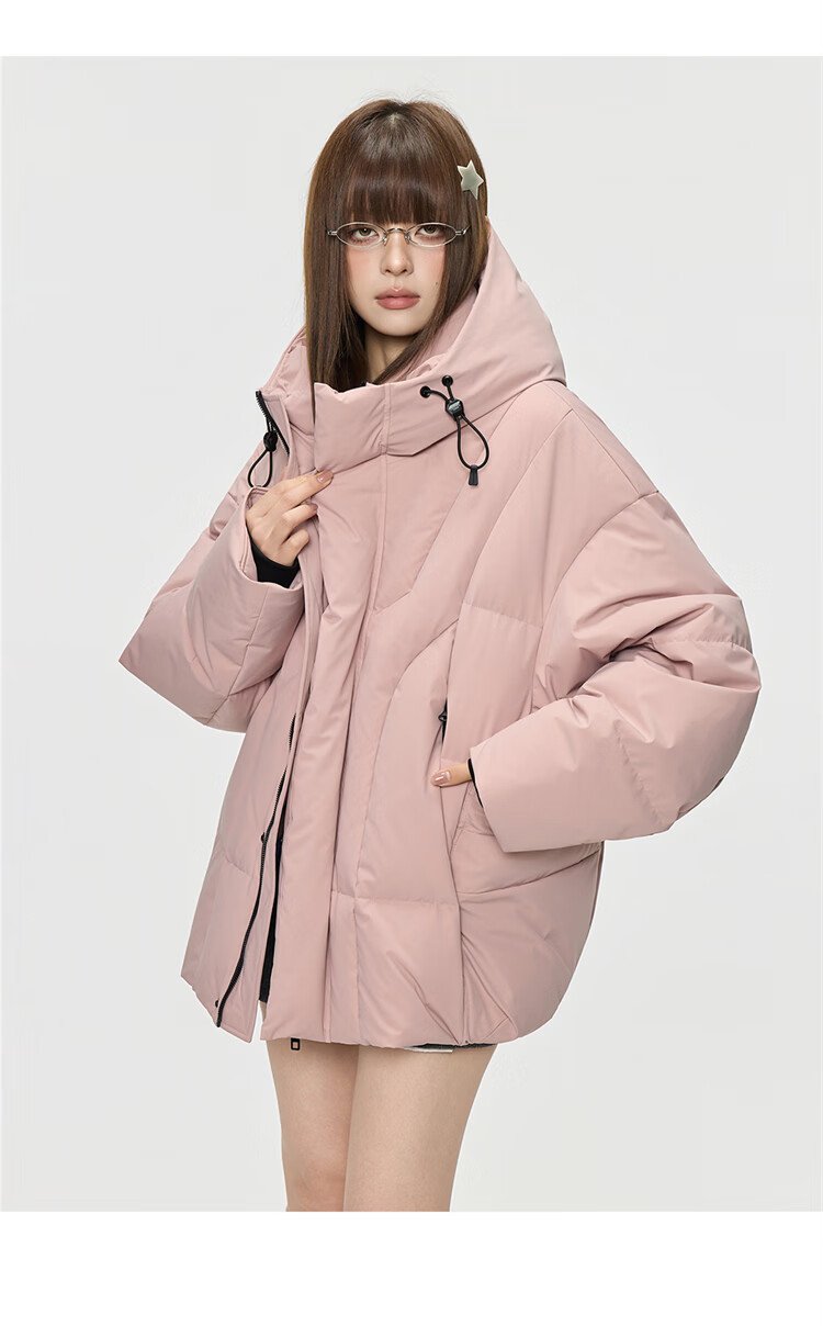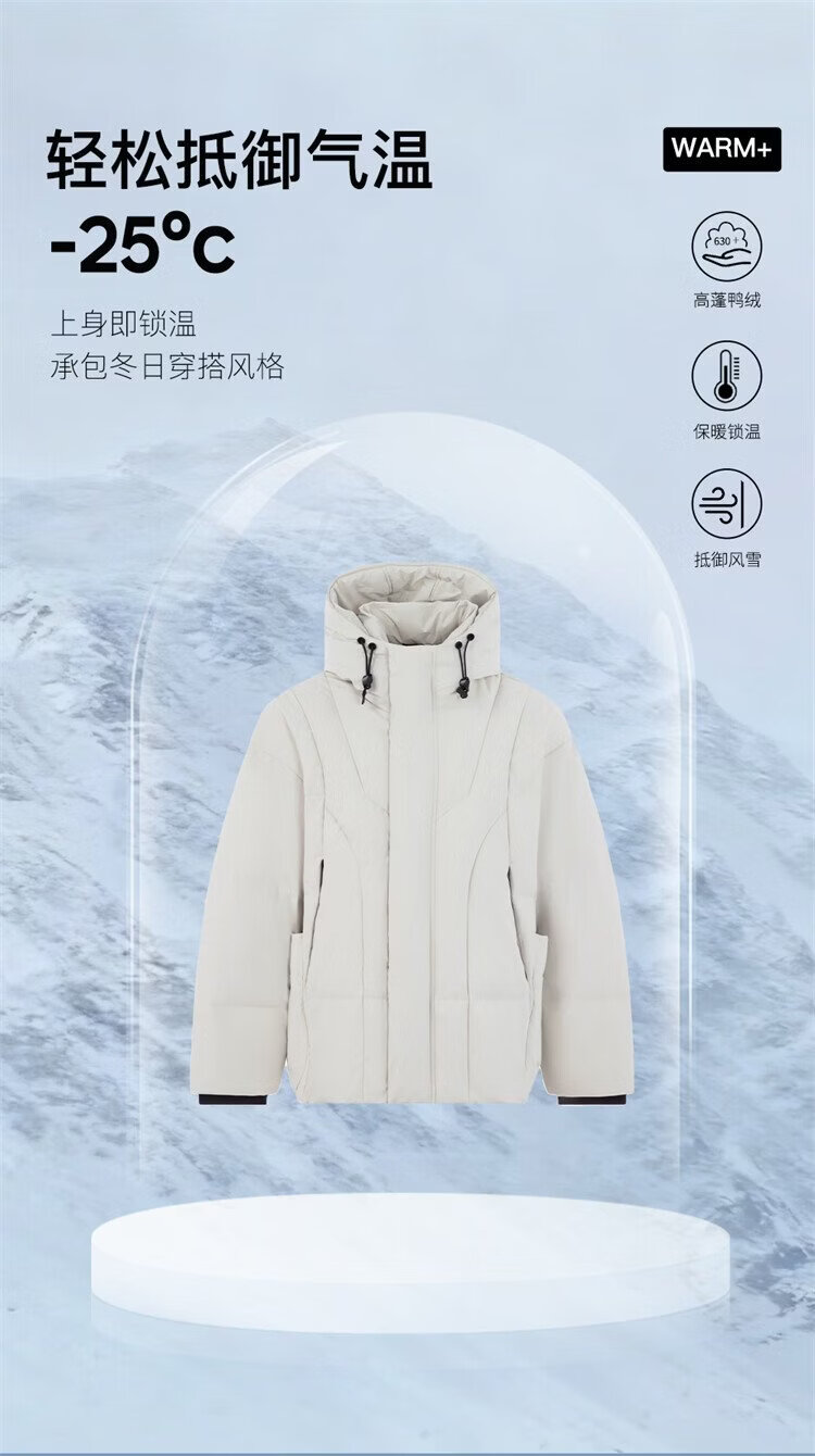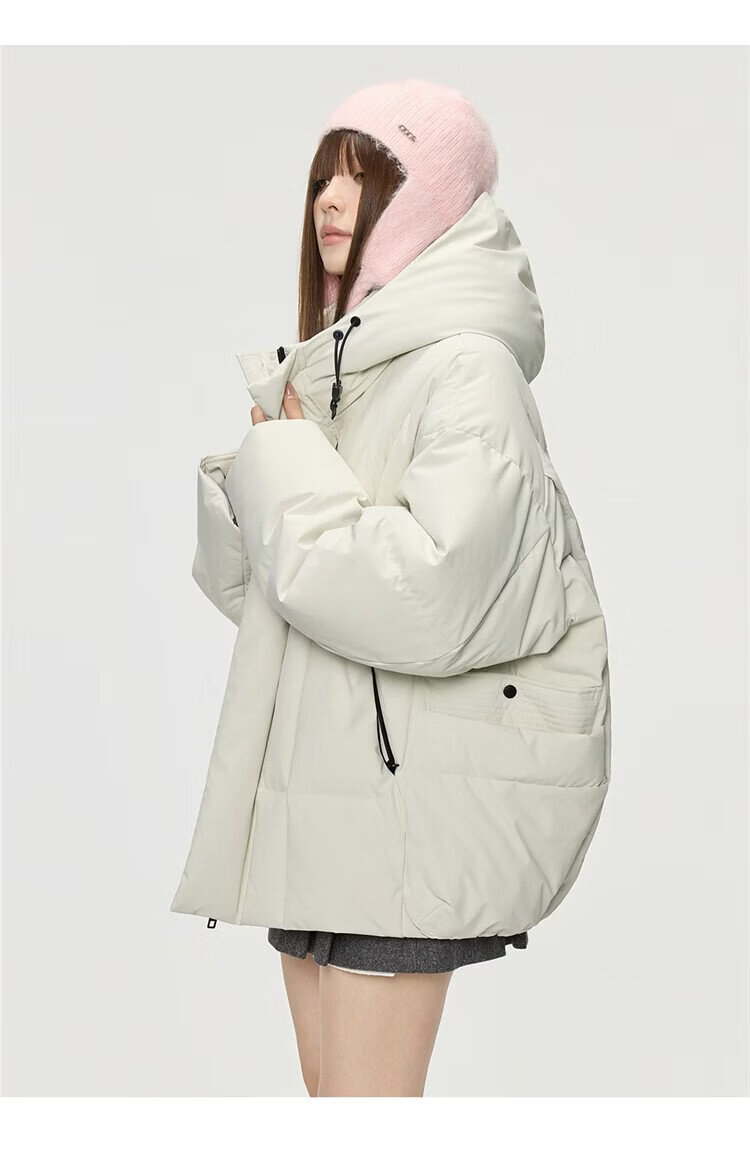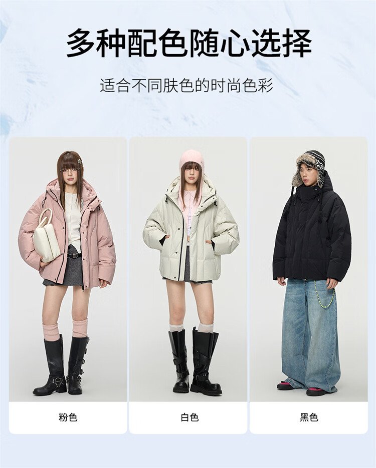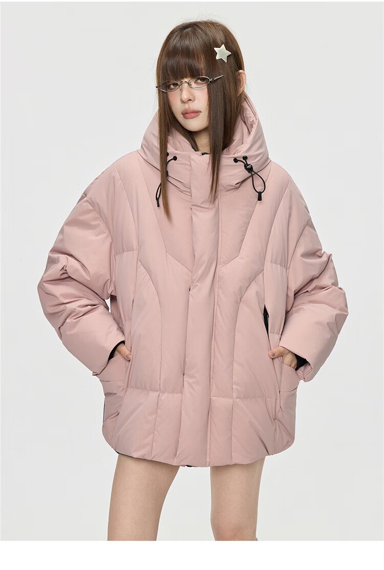 GROUND ZERO shopping mall same style high filling capacity 90 white duck down couple style hooded down jacket black L