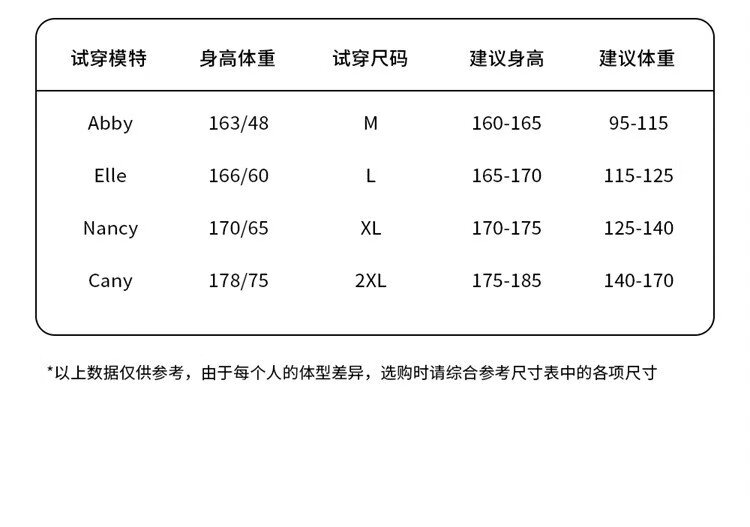 China (cm) 160-165/84-86 165-170 / 88-90 167-172 / 92-96 168-173 / 98-102 170-176 / 106-110