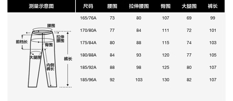 Outseam (cm) 99 cm 101.5 cm 104 cm 106.5 cm 109 cm