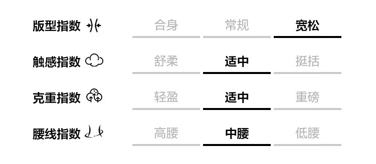 China (cm) 165 / 88-90 170 / 96-98 175 / 108-110 180 / 118-122 185 / 126-130