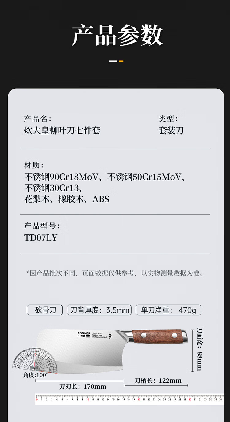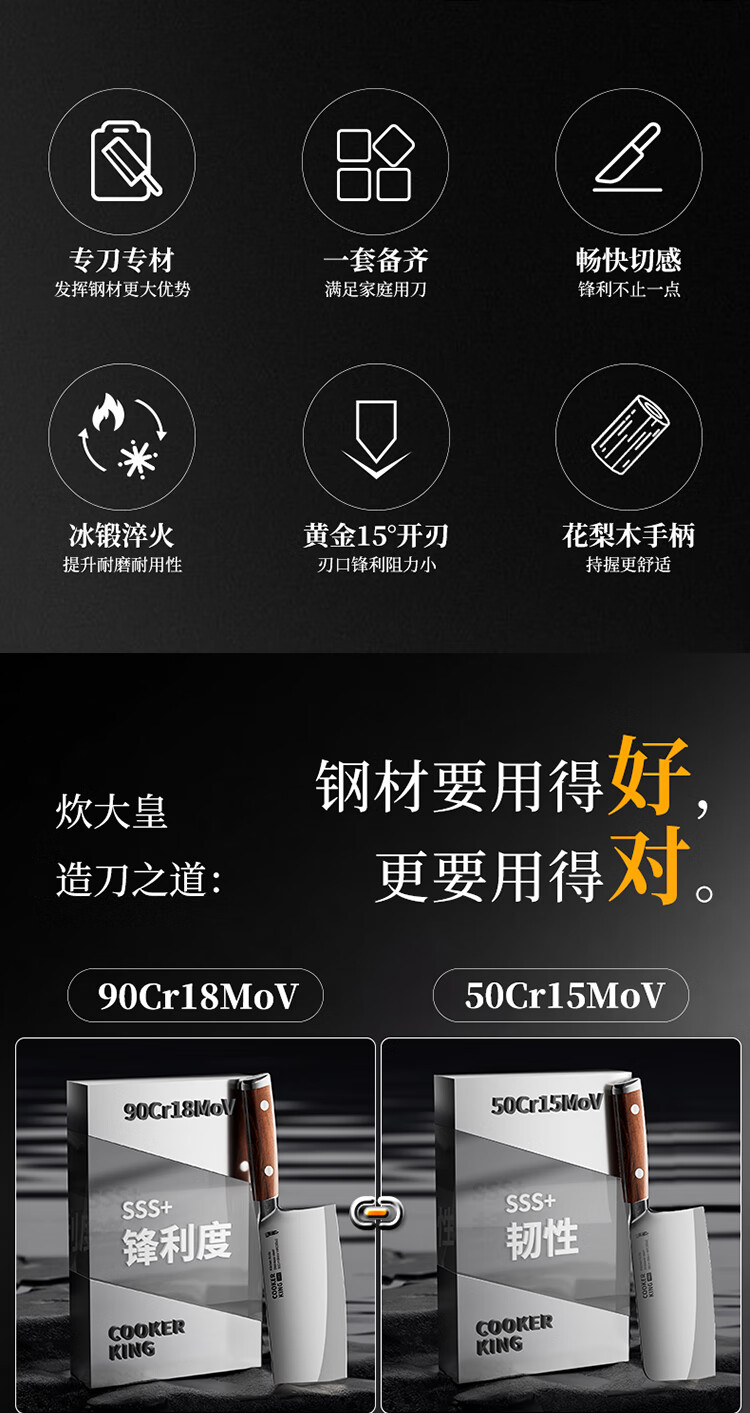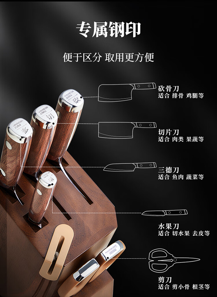 Cui Dahuang Knife Set Slicing Knife Kitchen Combination High-End 9 Chrome Kitchen Knife Bone Chopping Knife Kitchen Household Knife Six-piece Set