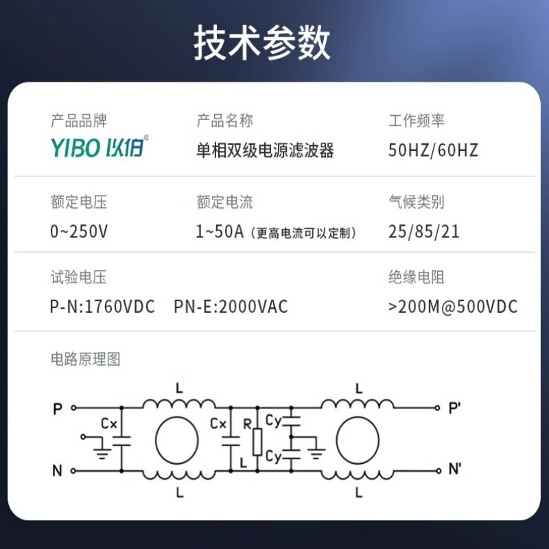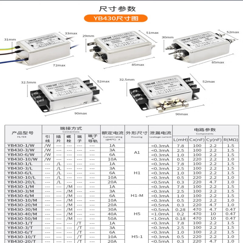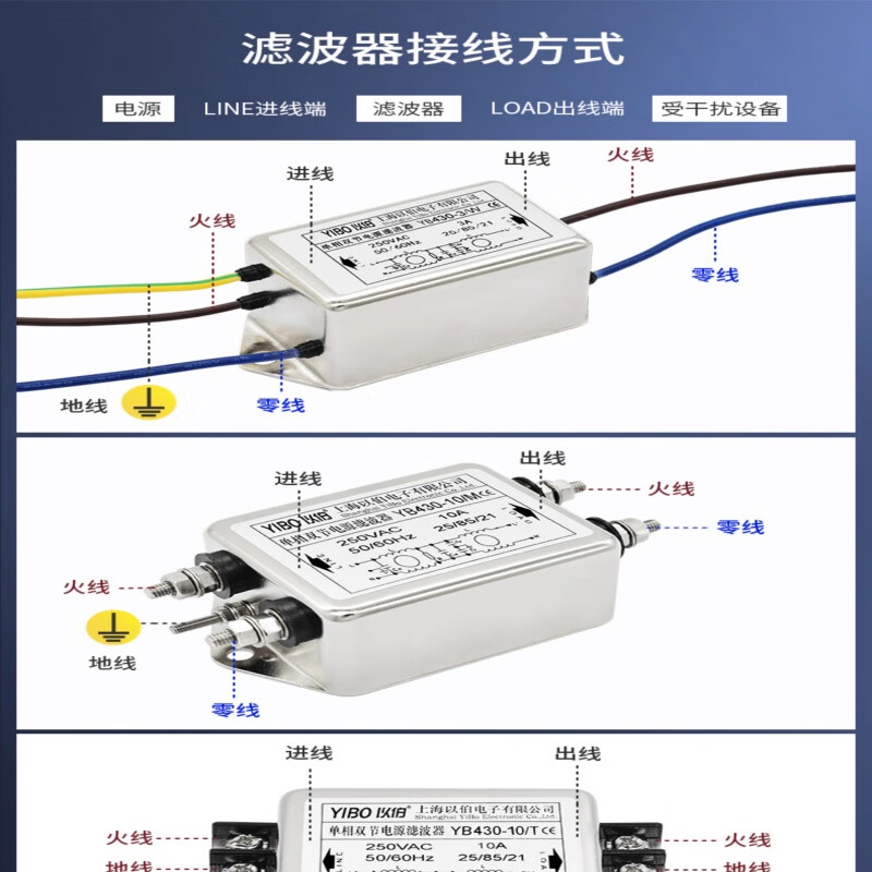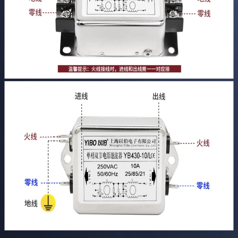 Yibo emi power filter 220V anti-interference single-phase double-section enhanced current purifier secondary filter YB430-30A/TG (rail type)/2 pieces