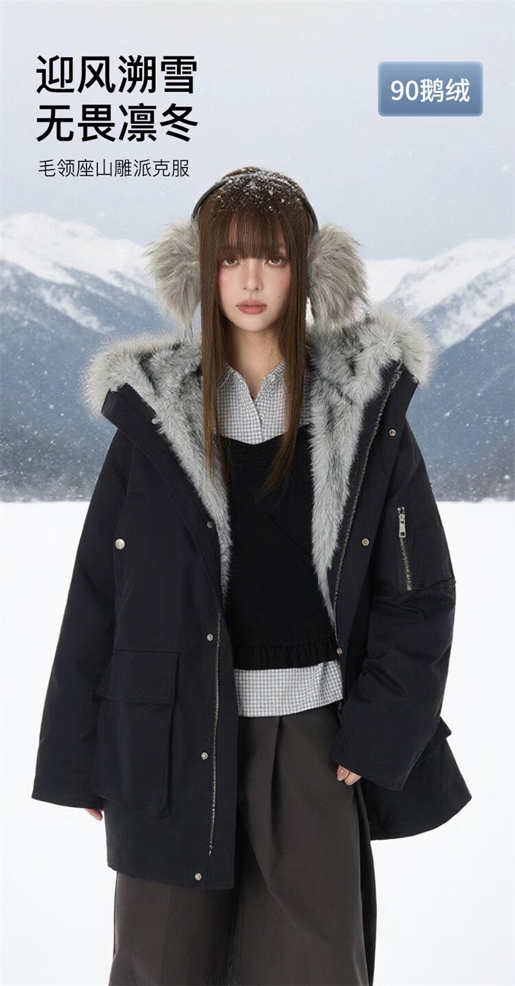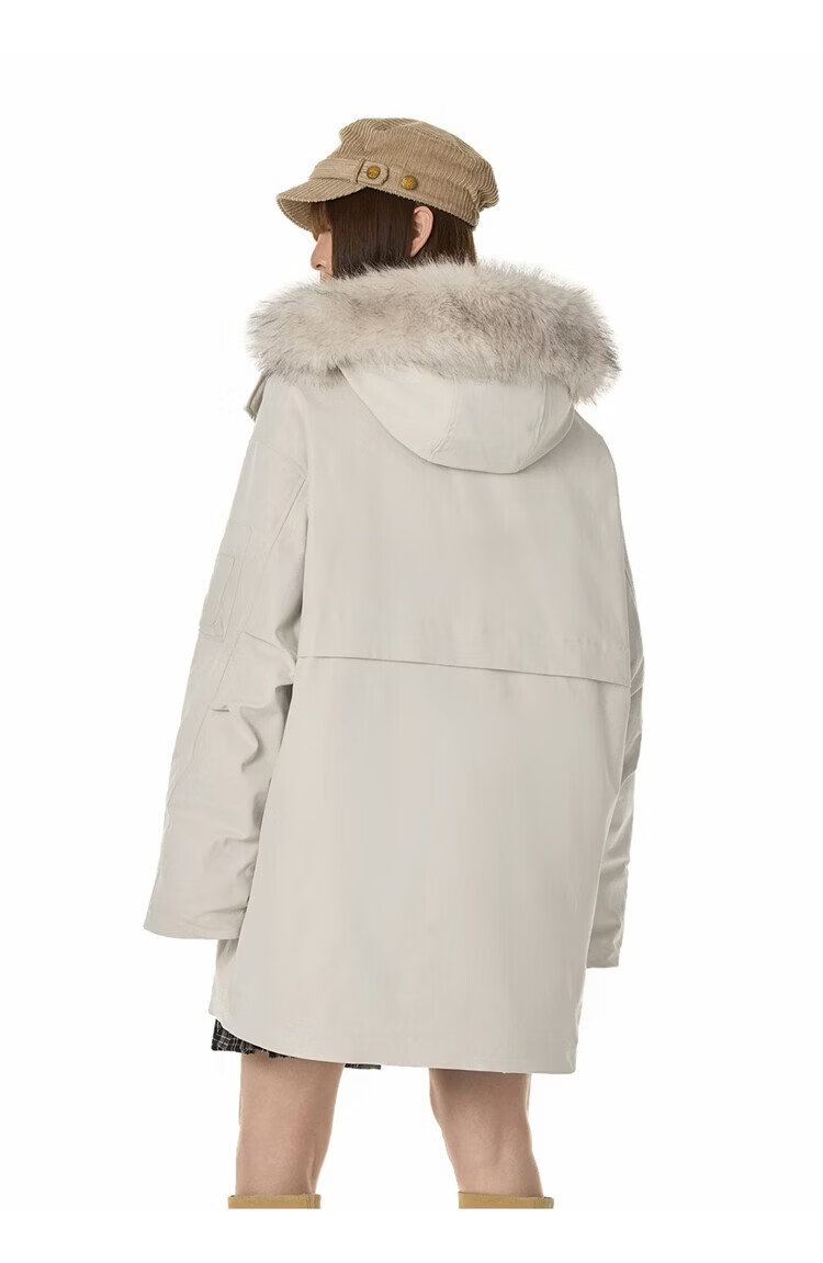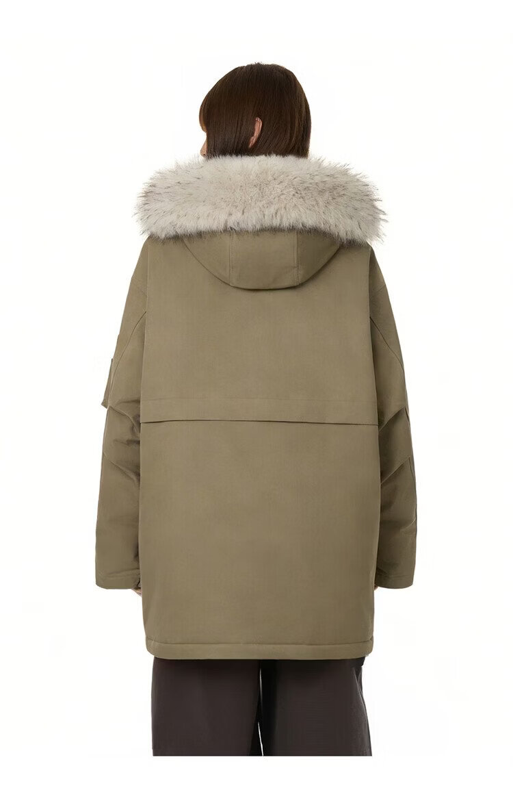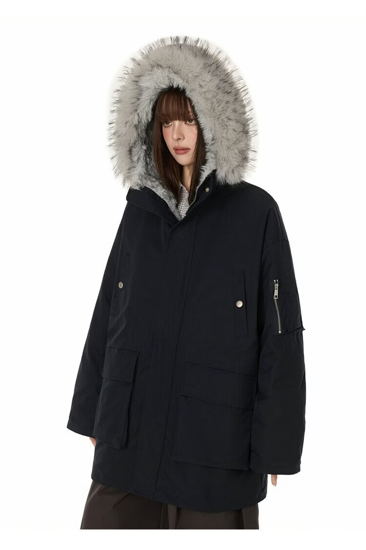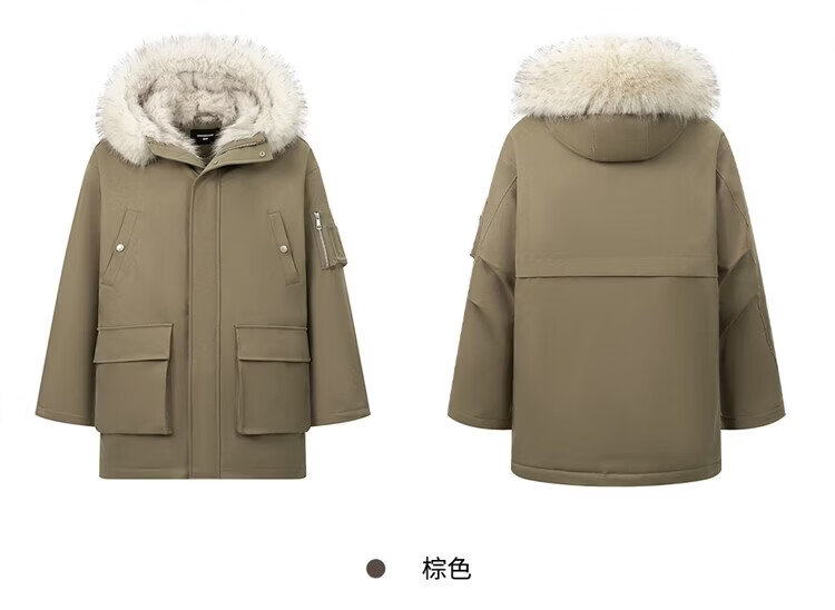 GROUND ZERO work style fur collar hooded design 90 white goose down couple style down jacket brown M