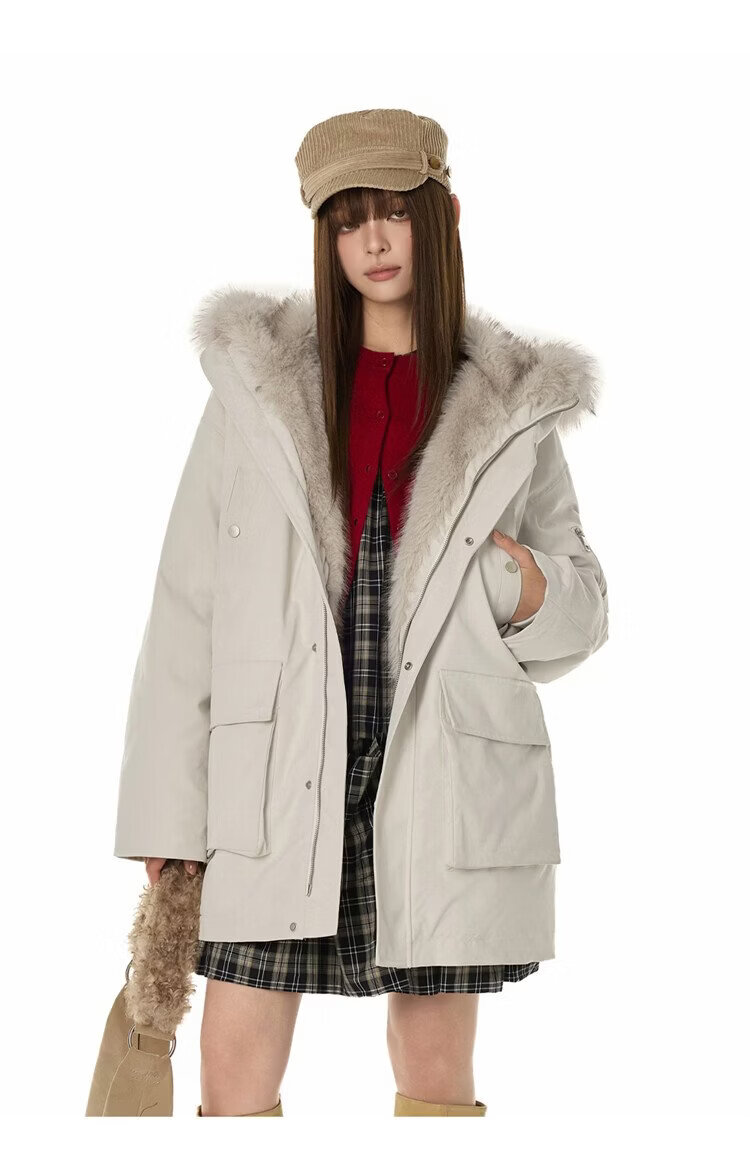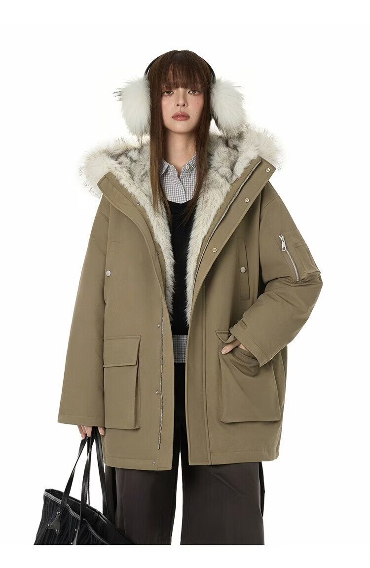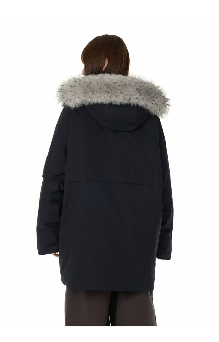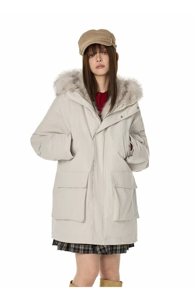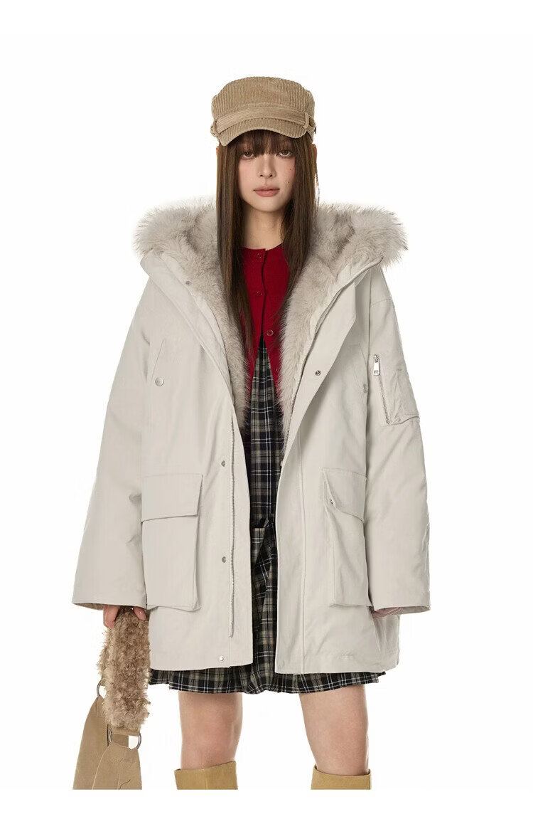 GROUND ZERO work style fur collar hooded design 90 white goose down couple style down jacket brown M