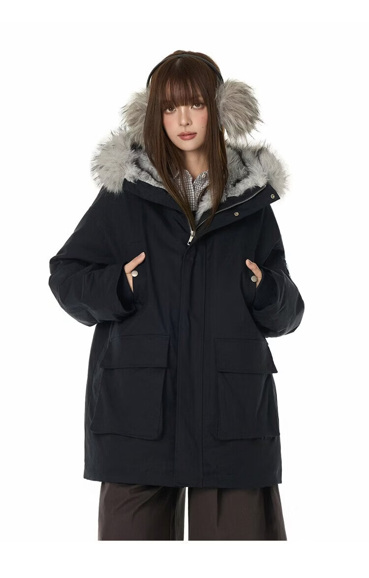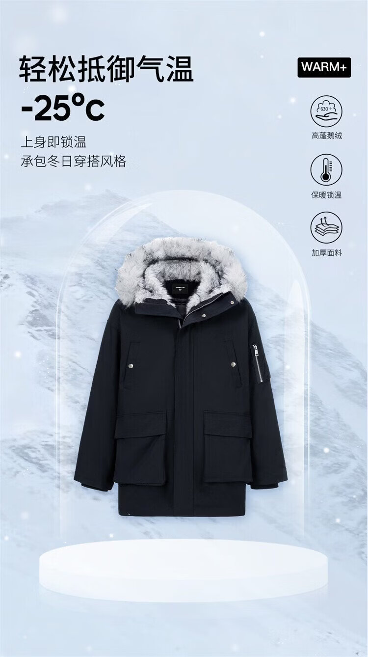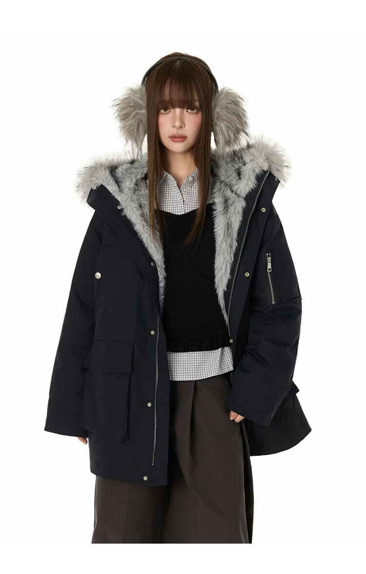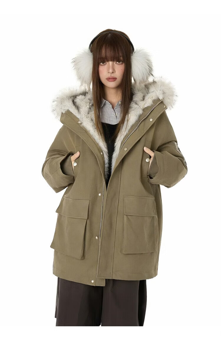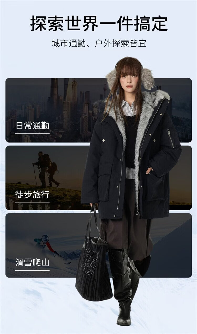 GROUND ZERO work style fur collar hooded design 90 white goose down couple style down jacket brown M