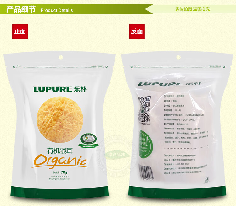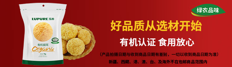 LUPURE Organic Tremella, White Fungus, Ugly Fungus, Snow Fungus, Nuo fungus, 70g bag