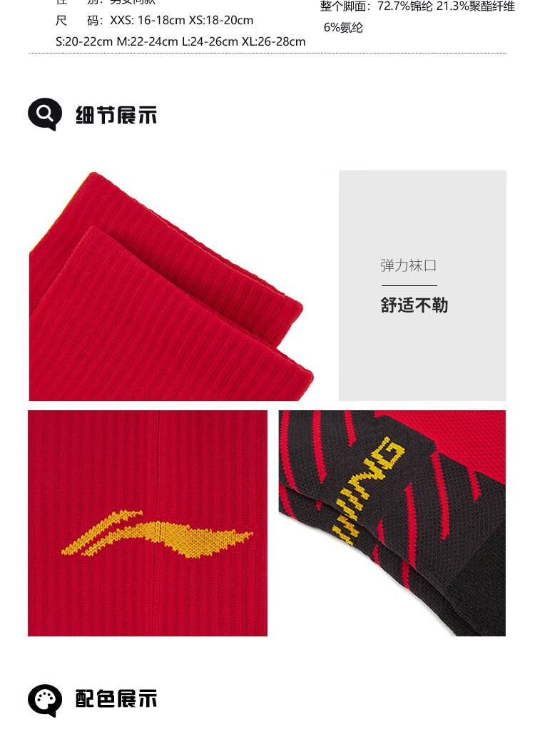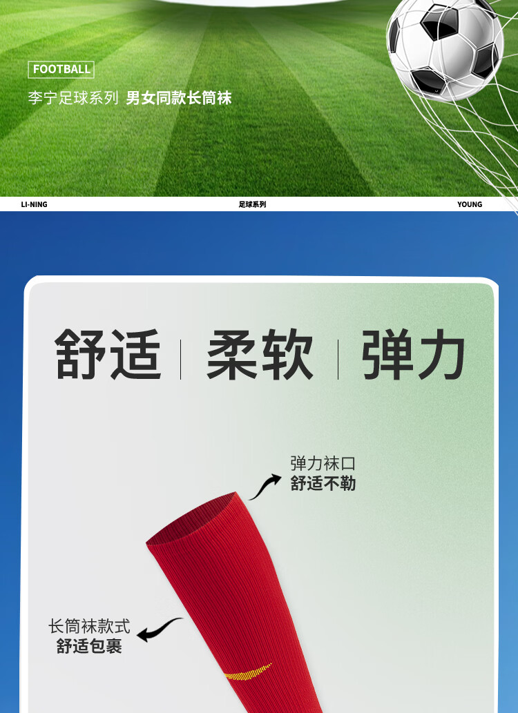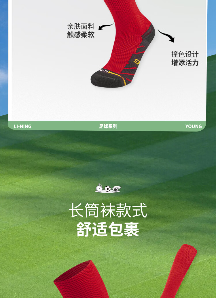 Li Ning (LI-NING) children's clothing children's socks men's and women's small and big children's professional football series antibacterial long sports socks MYWLW019-7